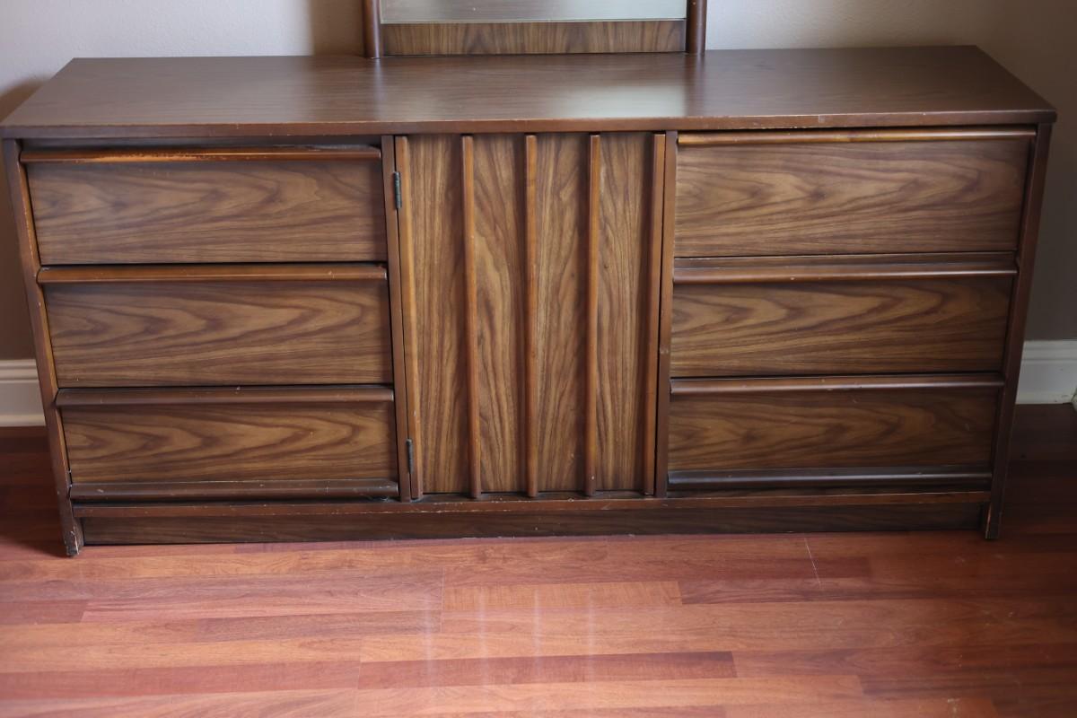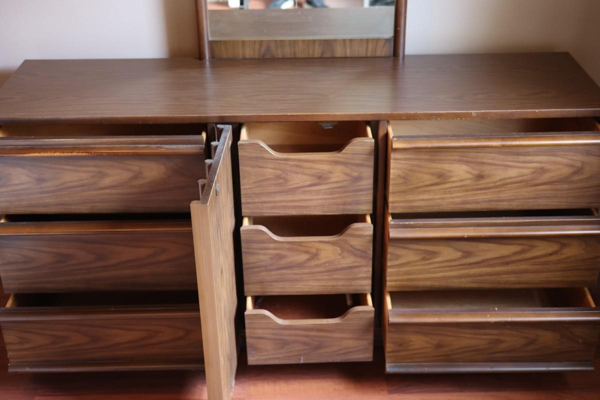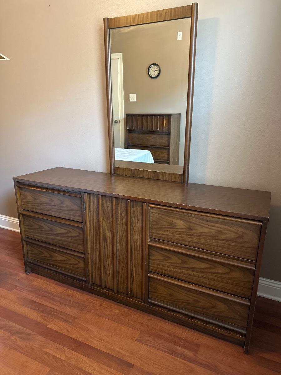 Nine (9) Drawer Long Dresser W/ Mirror By Bassett Furniture