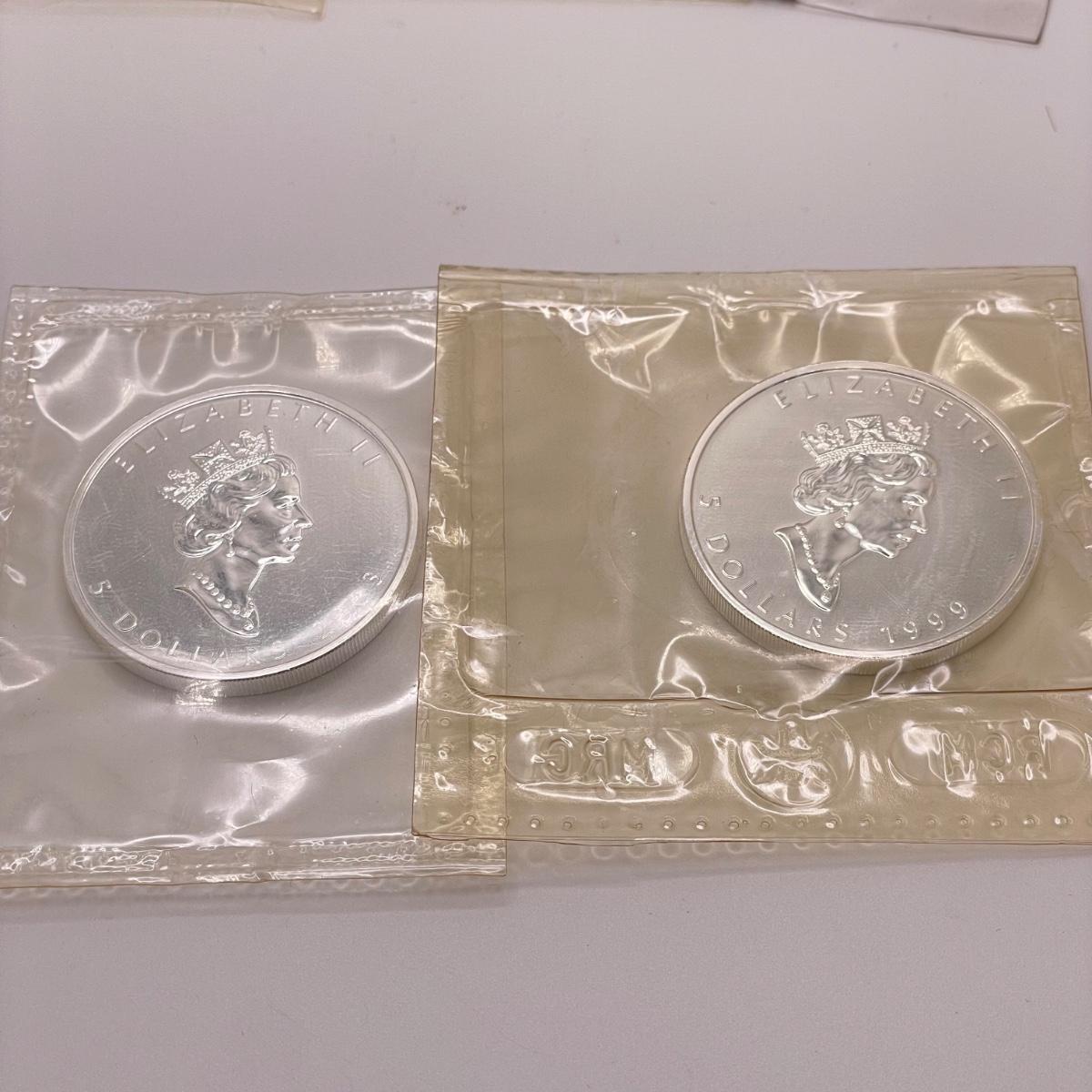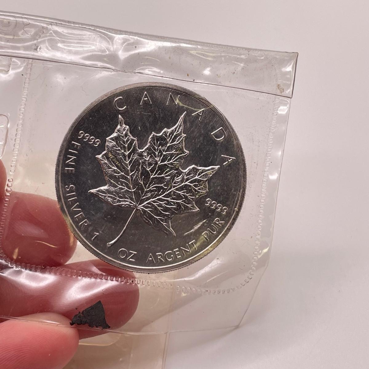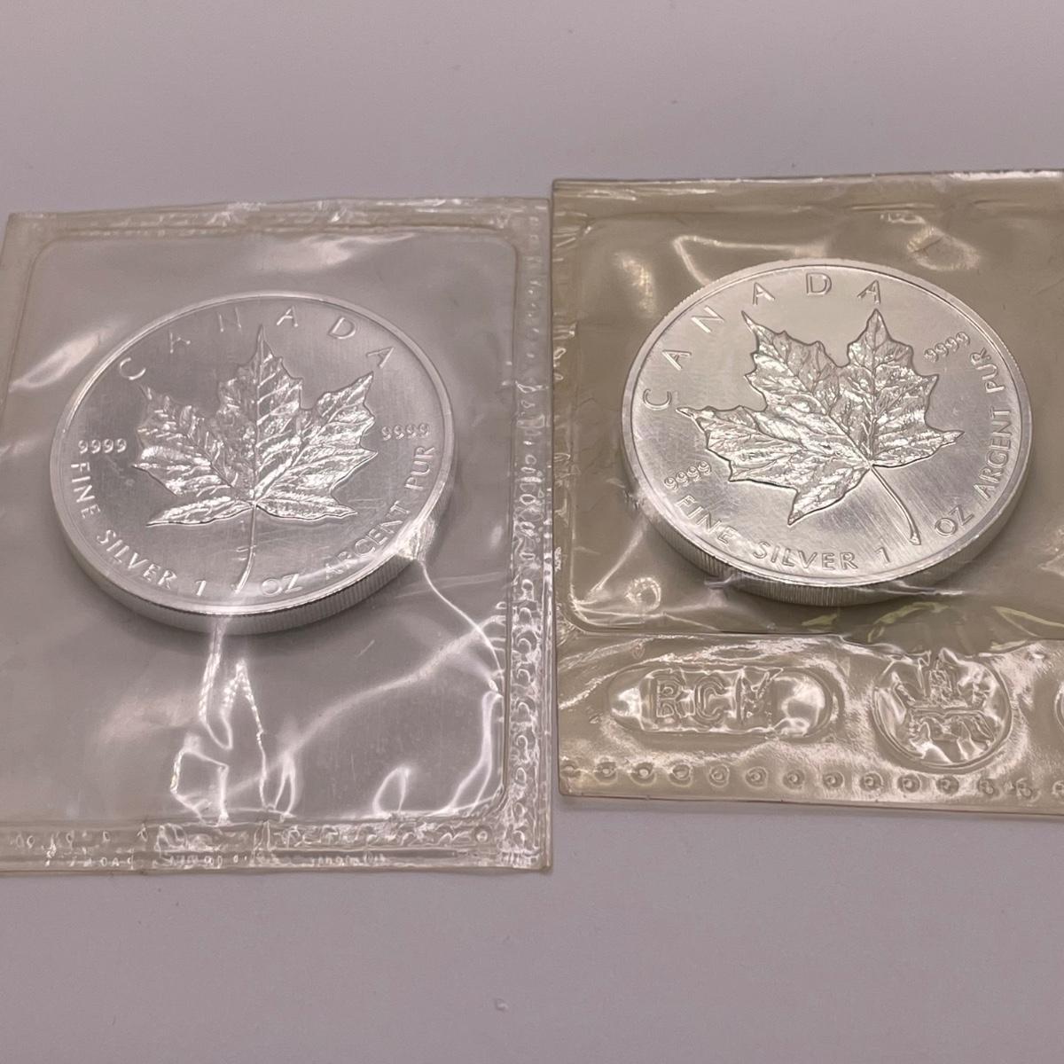 Nine $5 one ounce .999 silver coins, four with colored maple leaves. None show evidence of being circulated, but we have not verified that. Starting bid is at or near melt value. All sales are final. No returns or refunds. Please bid accordingly. Shipping available.