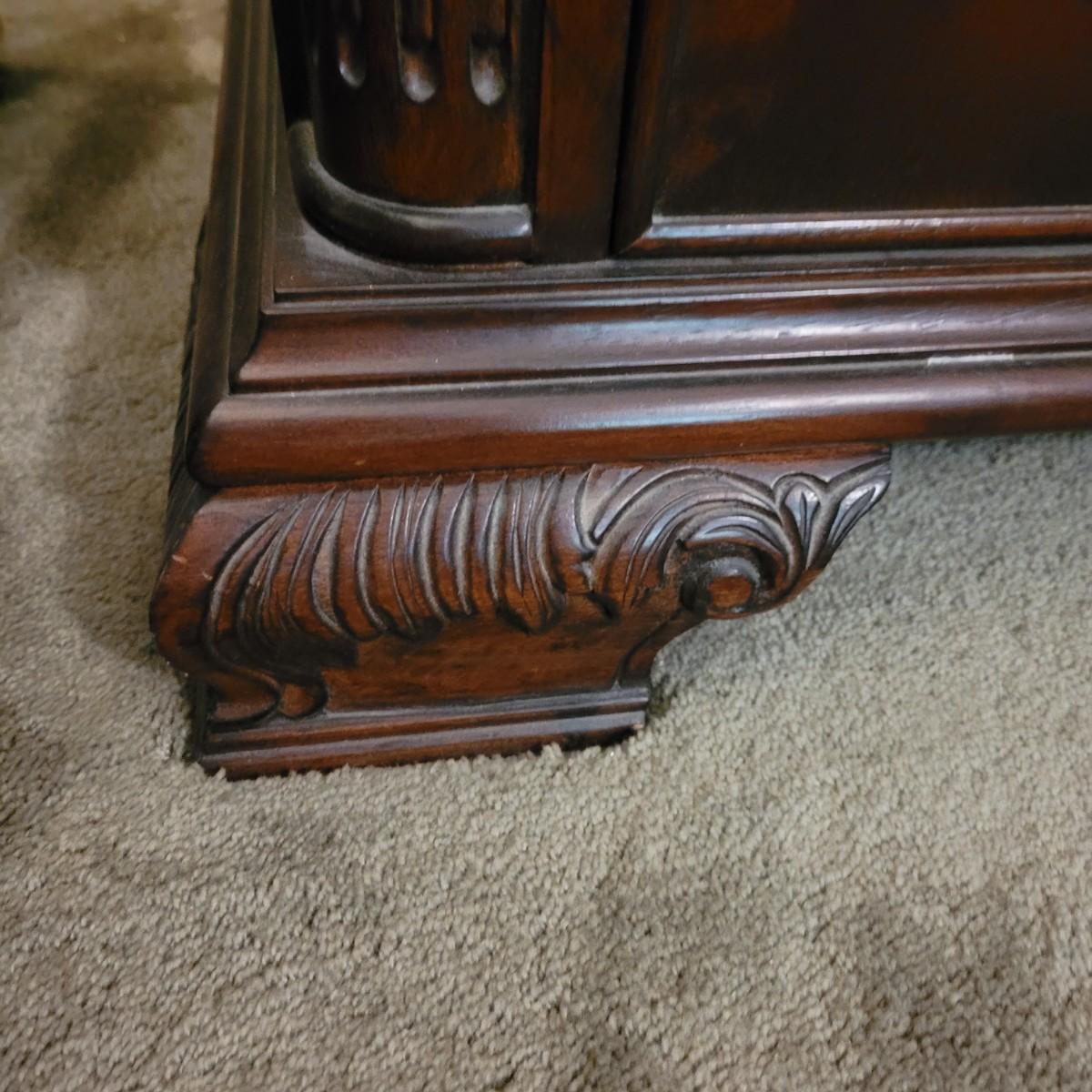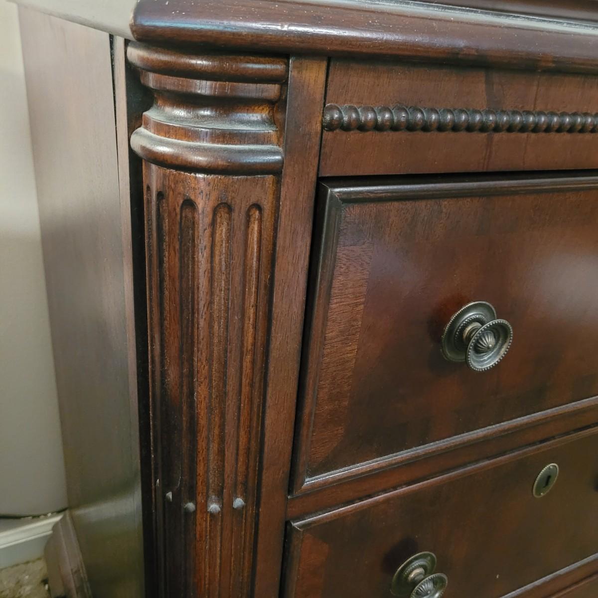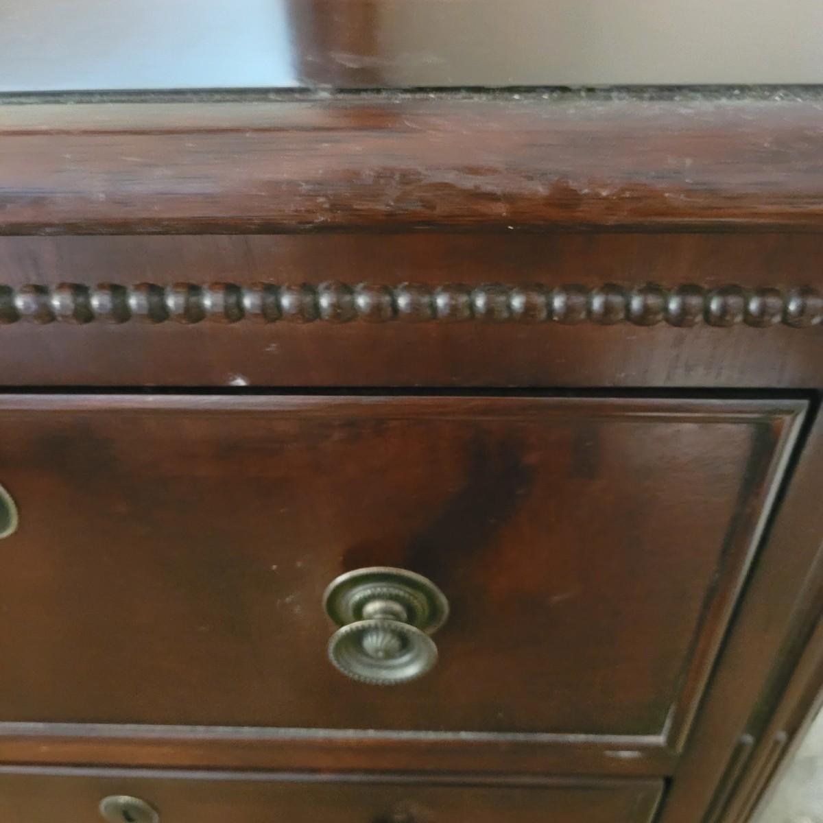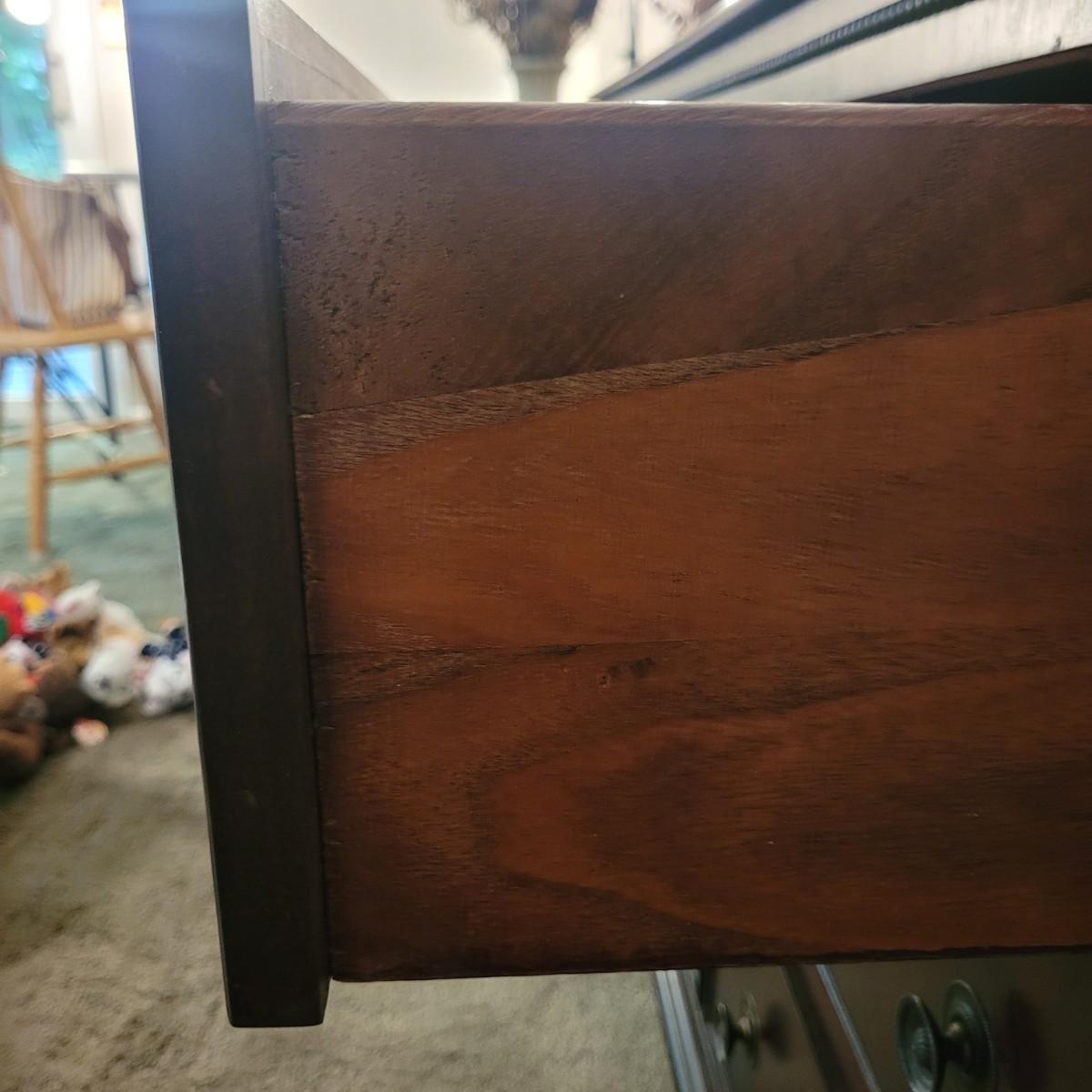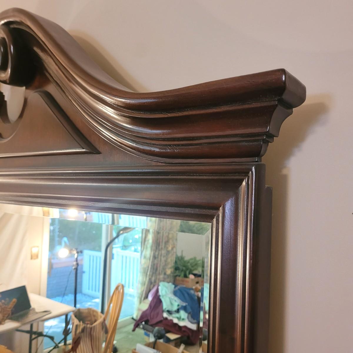 This wooden nine drawer dresser with attached mirror has a simple, classic design. Dresser measures approximately 68” x 21” x 33”H, mirror 48.5” x 49”H. Local pickup only. Winning bidder must bring appropriate tools to disassemble, and assistance to help move and load this item due to its weight and size.
