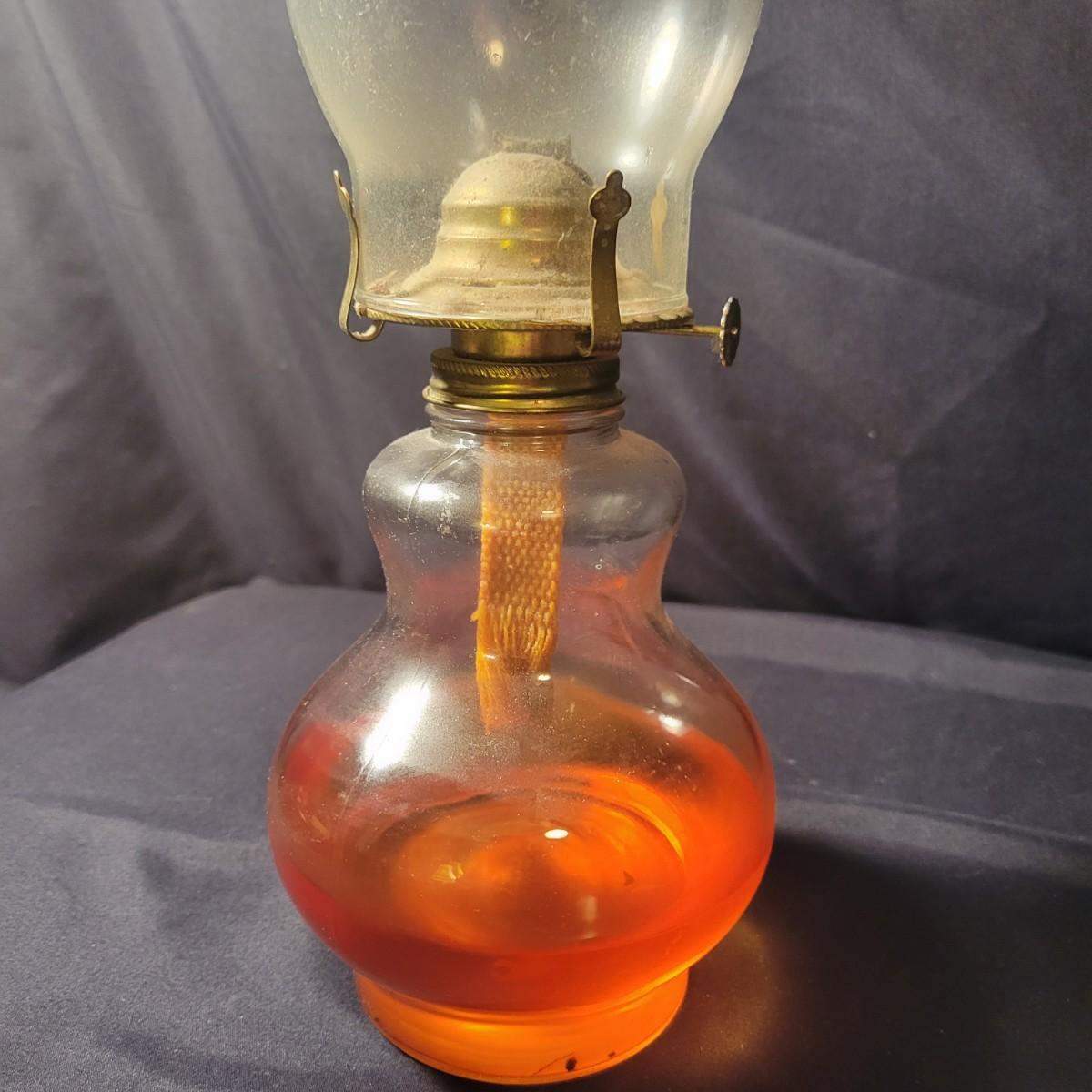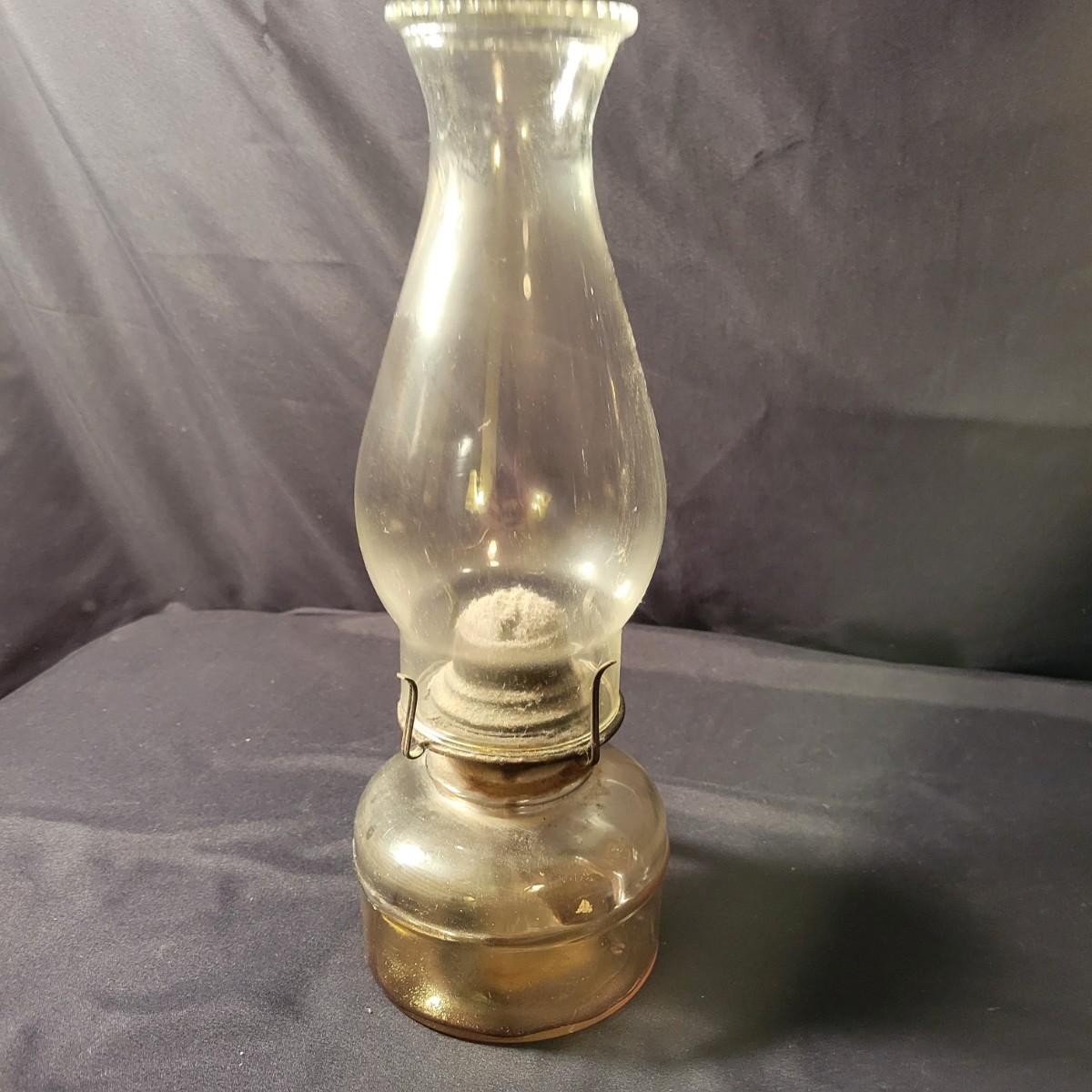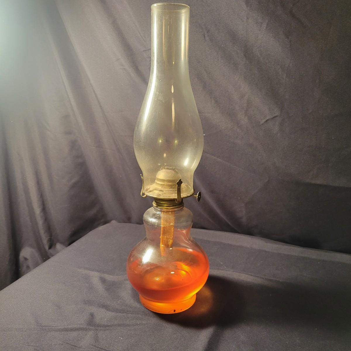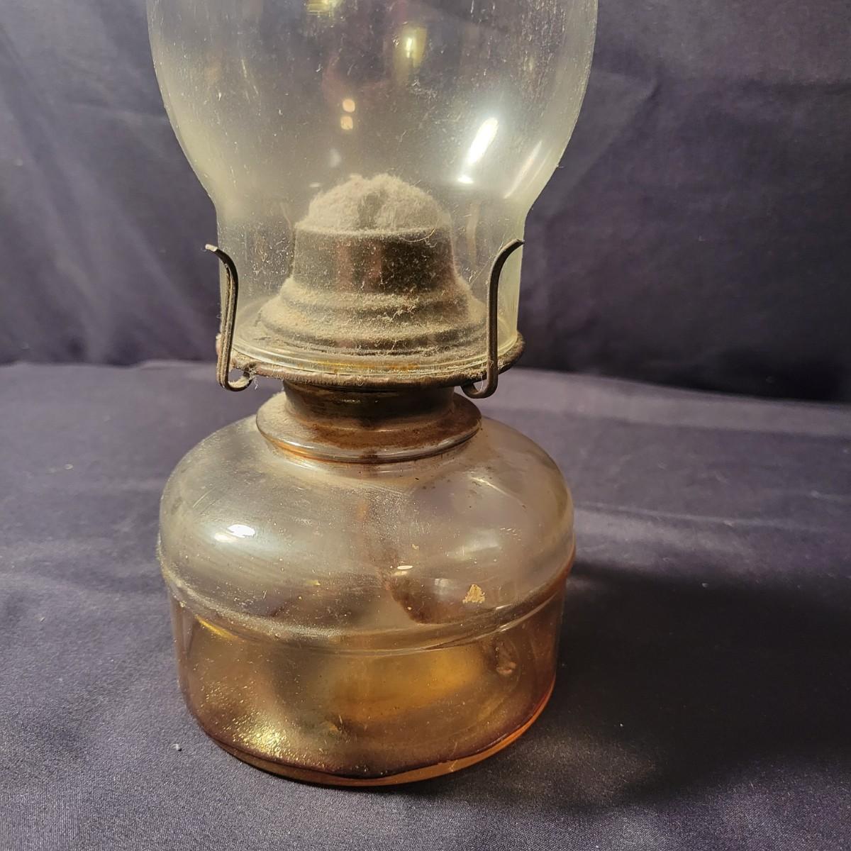 A collection of 9 oil hurricane lamps in good condition with no notable damage. Two lamps are missing their globes. Some lamps have oil in them still. Lot also includes an additional wick. Largest lamp measures approximately 6" x 18.5" Local pickup only