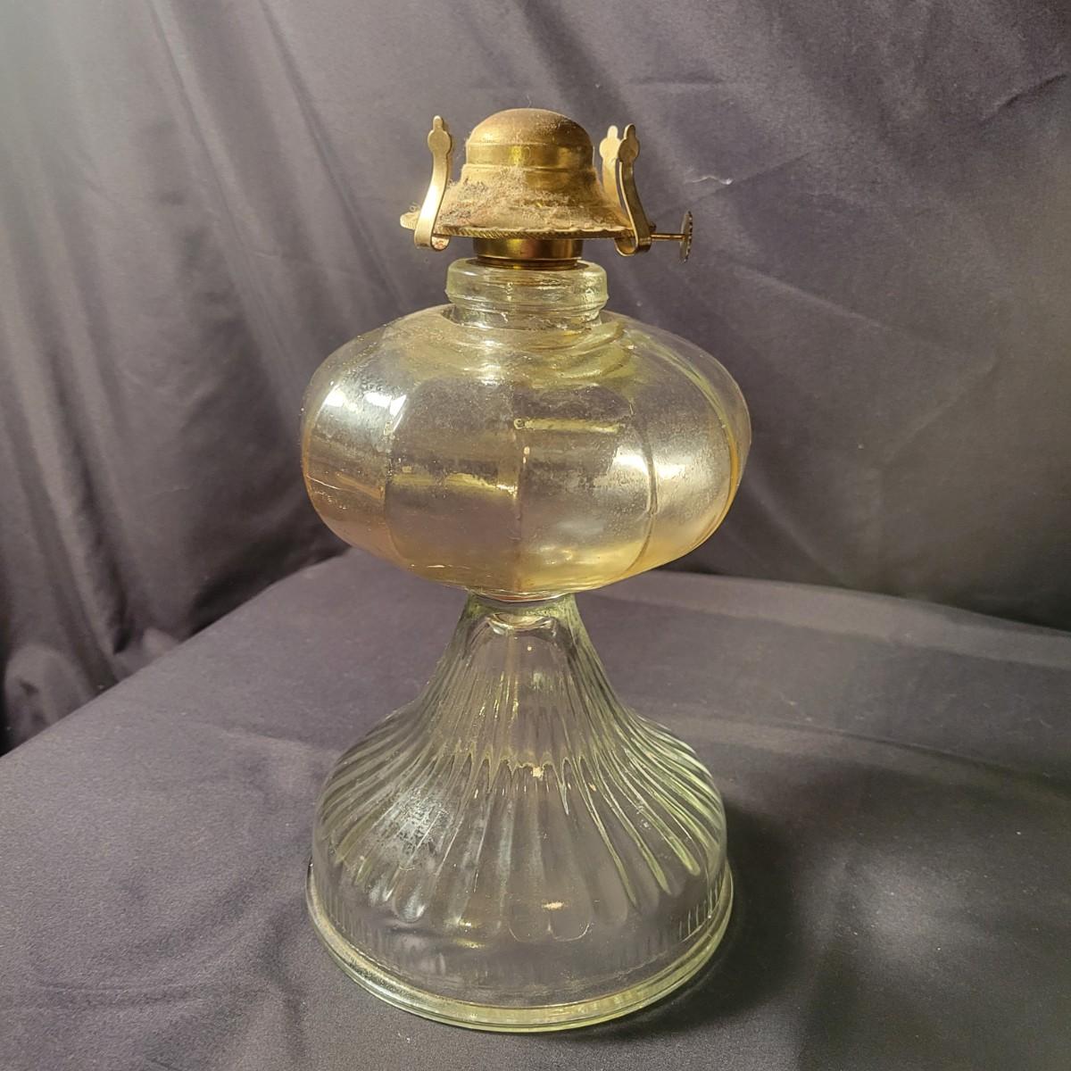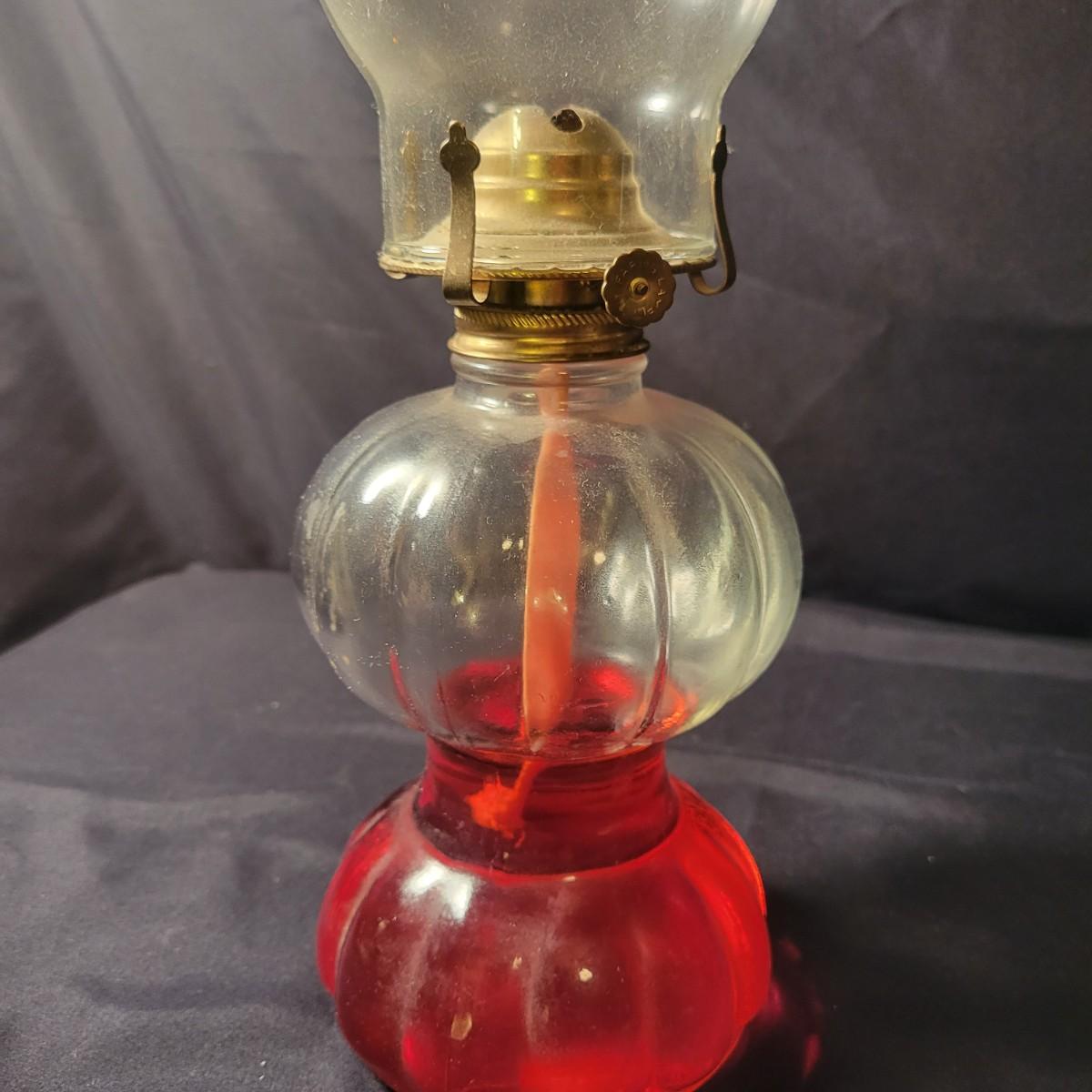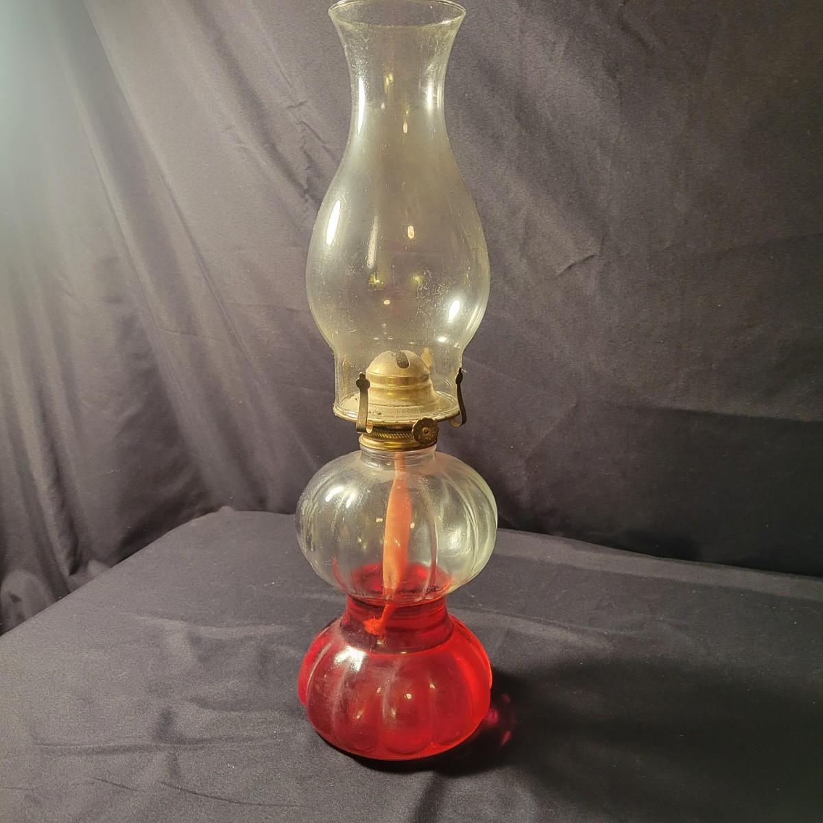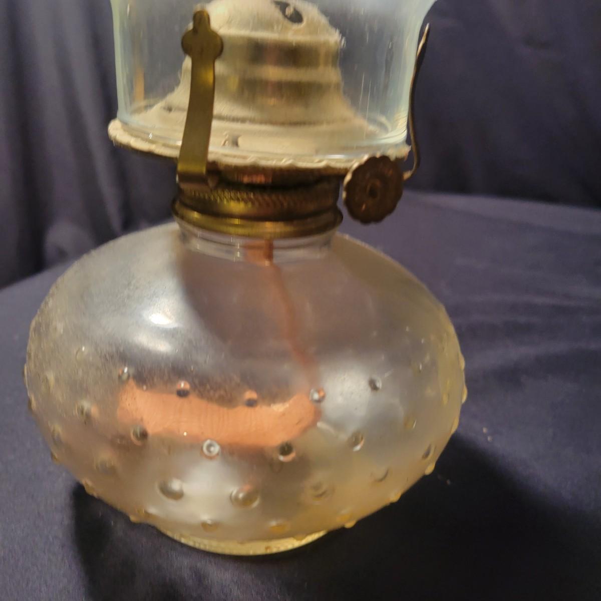 A collection of 9 oil hurricane lamps in good condition with no notable damage. Two lamps are missing their globes. Some lamps have oil in them still. Lot also includes an additional wick. Largest lamp measures approximately 6" x 18.5" Local pickup only
