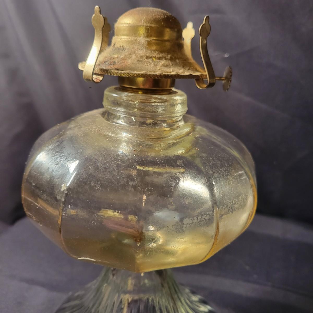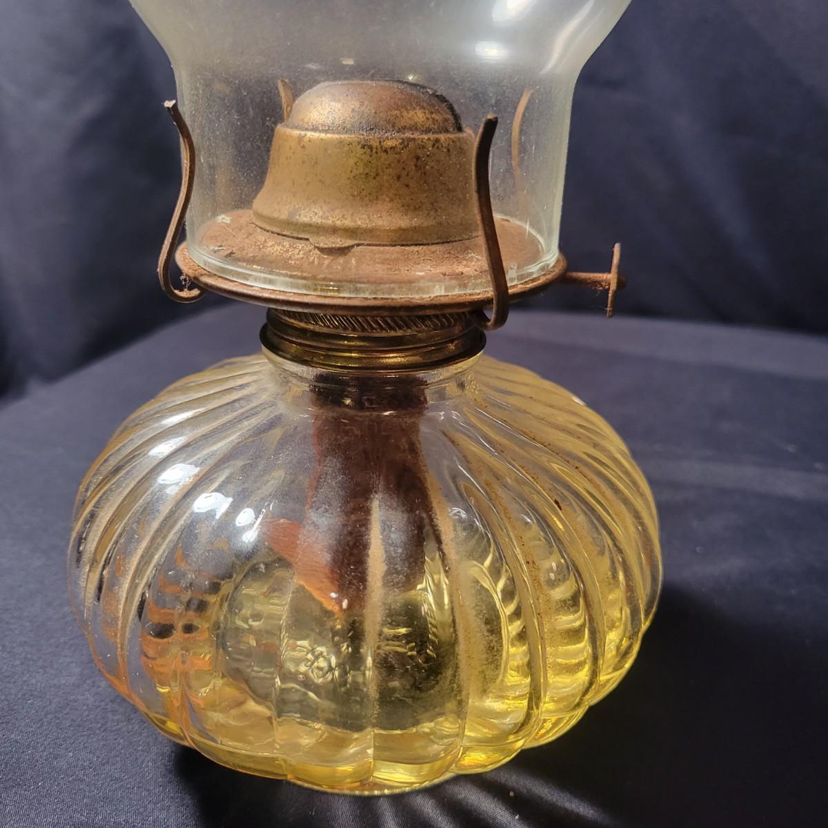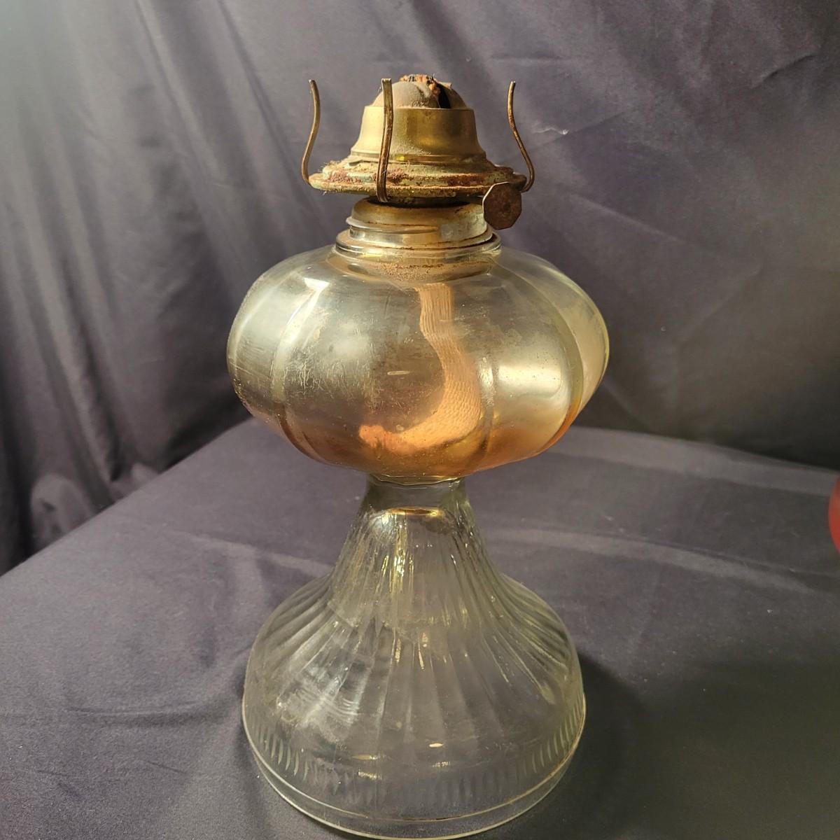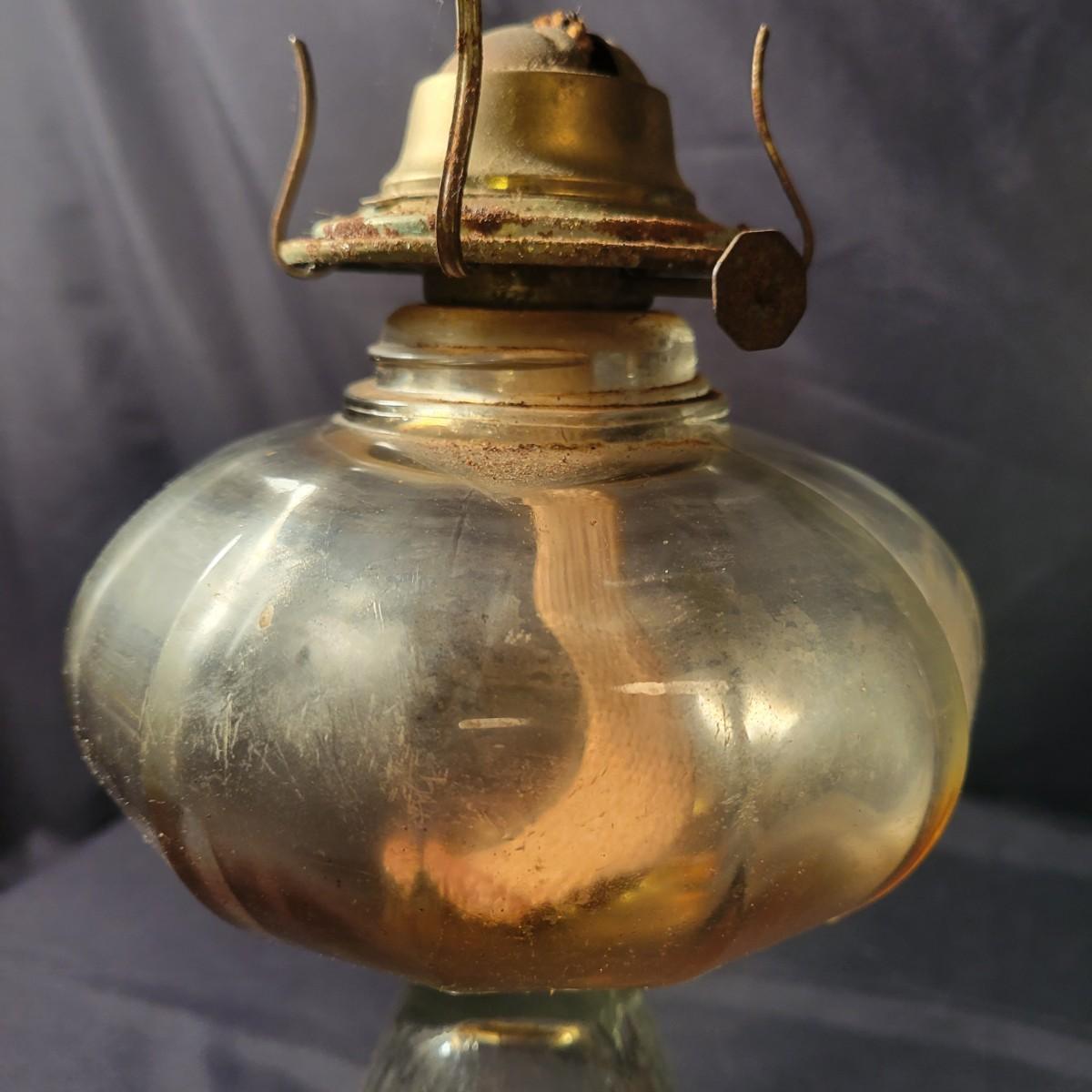 A collection of 9 oil hurricane lamps in good condition with no notable damage. Two lamps are missing their globes. Some lamps have oil in them still. Lot also includes an additional wick. Largest lamp measures approximately 6" x 18.5" Local pickup only
