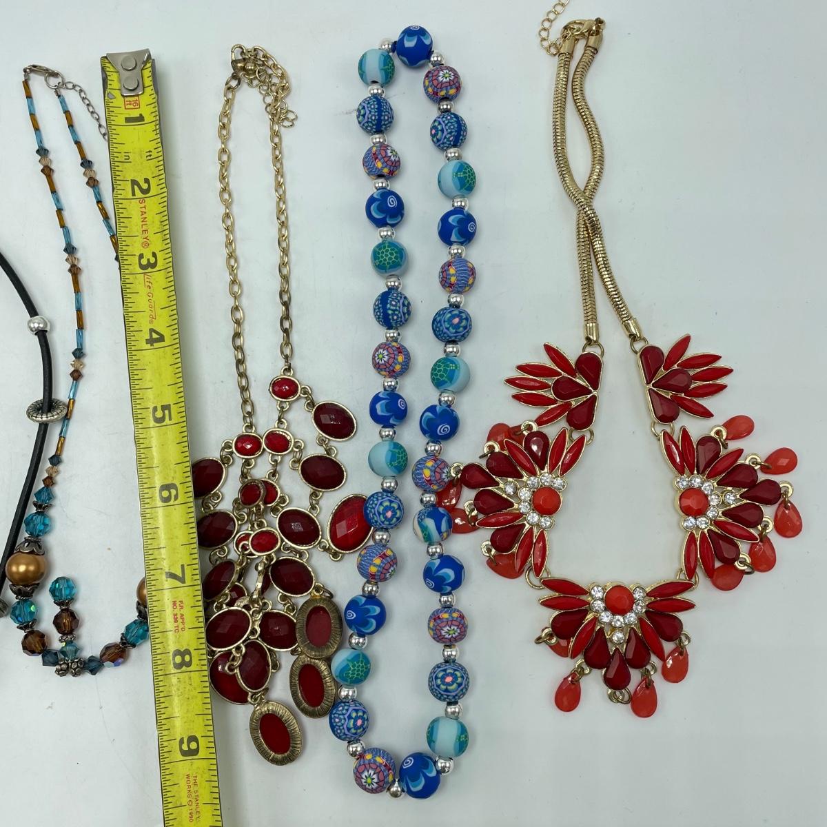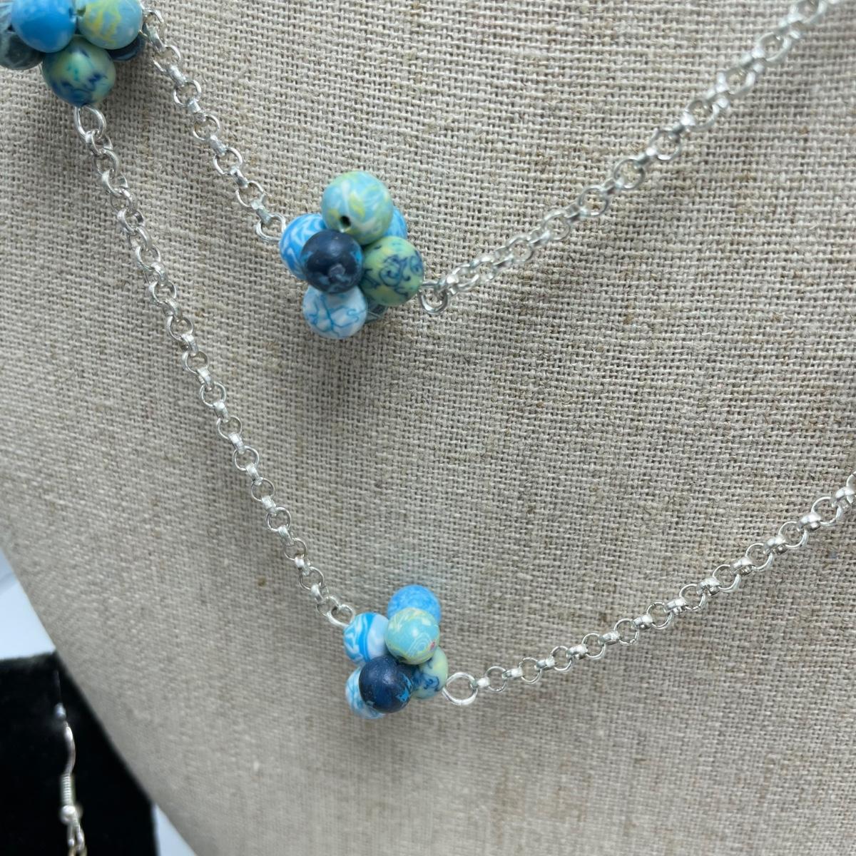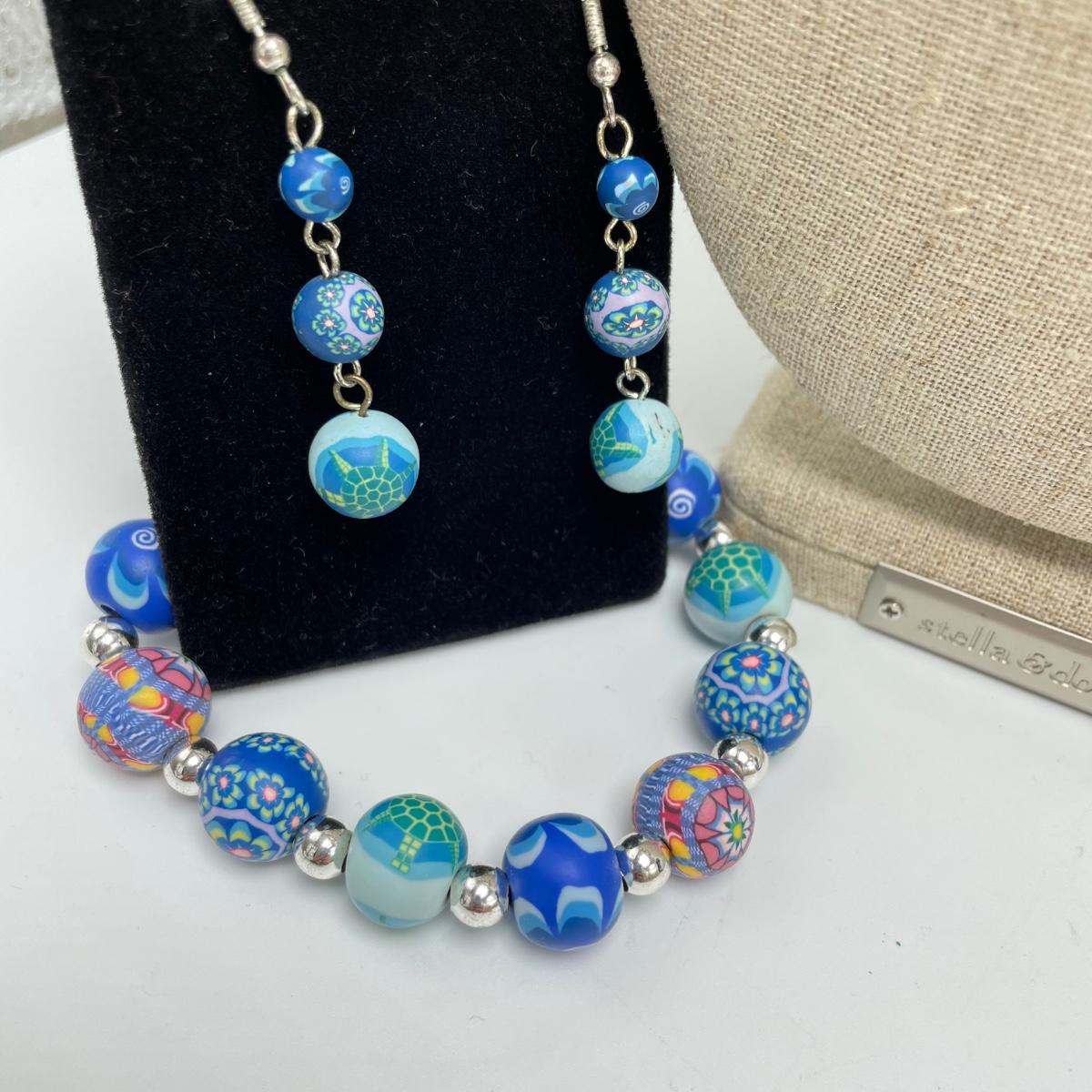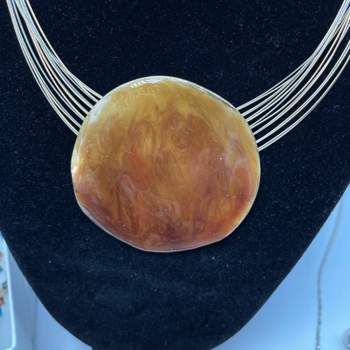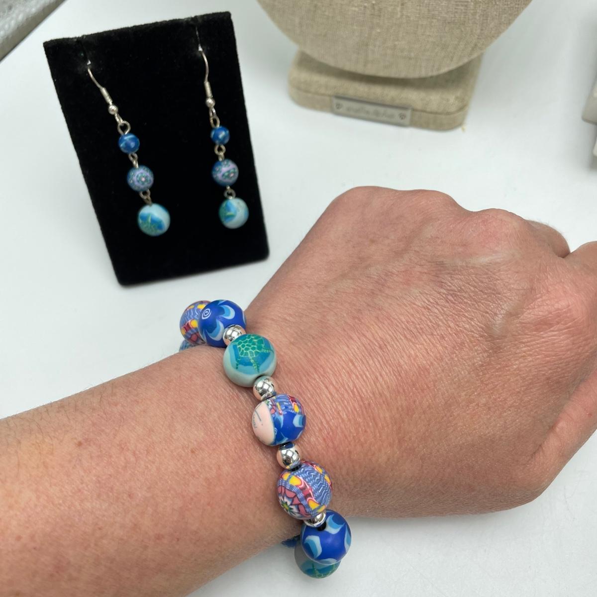 Nine sets of jewelry including earrings, bracelets and necklaces. Lot also includes multiple charms with leather necklaces and a silver bracelet. The brown leather has a permanent Pandora charm and a few charms are marked 925. There is an Amber colored stone set in a Kay’s box, the jewelry is marked 925 -and would probably really shine once polished. The earring-necklace set with clear colored beads and marked 925 has one earring in which the French wire needs to be replaced. See images. Shipping available.