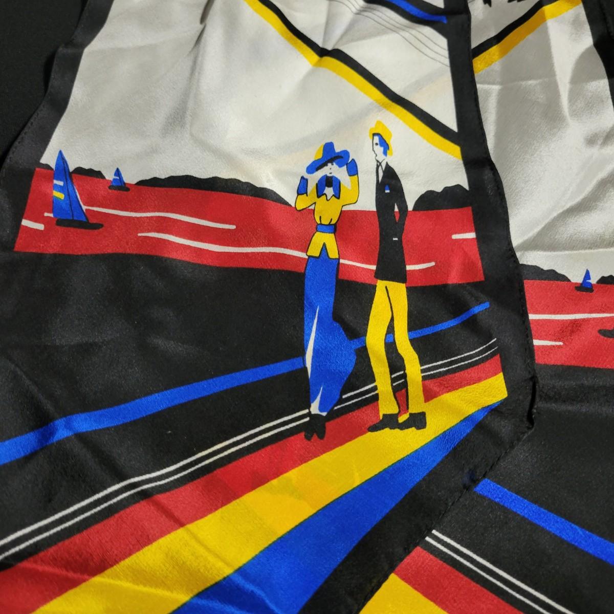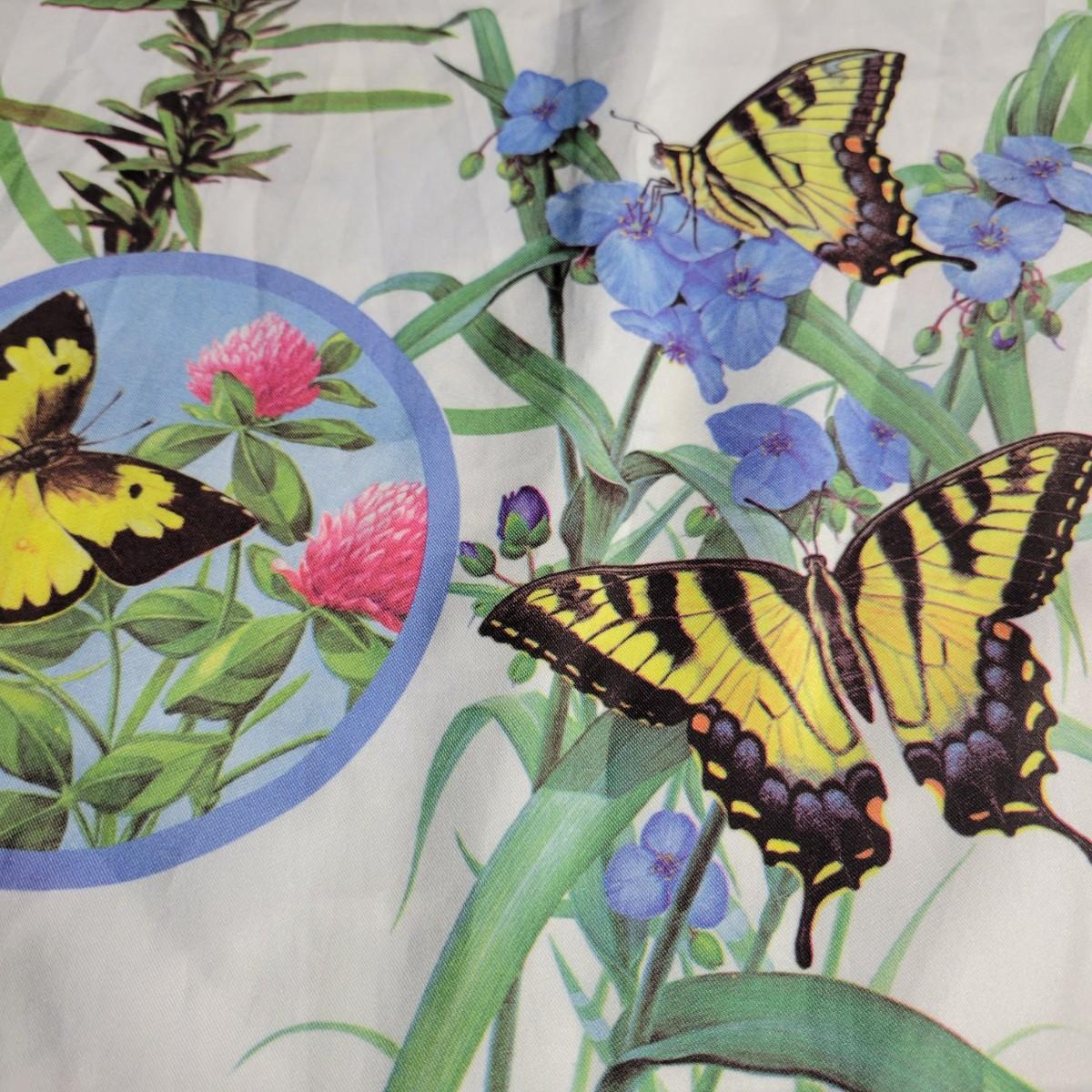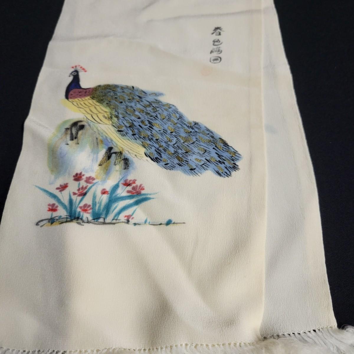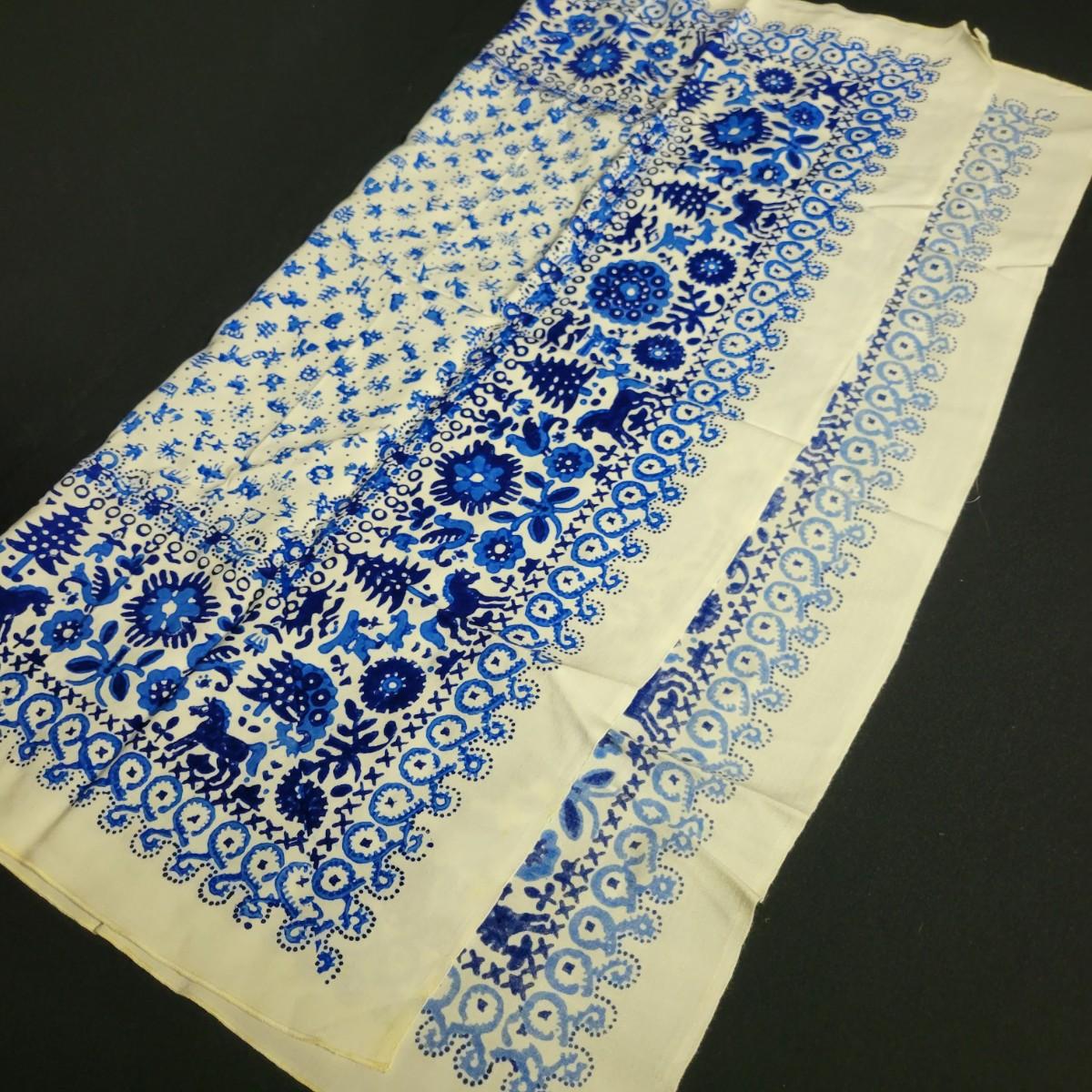 An assortment of 9 scarves in a variety of styles and materials. A majority are polyester, but there is also one that is linen and one that is Asian silk. Average size is 14" x 60" Shipping available