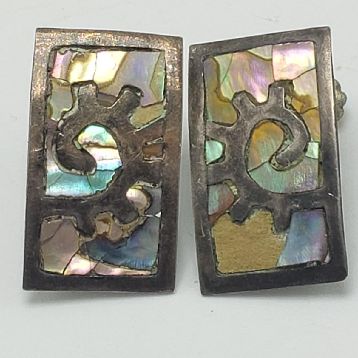 This gorgeous lot of nine pairs of earrings will dress up any outfit! The pearl iridescent earrings are stamped "14K". The bird earrings are stamped "925 Mexico". The rectangular mother of pearl inlay earrings have a stamp but it's hard to decipher. See pictures for details. Shipping available. All sales are final. No returns or refunds. Please bid accordingly. Shipping available.