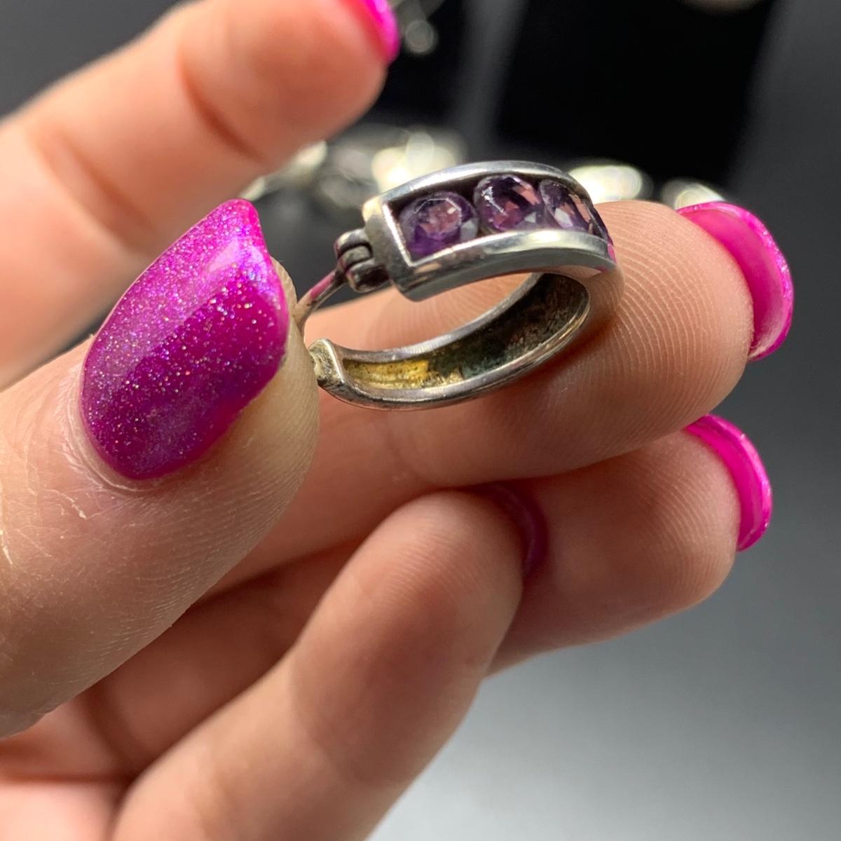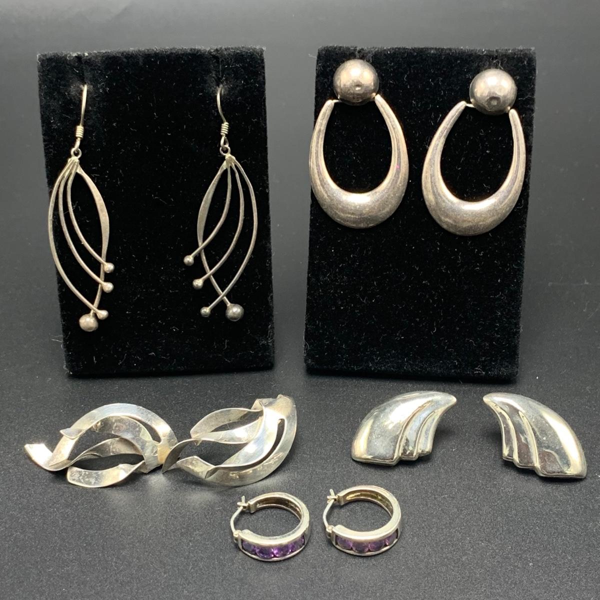 Nine Pairs of Sterling Silver Pierced Earrings and One Sterling Pin (MB-HS)