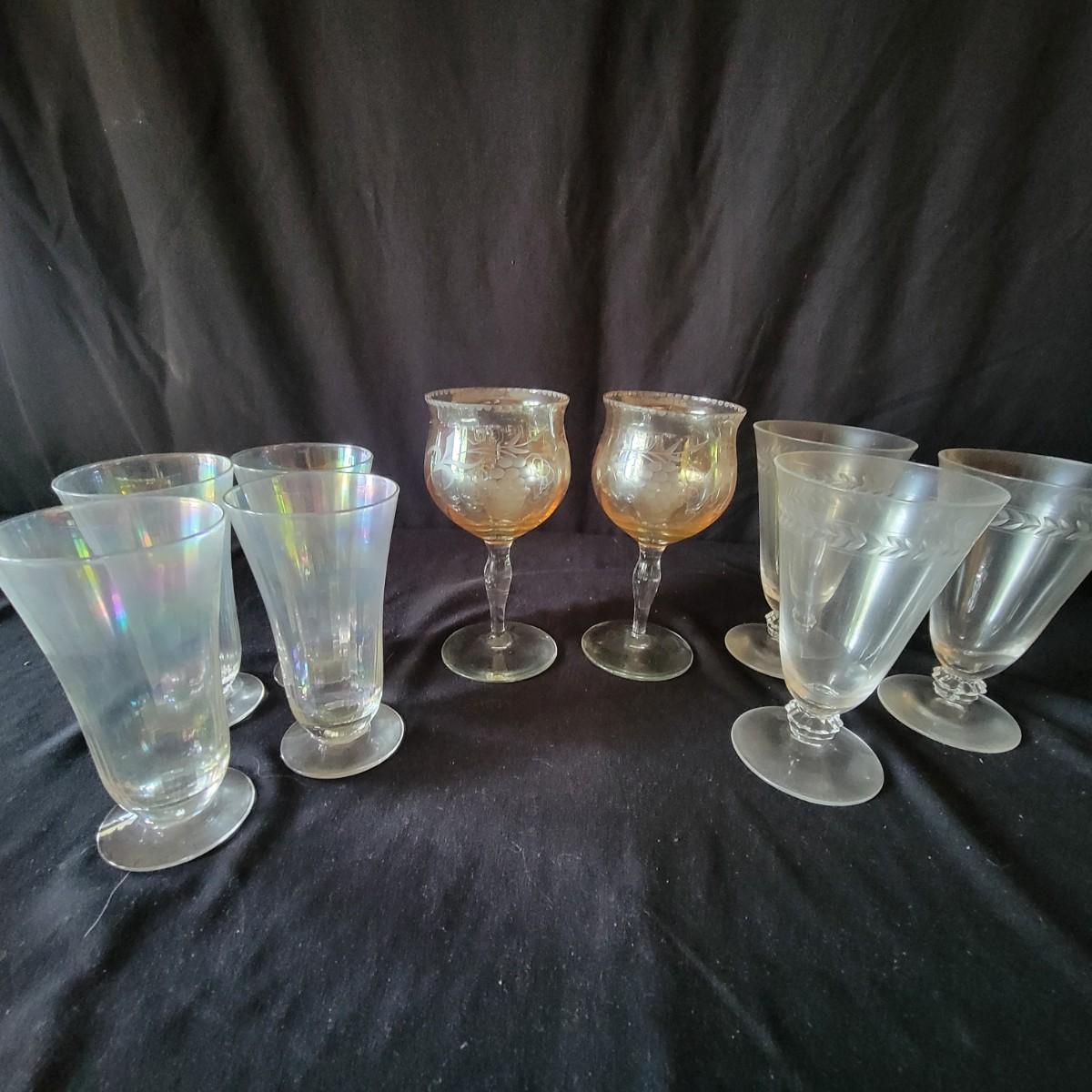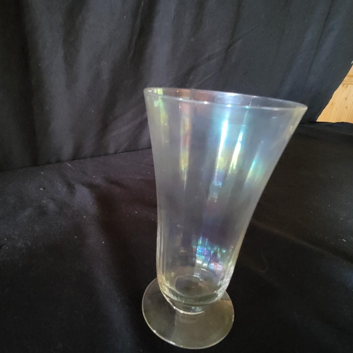 Four glasses with a subtle multi colored hue. Largest glasses are approximately 6.5" x 3.5"
