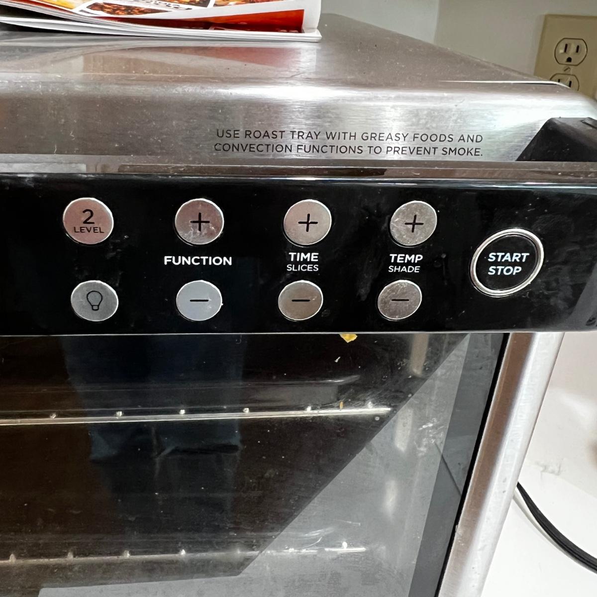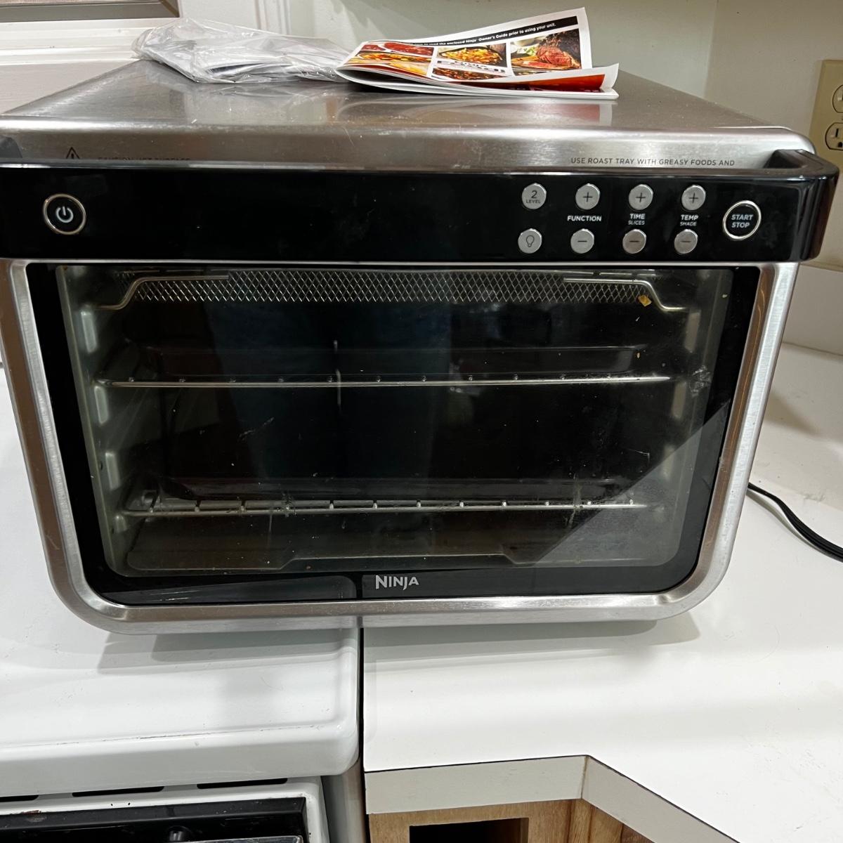 A full-size Ninja air oven measures 16” x 17.5” x 13.5”H. this appliance powers on when plugged in.