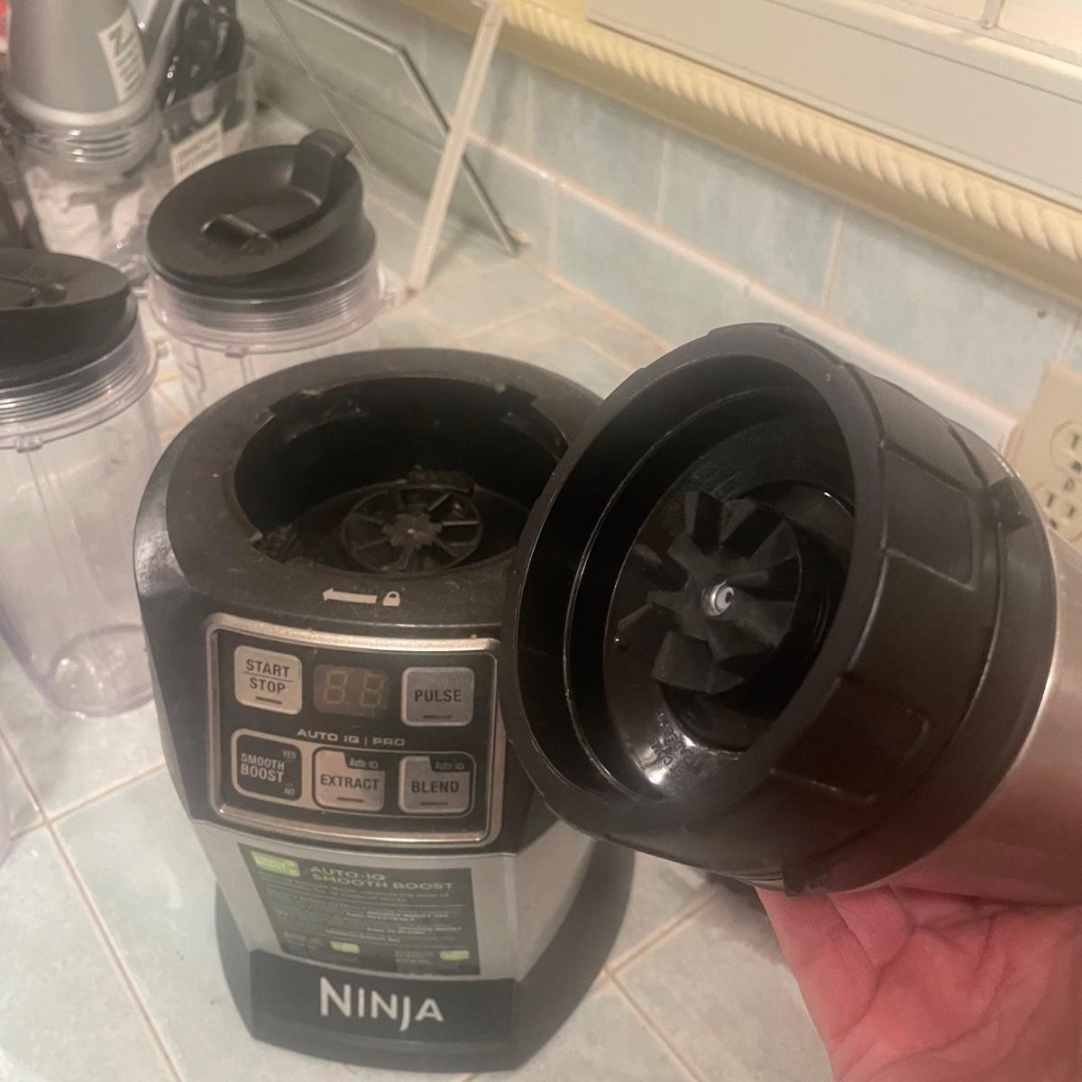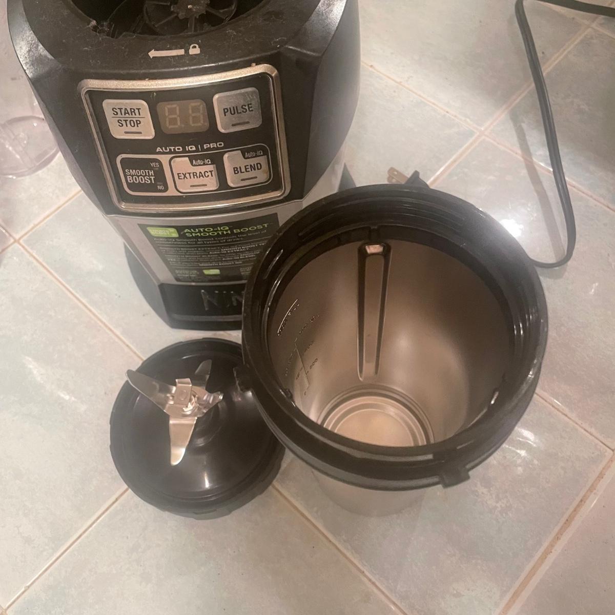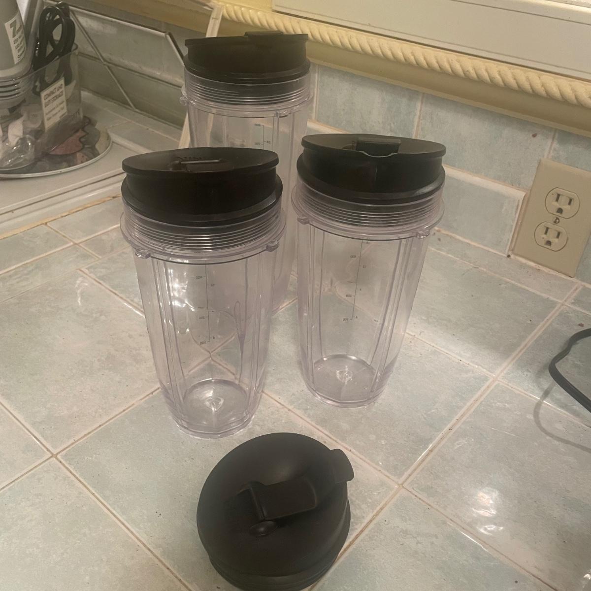 Both appliances powered on when tested. The Ninja IQ Smooth boost blender comes with 3 plastic cups with “˜to go’ lids. The Hamilton Beach is model 58142R and measures 6” d x 15” tall.