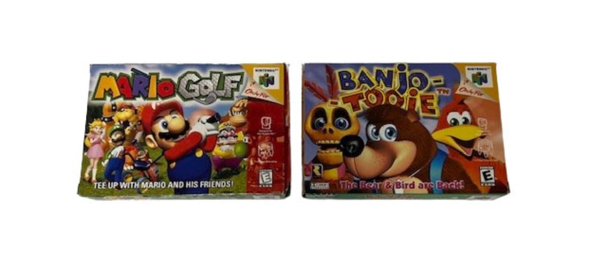 Includes Banjo-Tooie and Mario Golf. The Mario Golf box has minor wear. Both are believed to be complete, and are in original boxes. [SD]