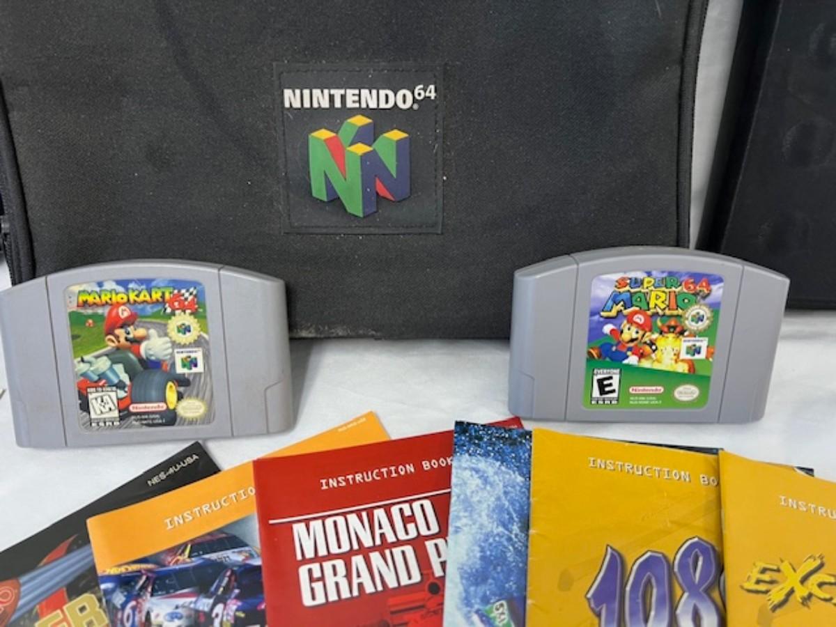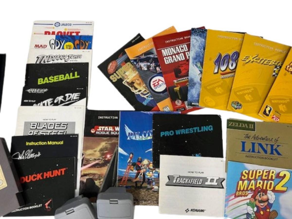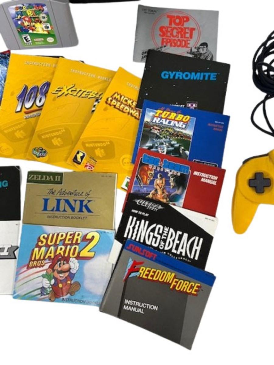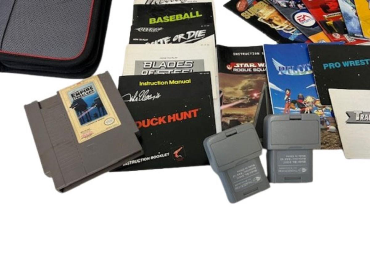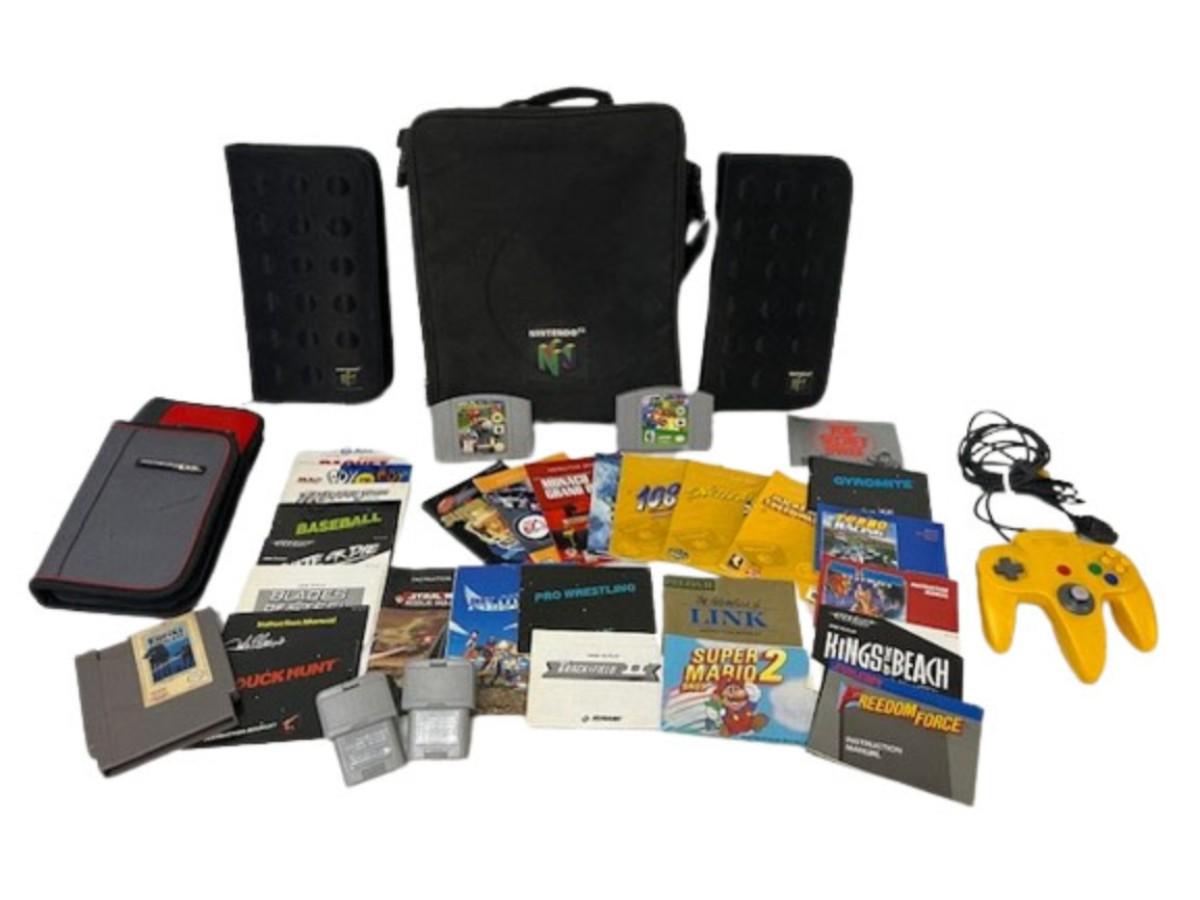 Includes games, controllers, booklets, storage cases, a console case, and more. Age related wear. Total of 11 pieces and 29 booklets. [SD]