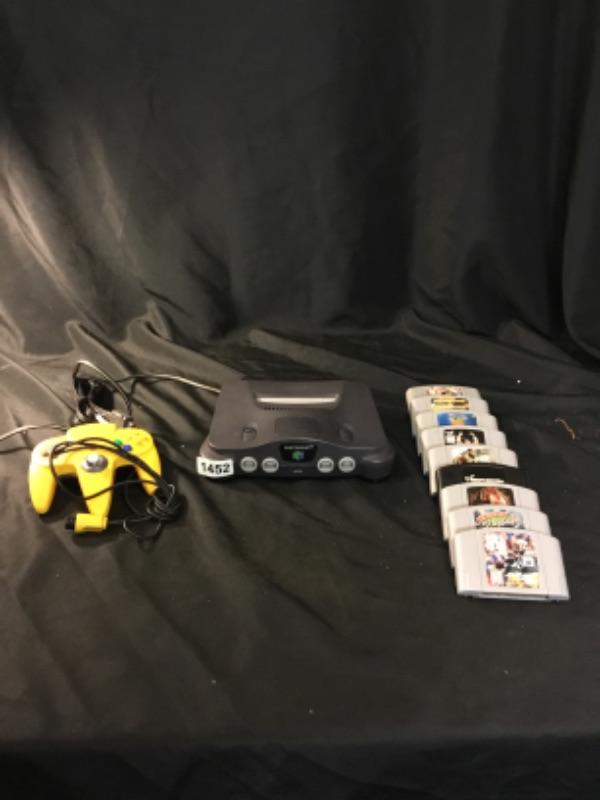 Nintendo N64 001 Console, power cord, av cord, controller and games Lot 1452