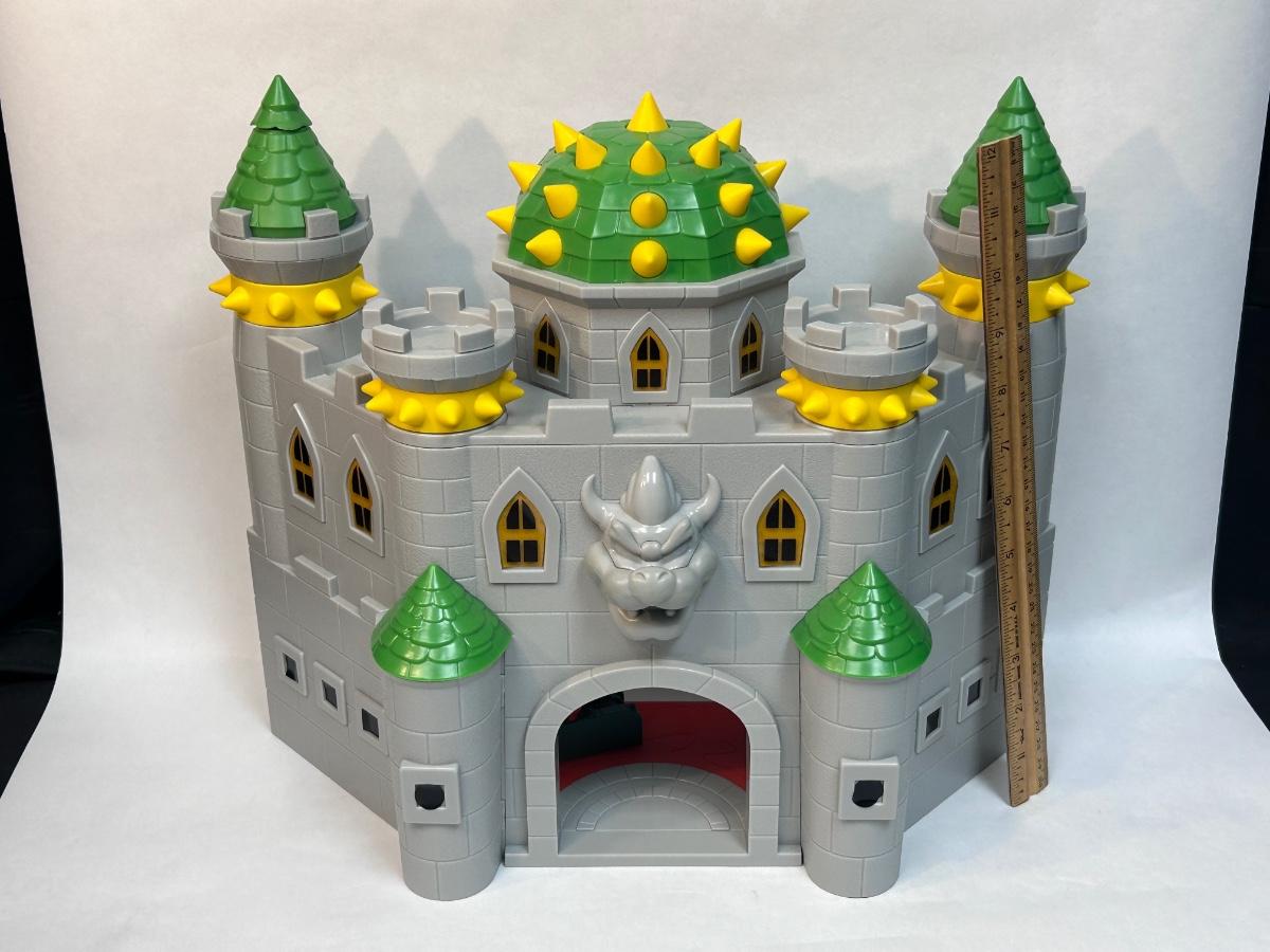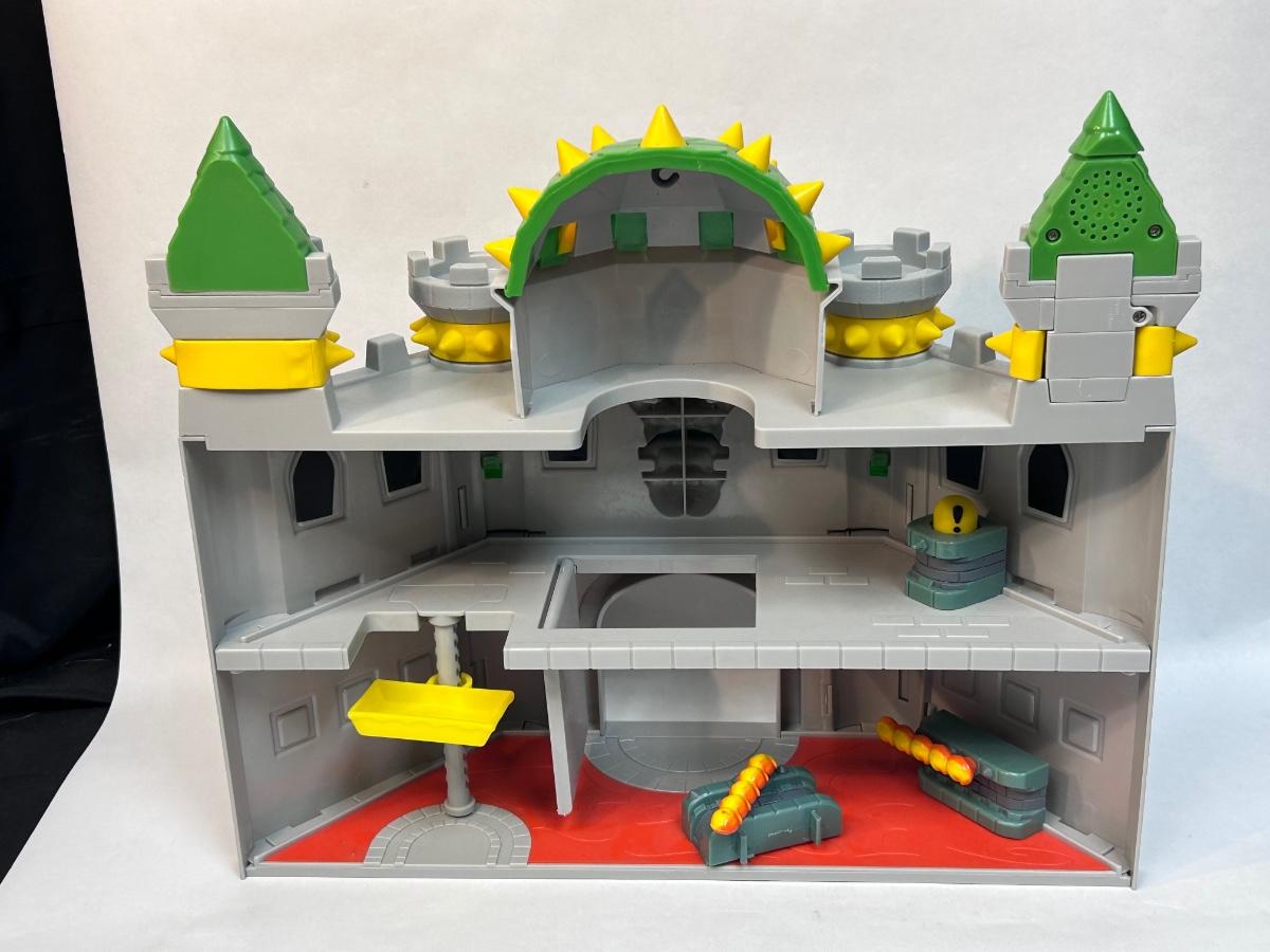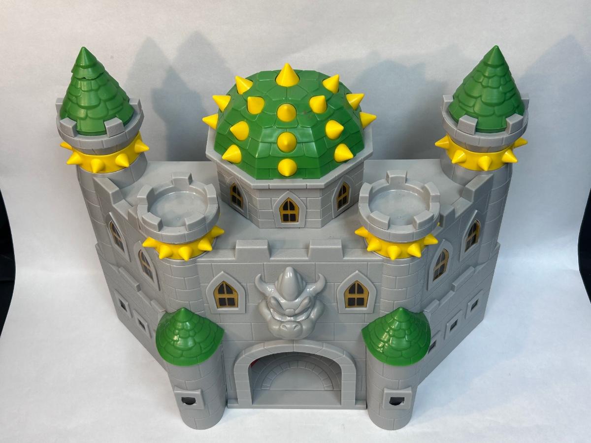 Nintendo Super Mario Bros Bowsers Castle Playset. Castle only no figures or accessories included. One of the castle points pushes down to make noise but battery needs to be replaced, not working.