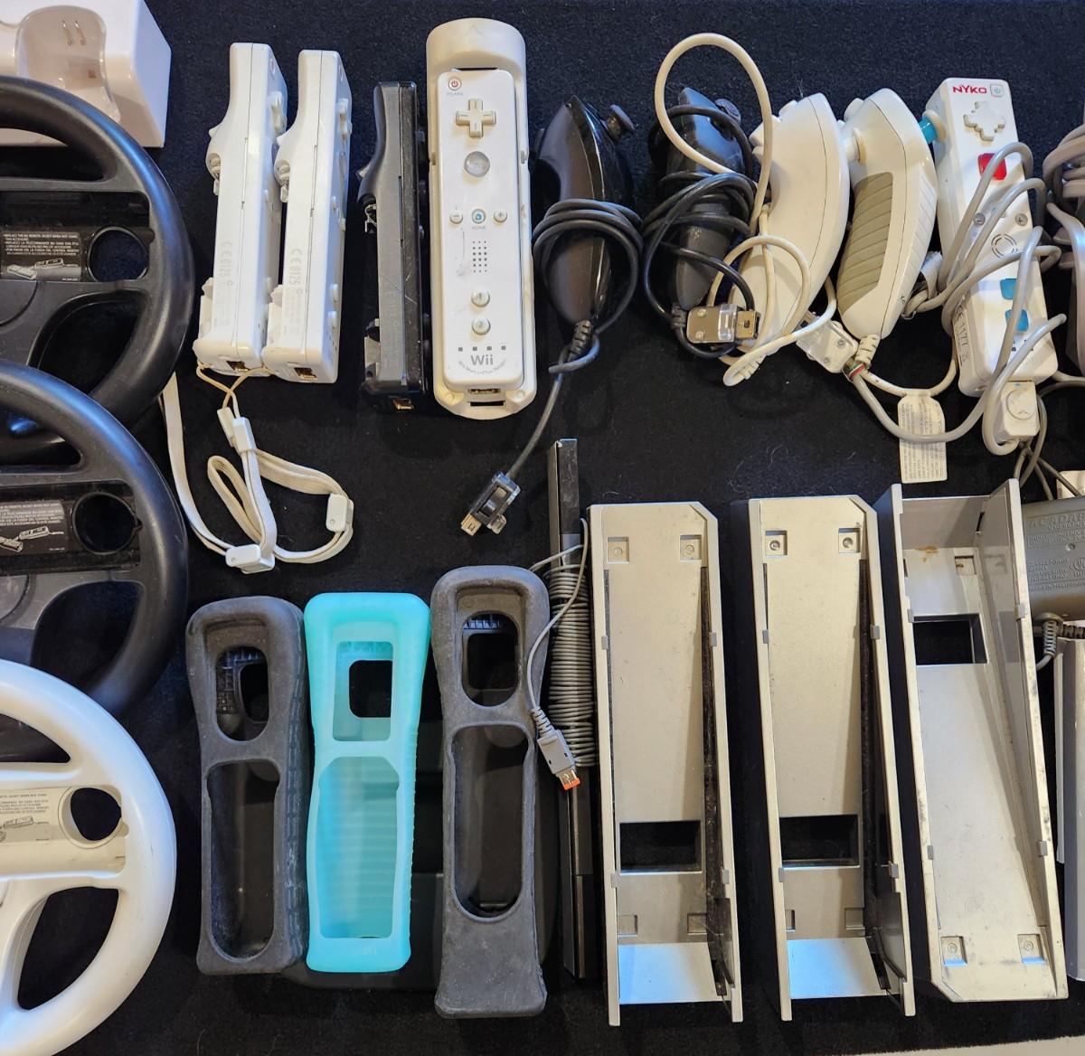 Nintendo Wii Huge Lot of Racing Wheels Controllers Stands & much more
