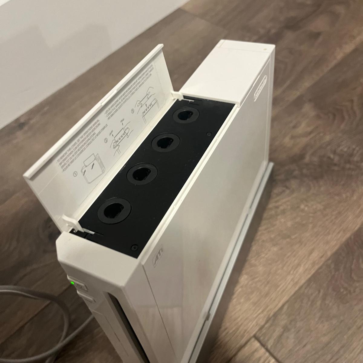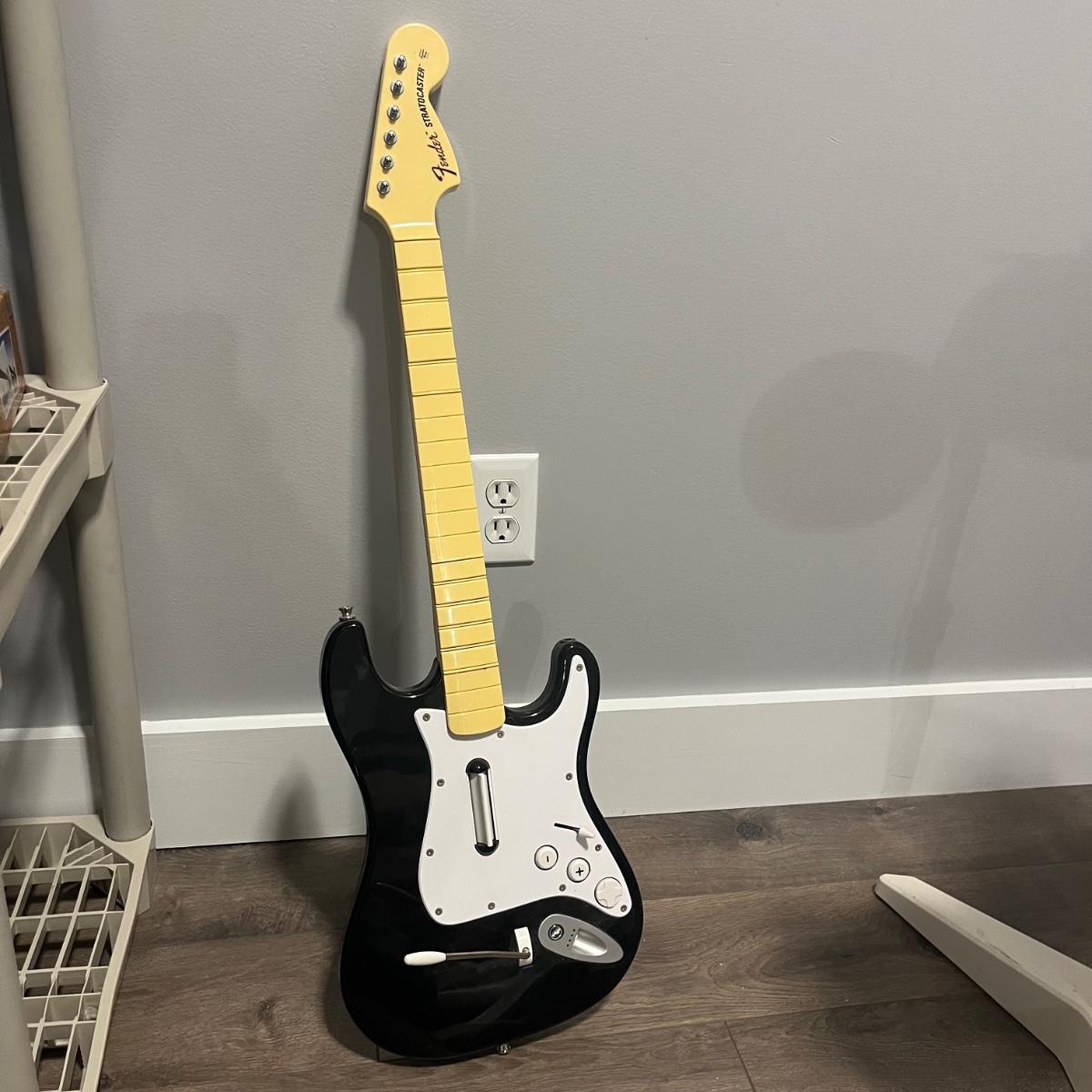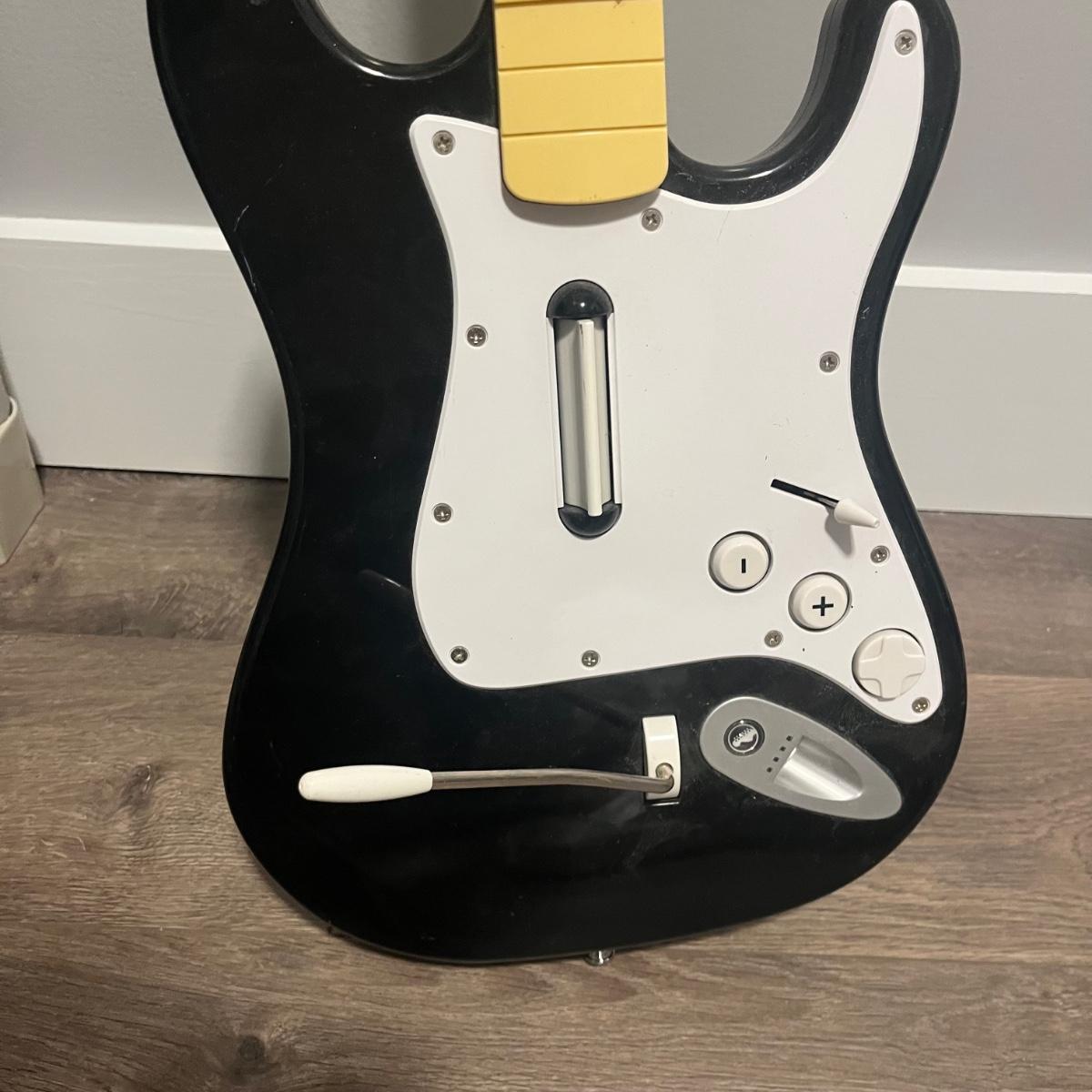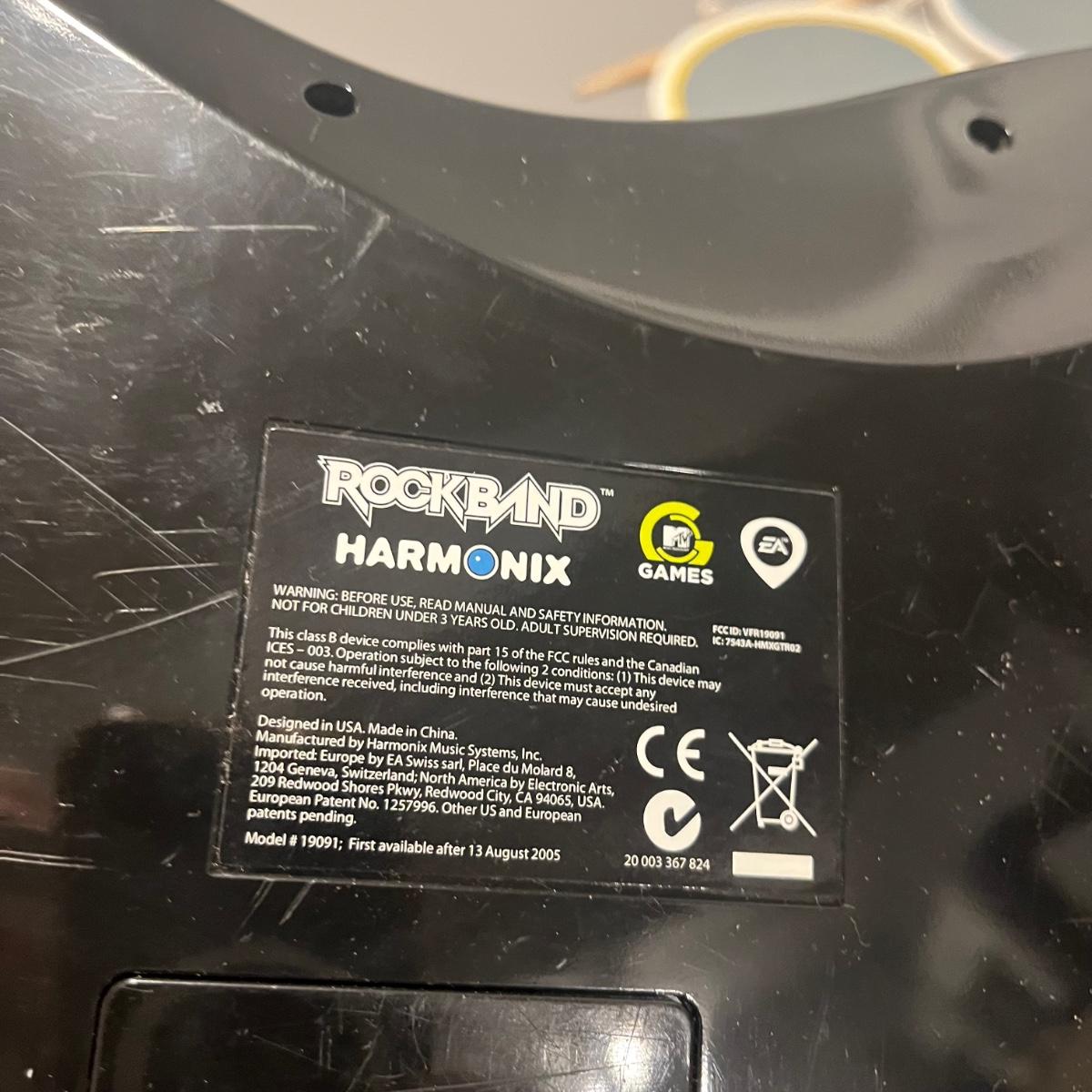 Lot includes a Nintendo Wii with drum set, guitar, two controllers, Wii fit and a selection of games. Also includes a RF modulator. Also includes two microphones and steering wheels. Wii powered on when plugged in.