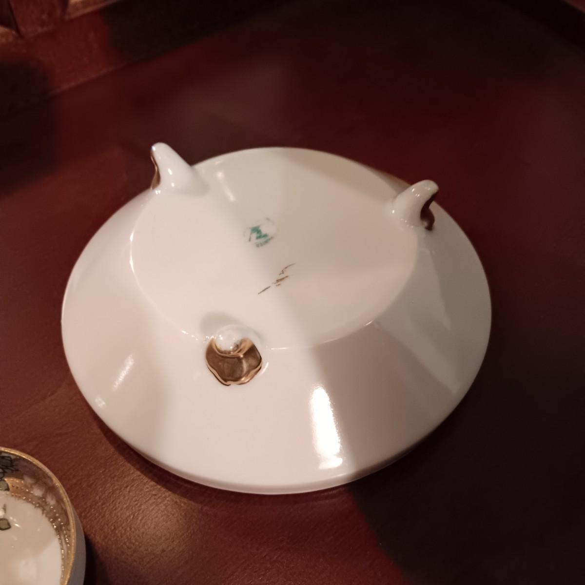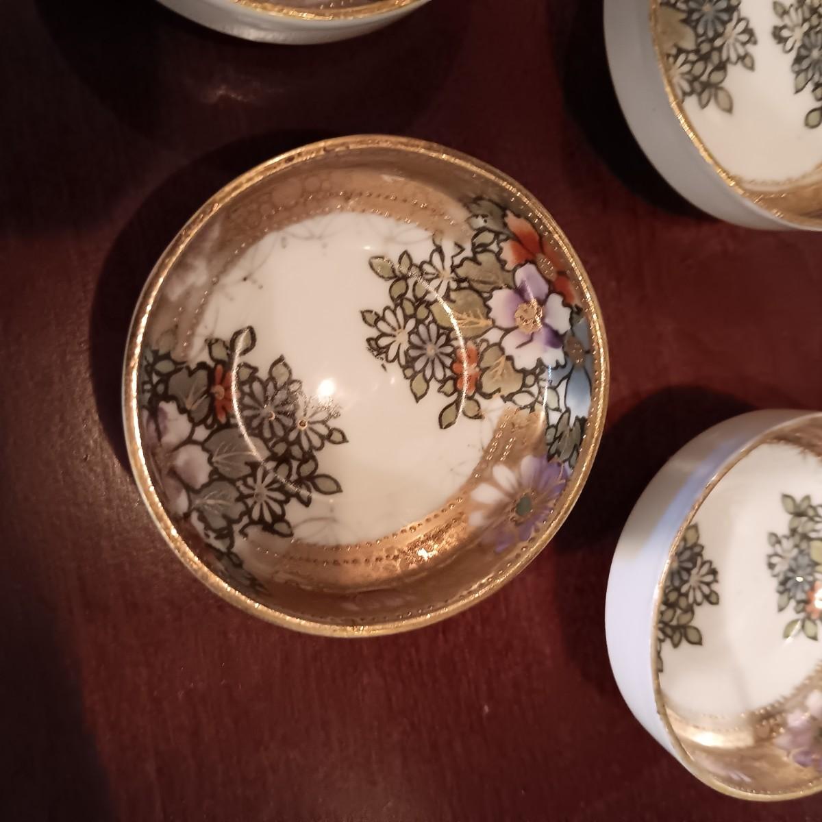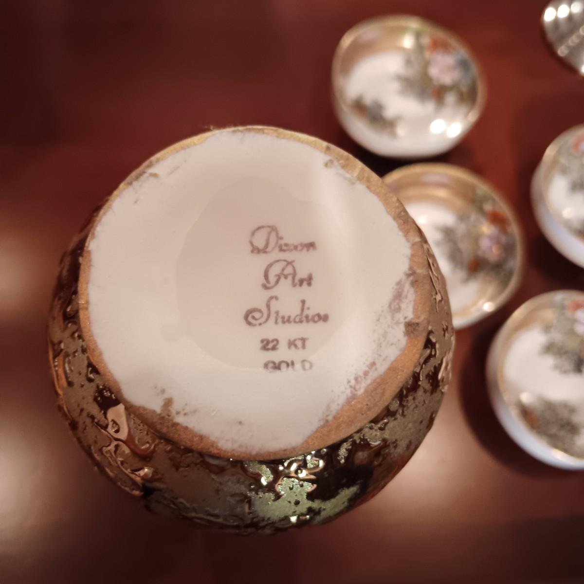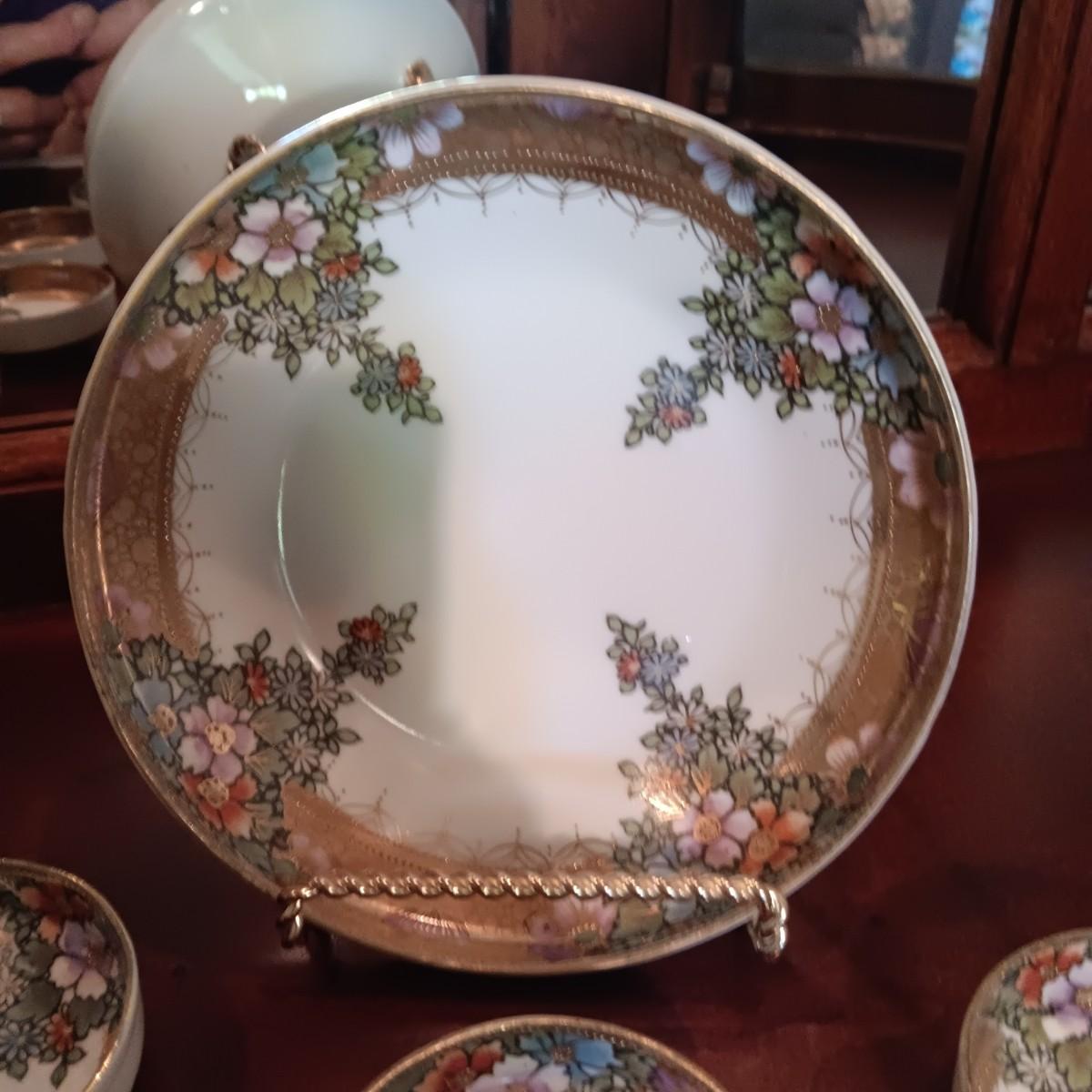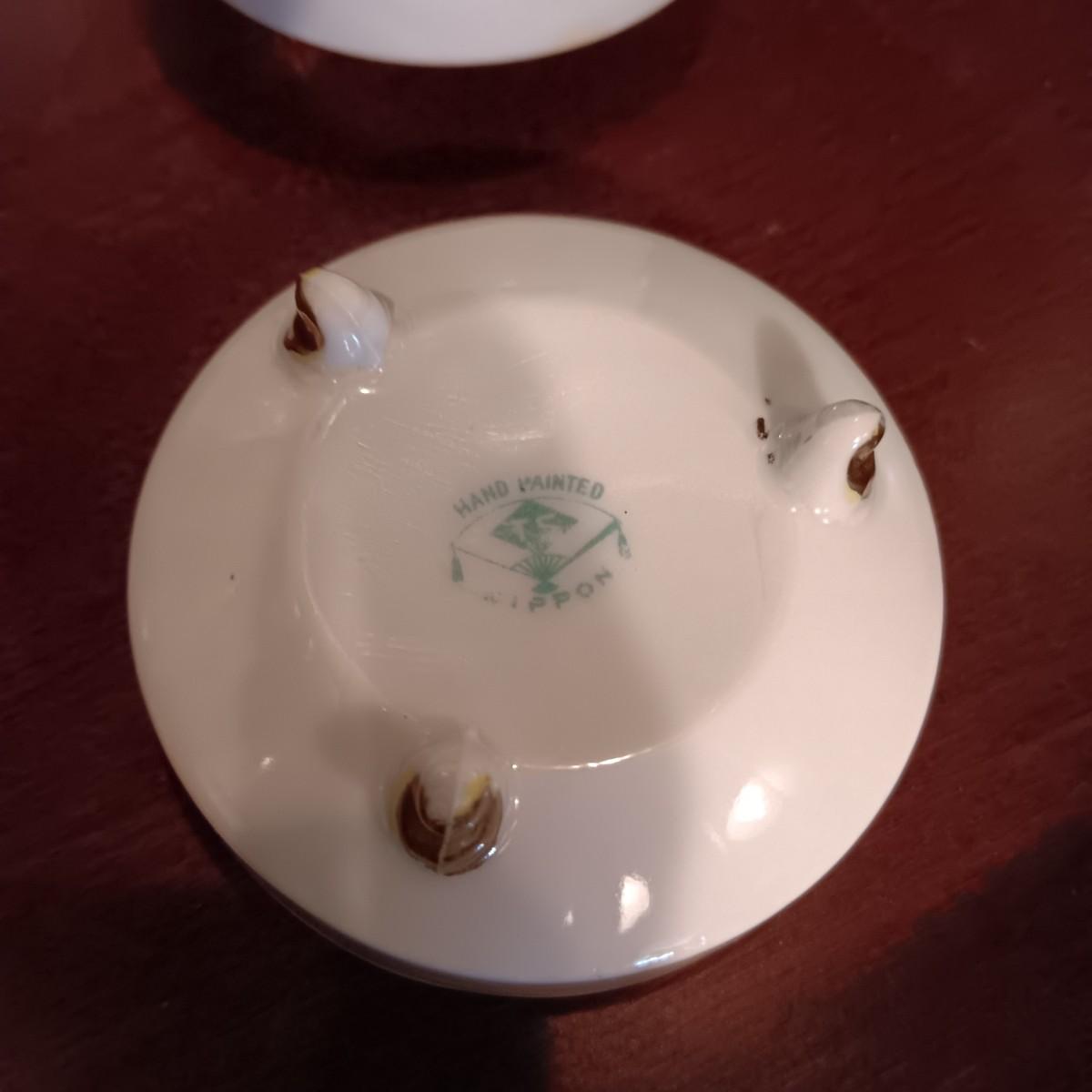 NIPPON FOOTED BOWLS, GOLD COLORED VASE AND BOWL PLUS METAL FLOWERS
