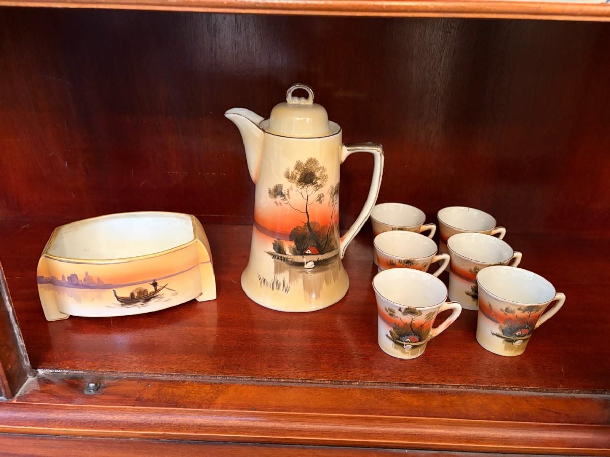 Nippon hand painted coffee set & bowl