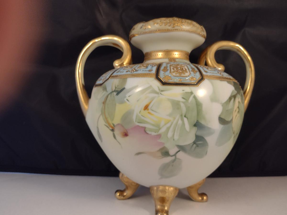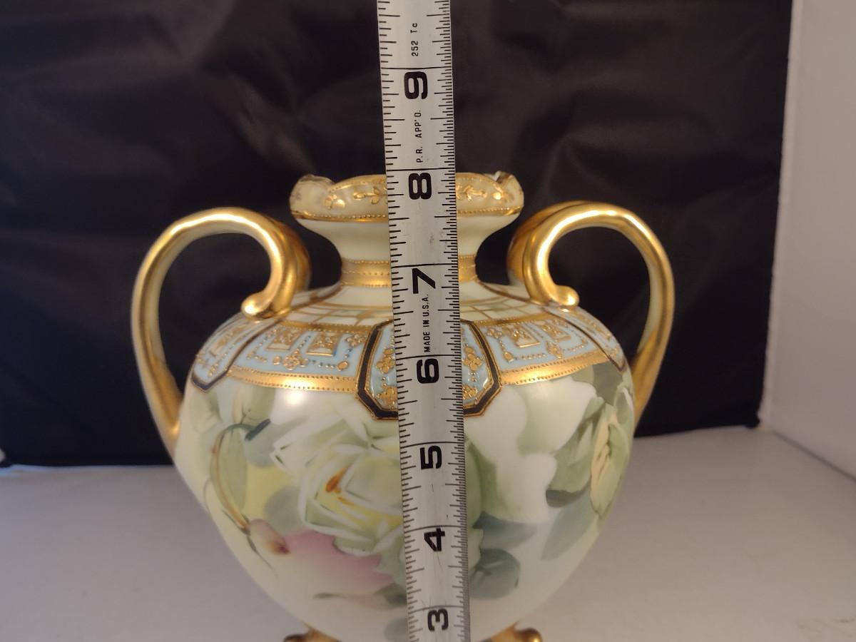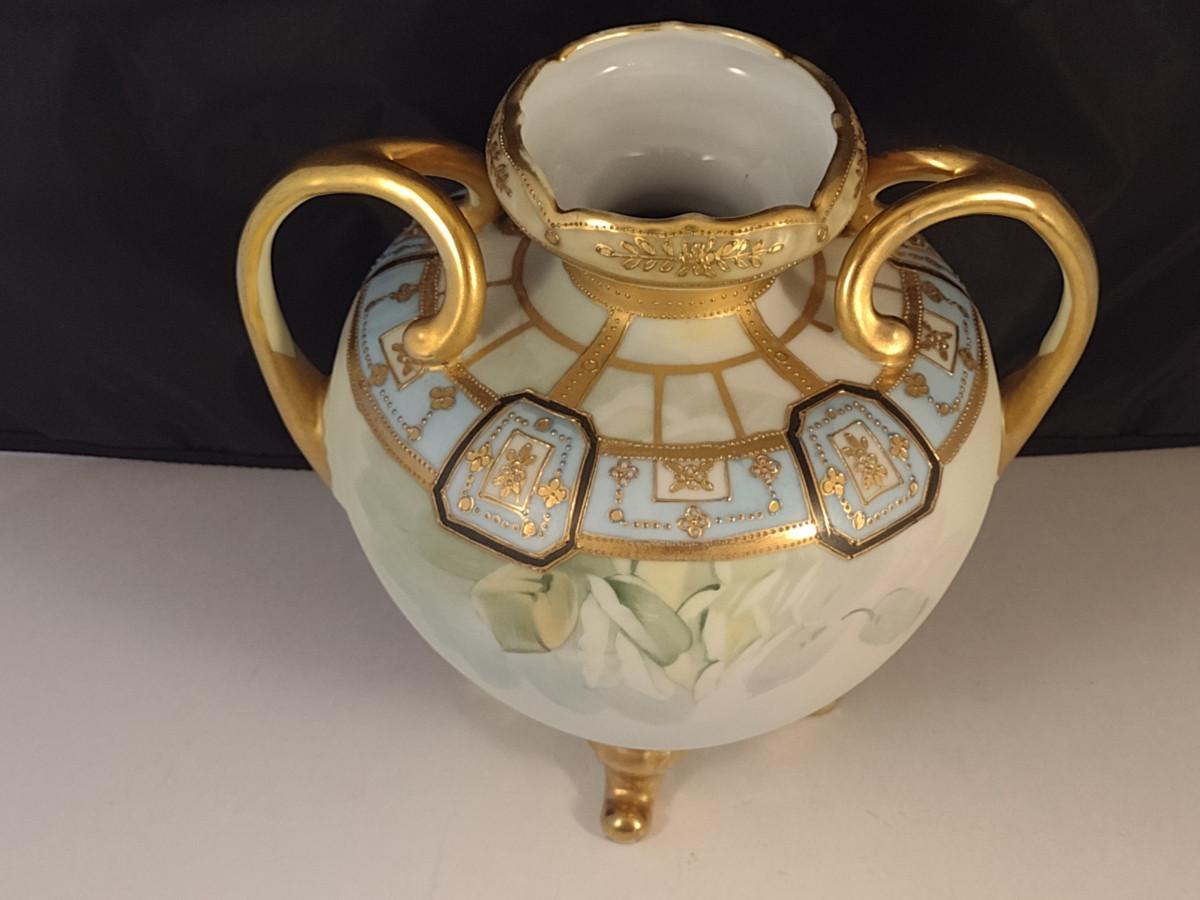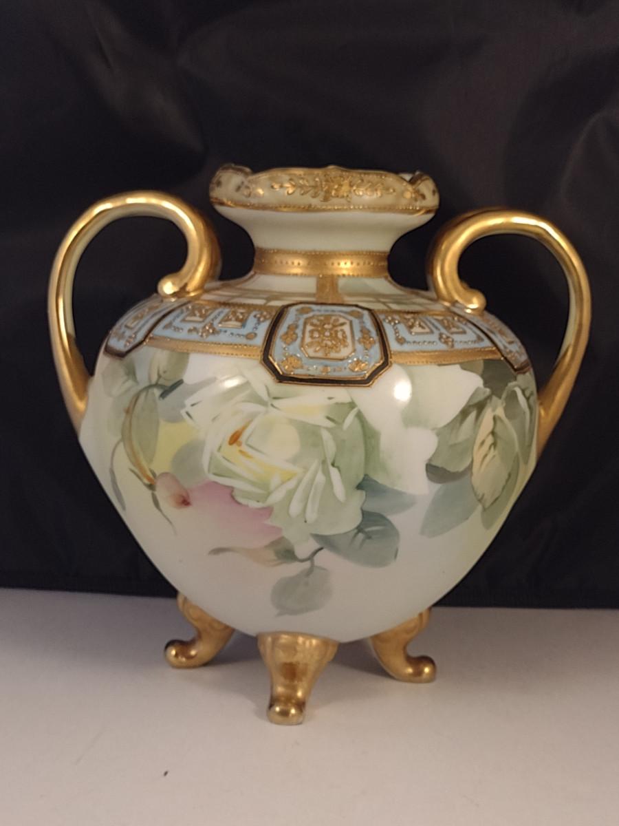 Nippon Hand Painted Footed Vase with Gilt and Floral Accents- Approx 8" Tall