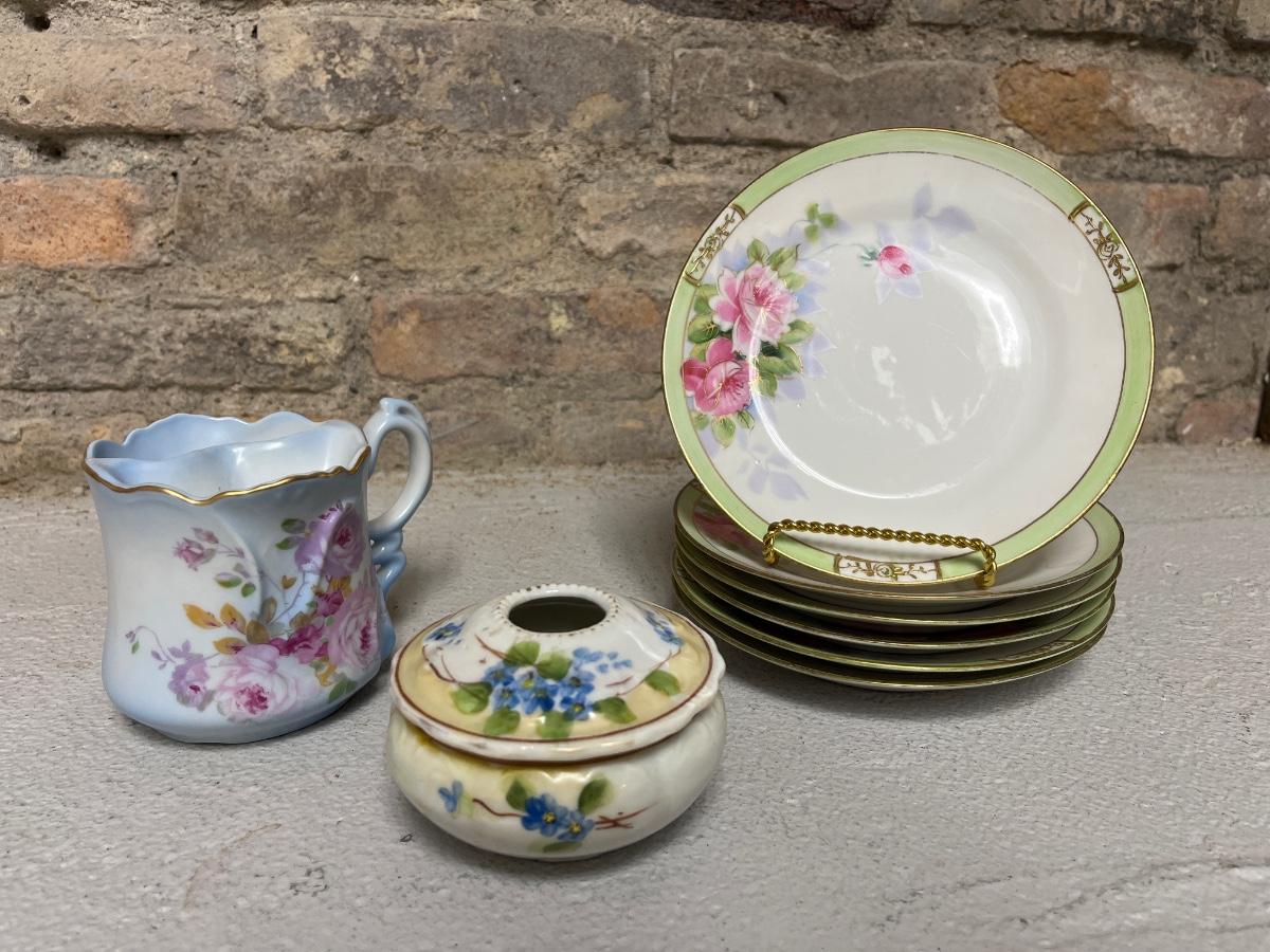 Nippon Lot #4 - Hair receiver, Mustache Mug and plates