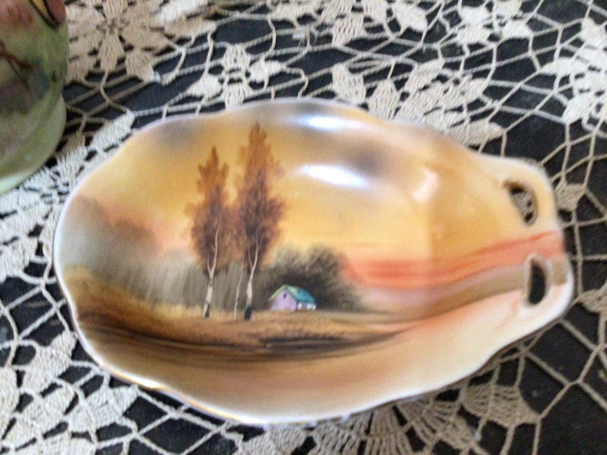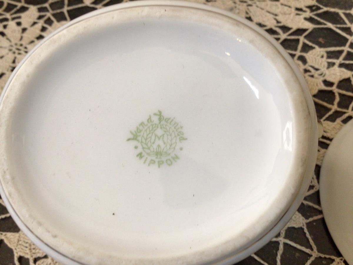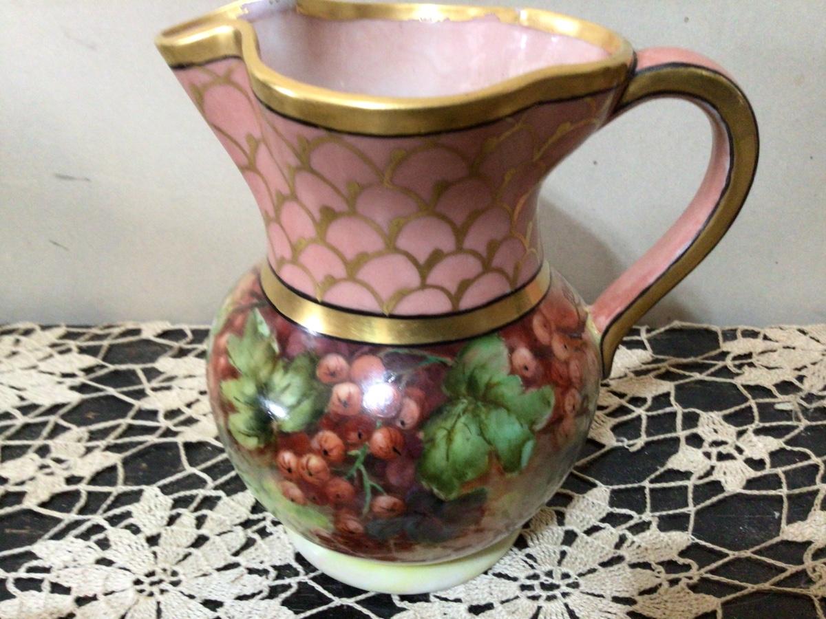 You get a great Nippon sugar bowl with cover and tray, Noritake small tray, and a nice pitcher with fruit design. They are all in great condition.