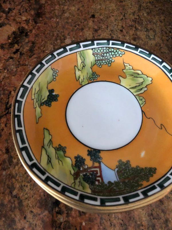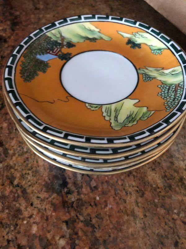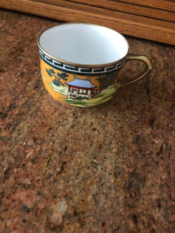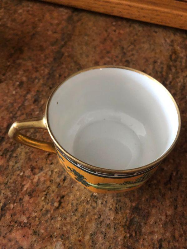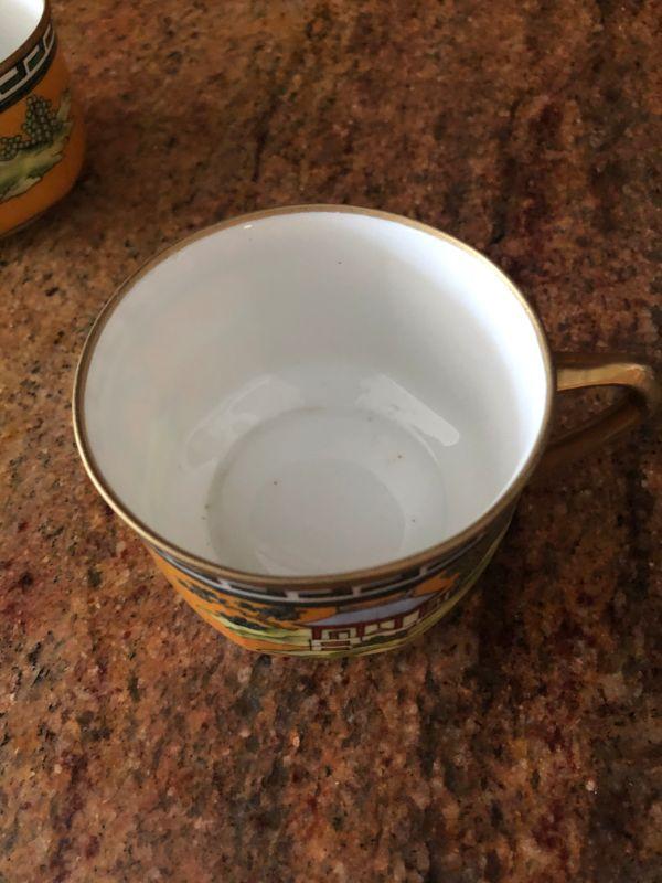 12 pieces, Some gold as worn off. Chip on one of the cups