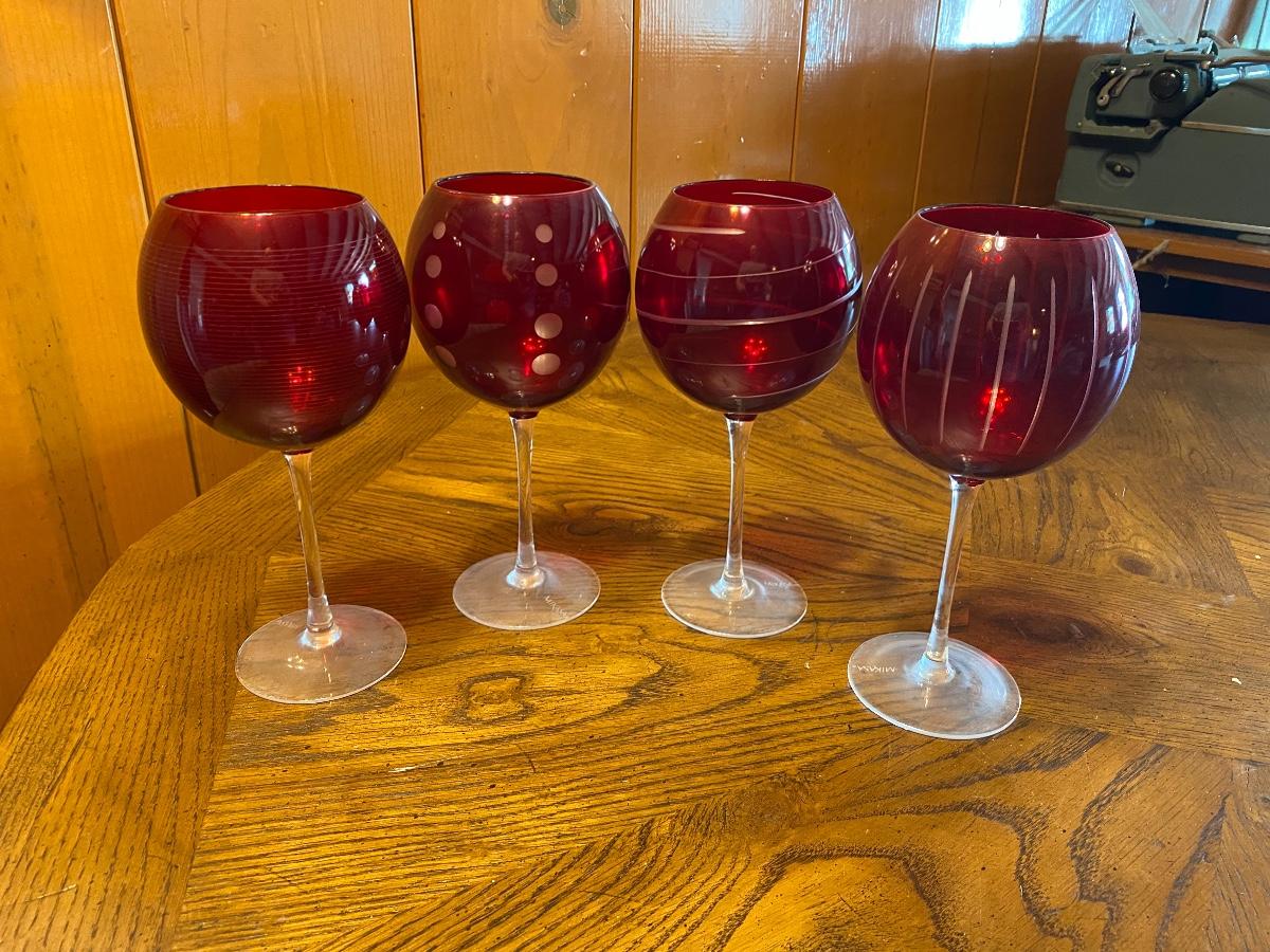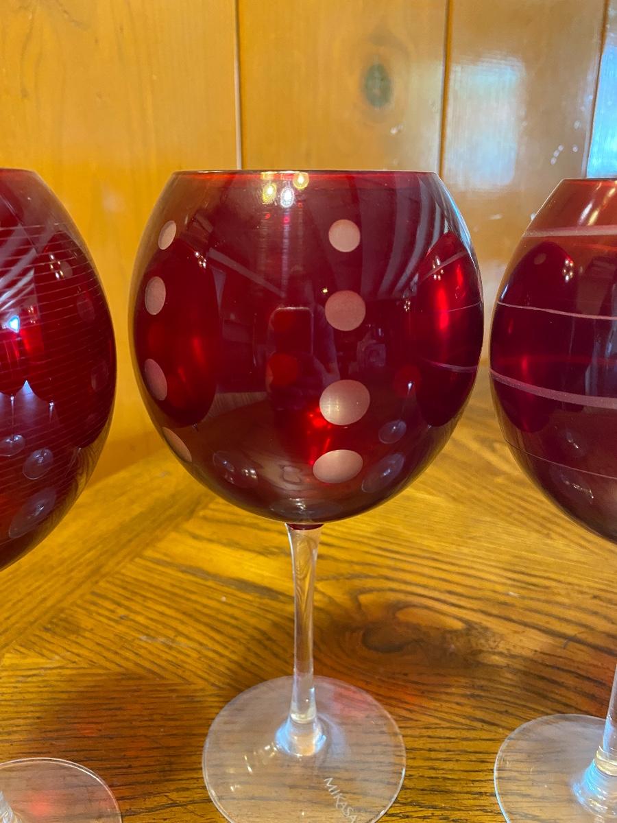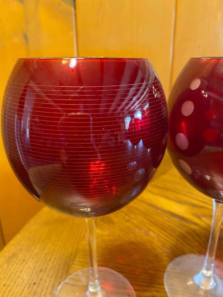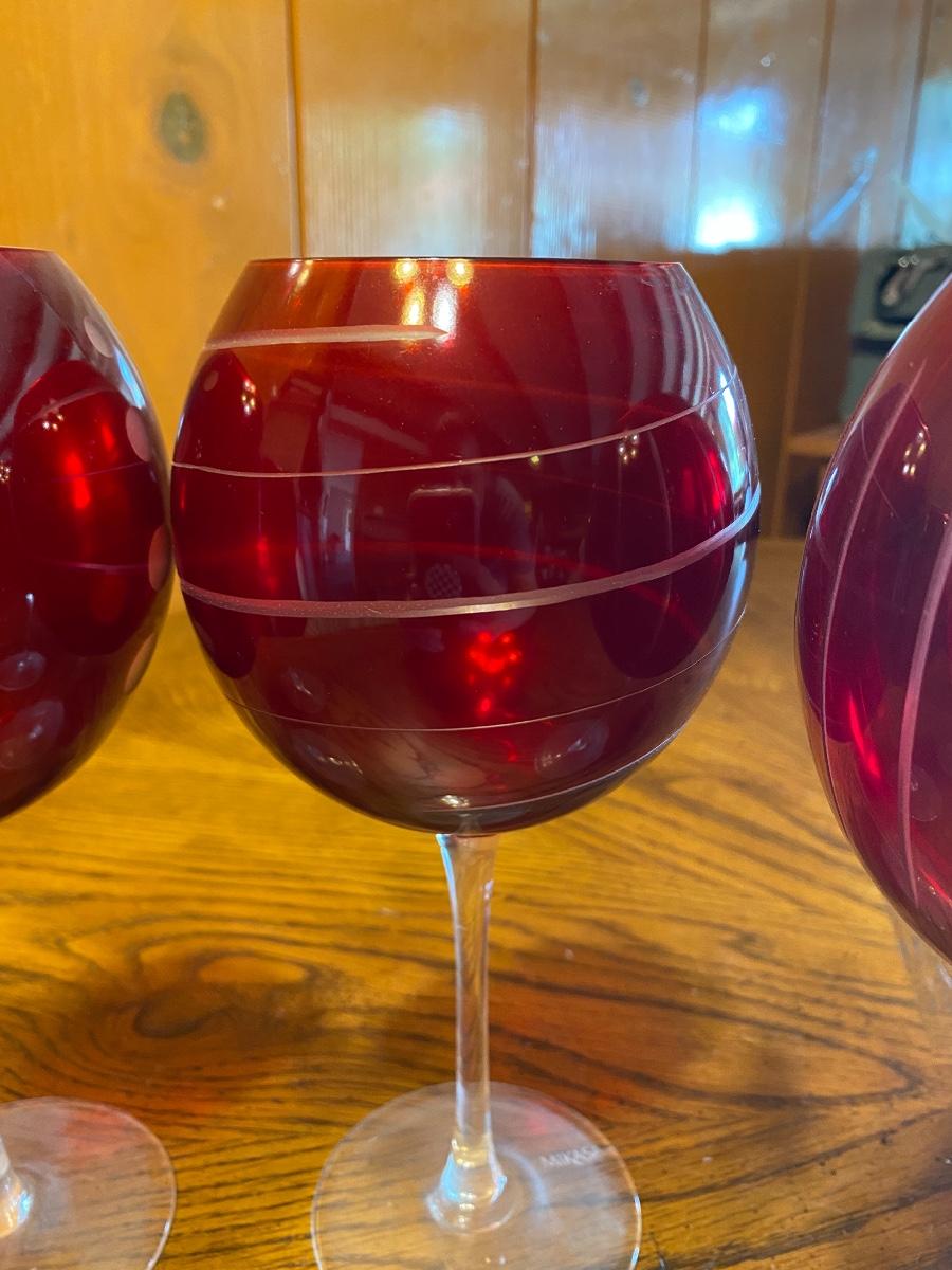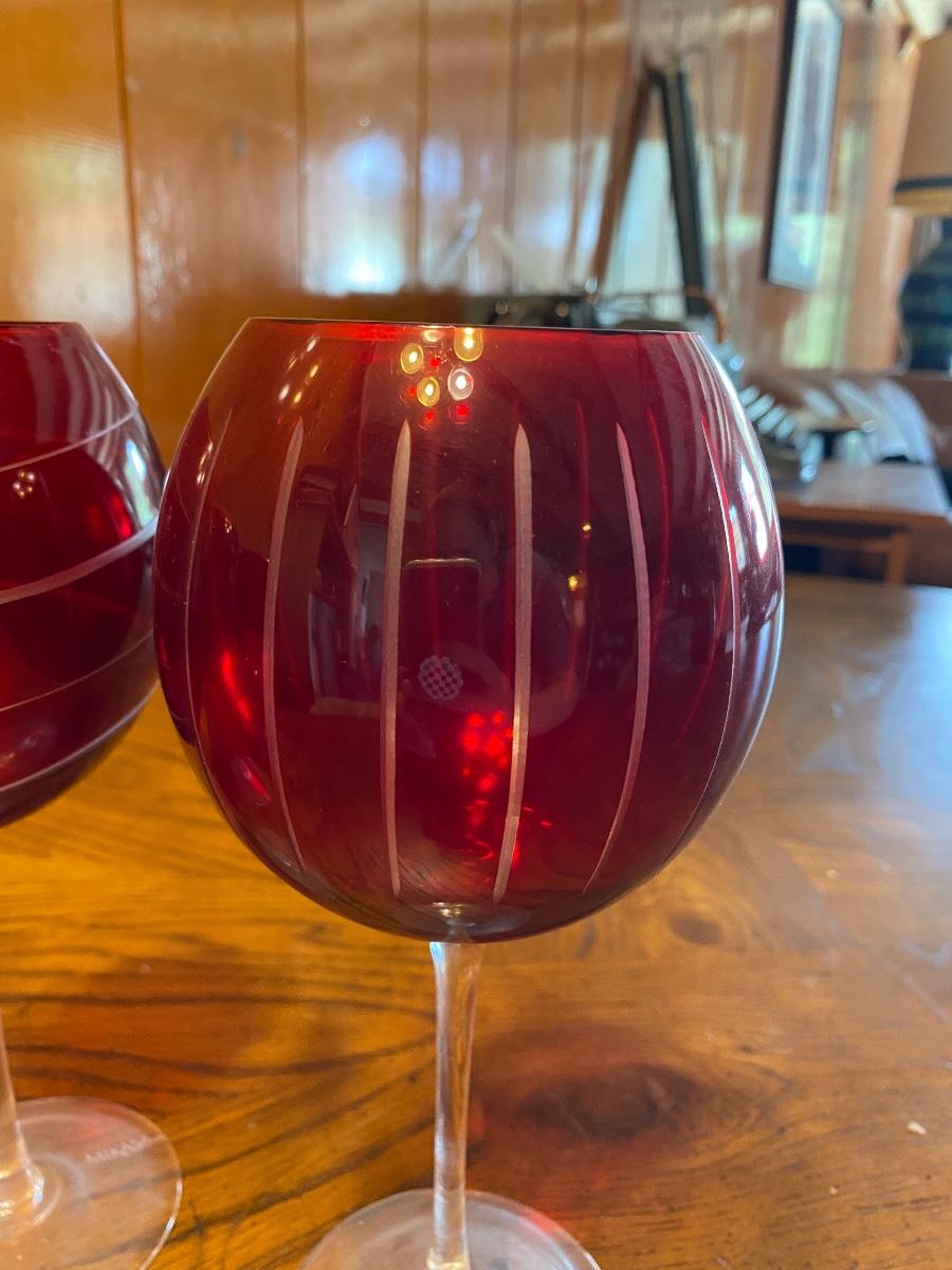 Mikasa Red to Clear Crystal Wine Glasses. A little dusty.