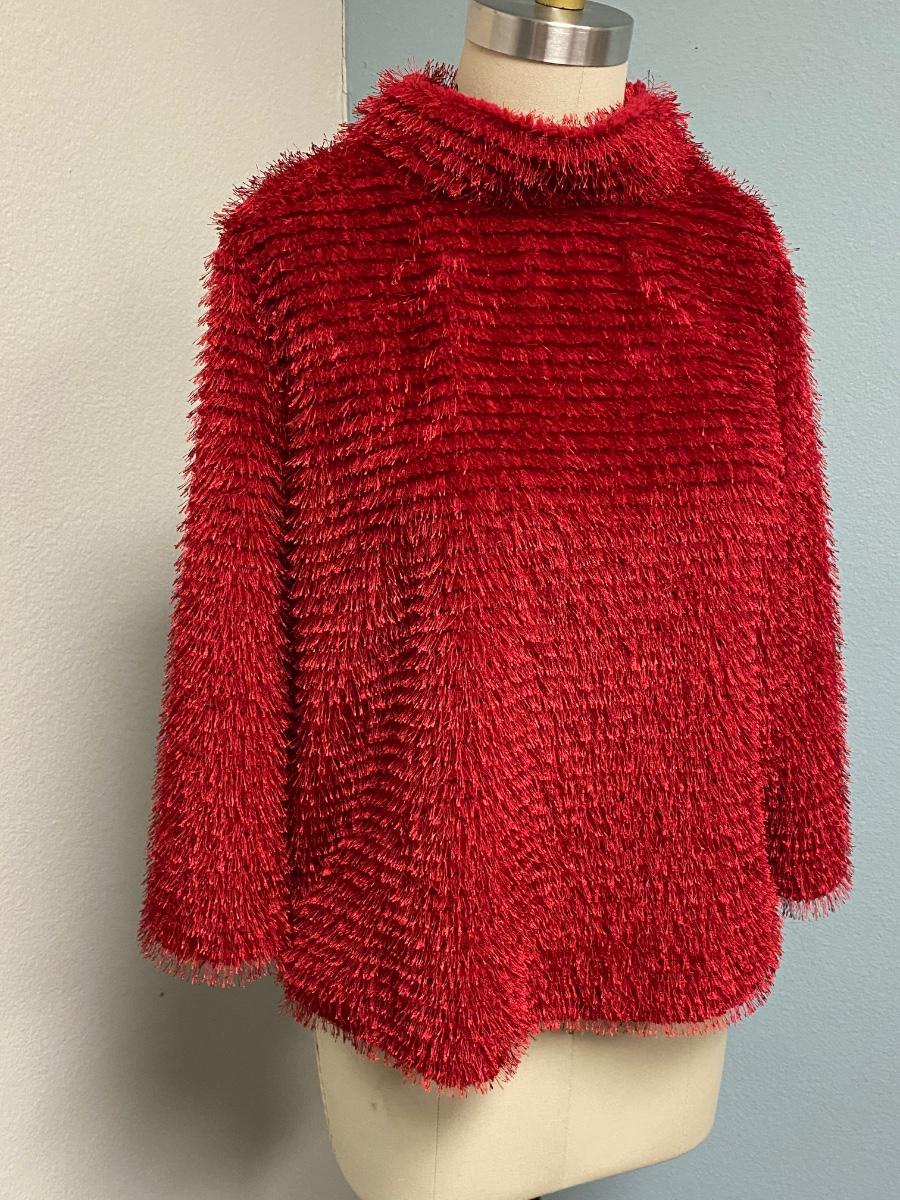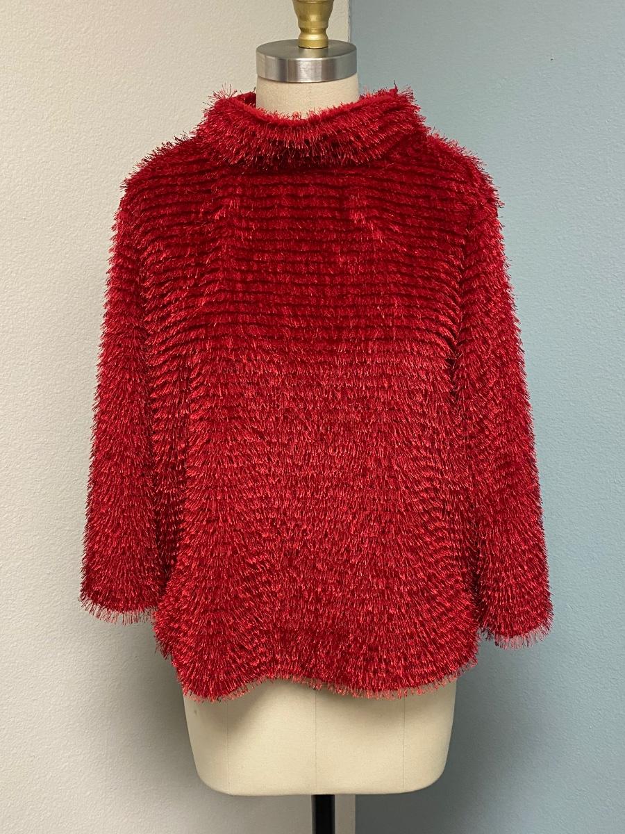 Vince Camuto Red Fringe Pull Over Sweater Blouse Top Size Large