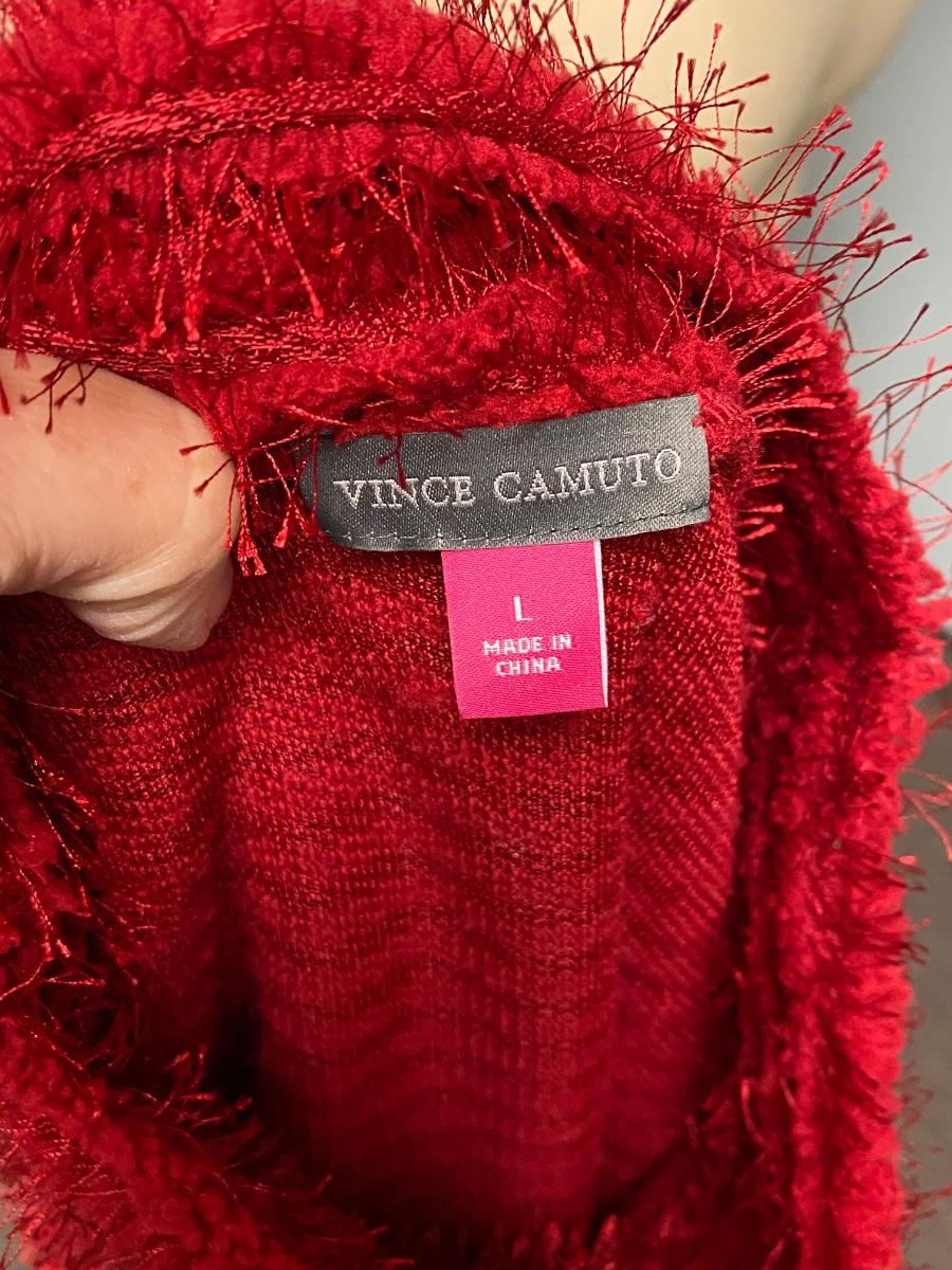 Vince Camuto Red Fringe Pull Over Sweater Blouse Top Size Large. In good condition. Dress up or dress down, versatile fashion top.