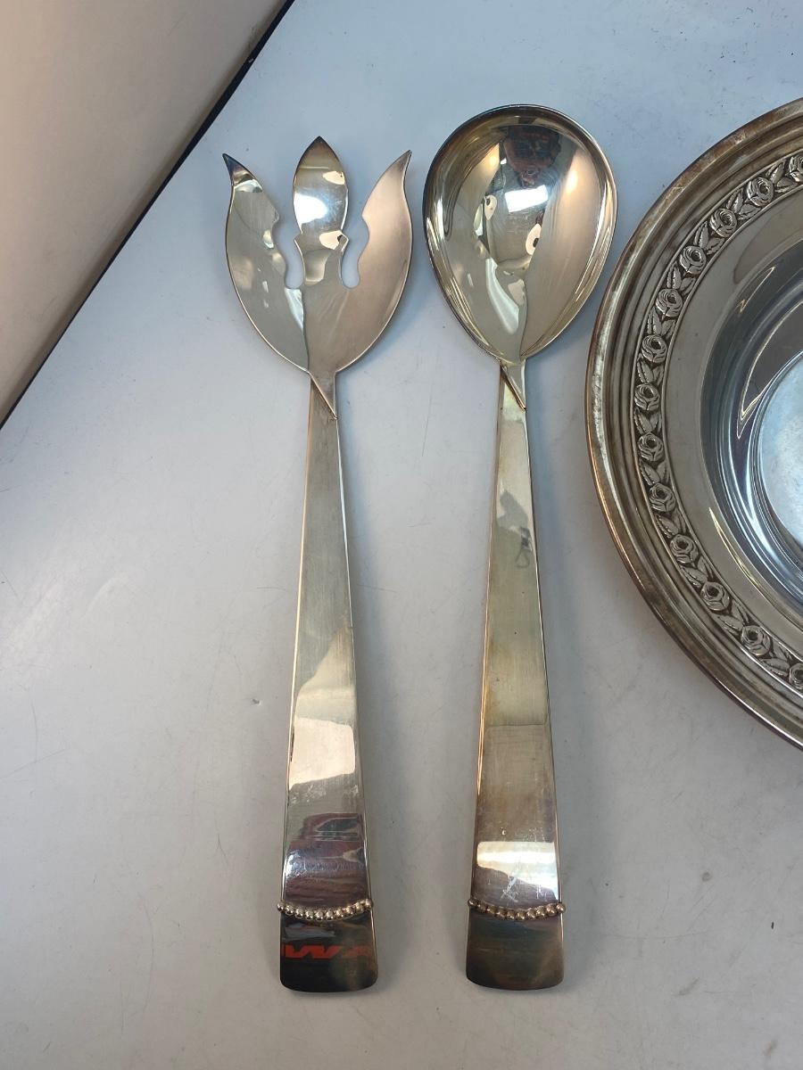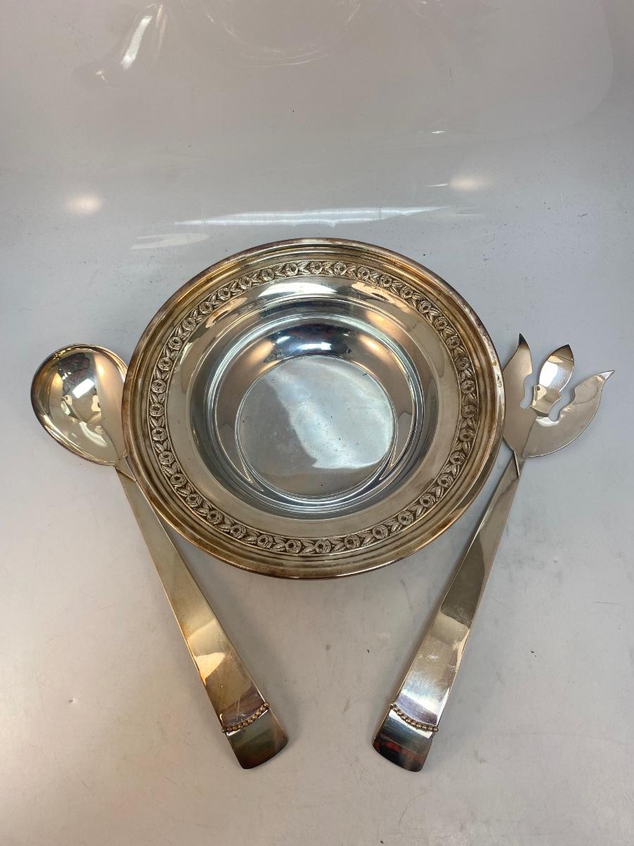 Vintage Reed & Barton Silver Plate Serving Bowl with Serving Tong Set