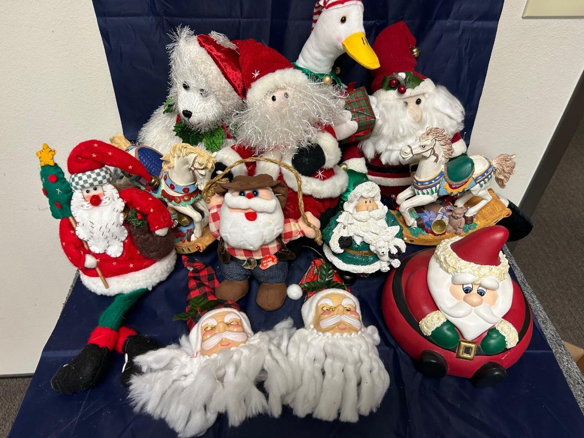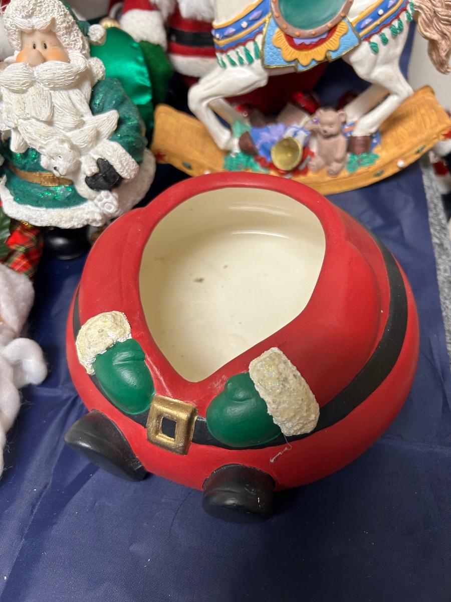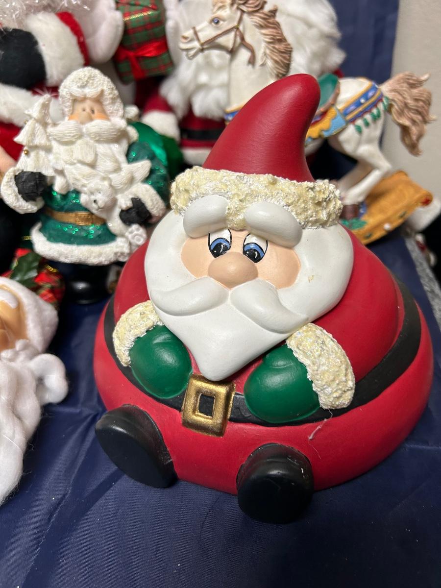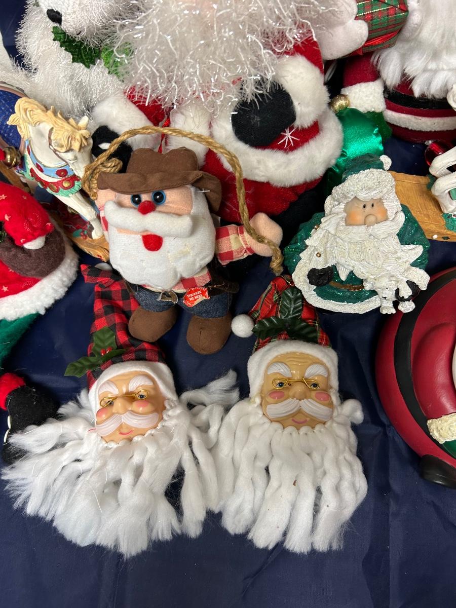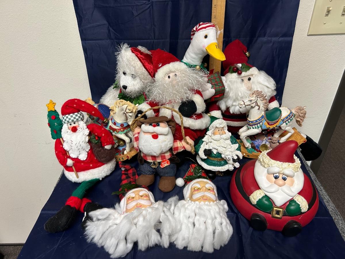 Mixed Christmas Holiday Plush and Figurine Lot. In good condition. Small rodeo Santa works when you push his hand.