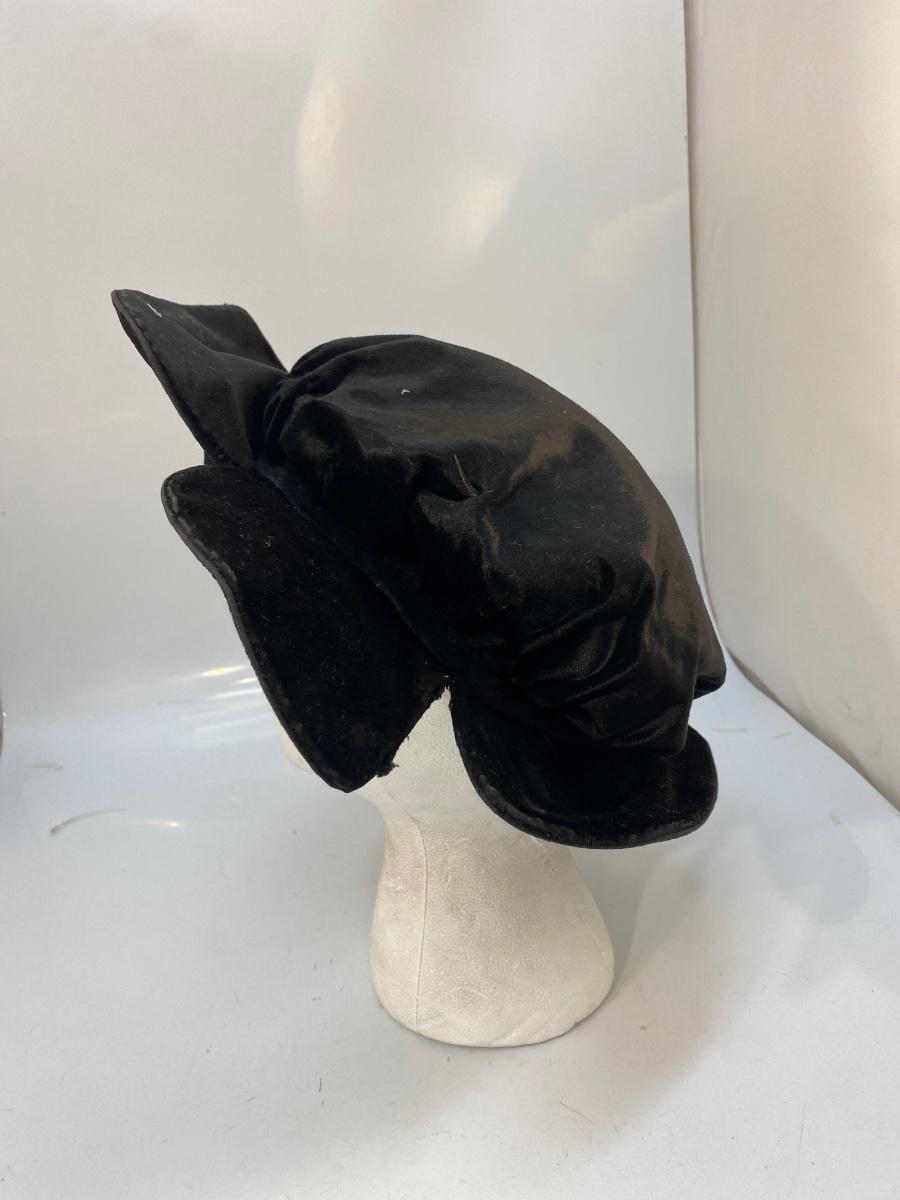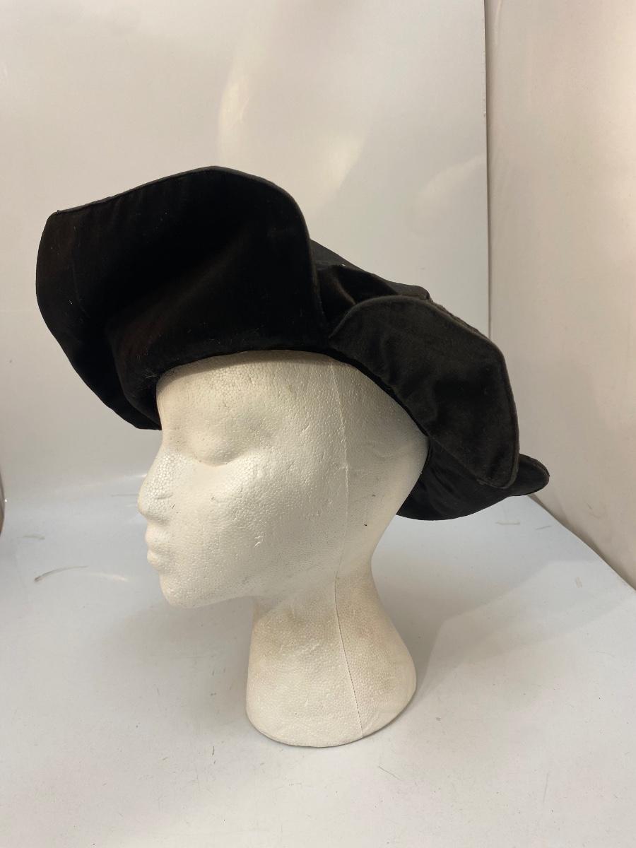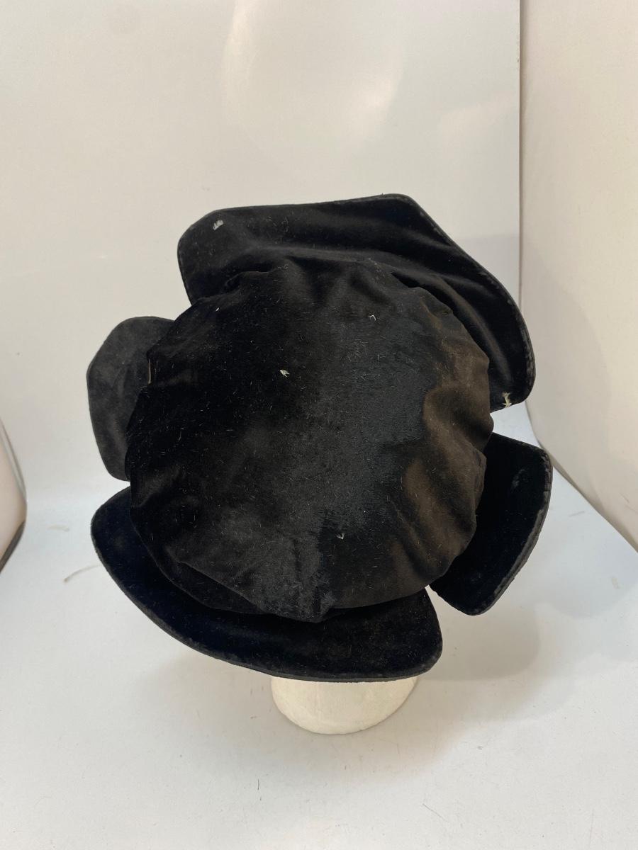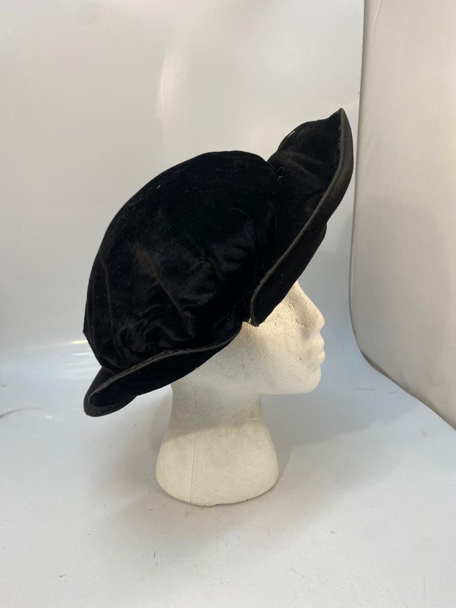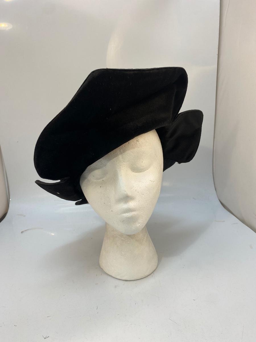 Vintage Black Velvet Bullock's Los Angeles Avant Garde Hat. Interesting shape to the brim, could be formed in different styles. In good vintage condition.
