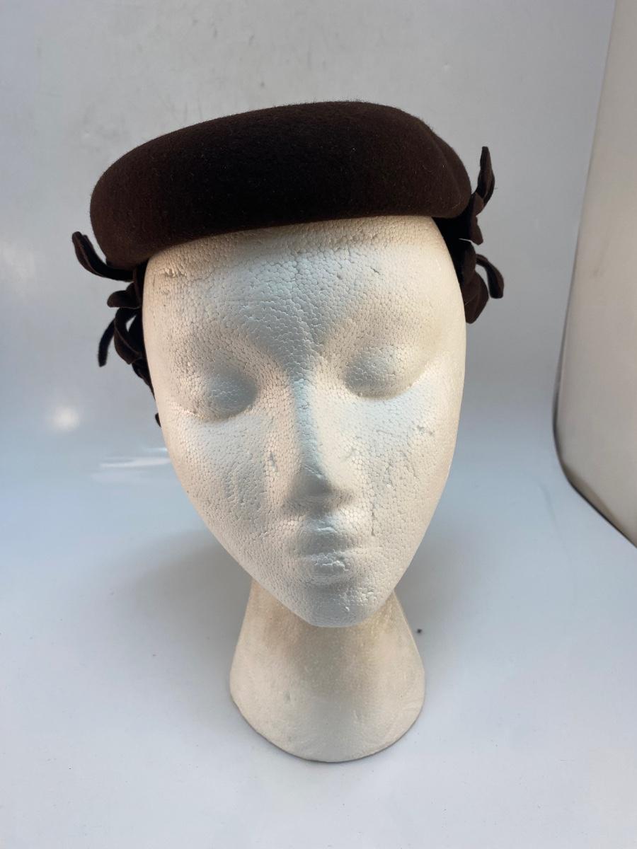Vintage Dark Brown Wool Skullcap Fascinator with Cut Out Flowers