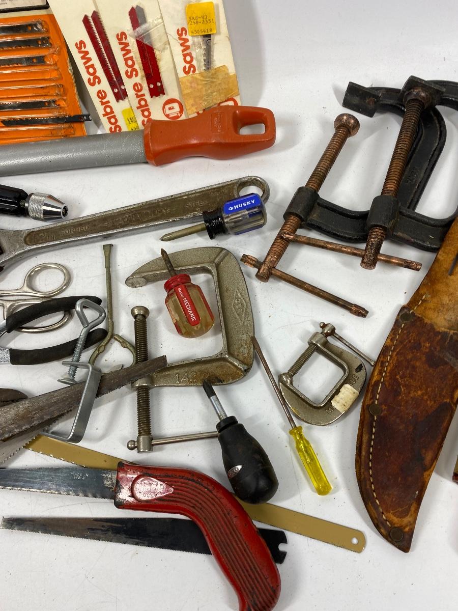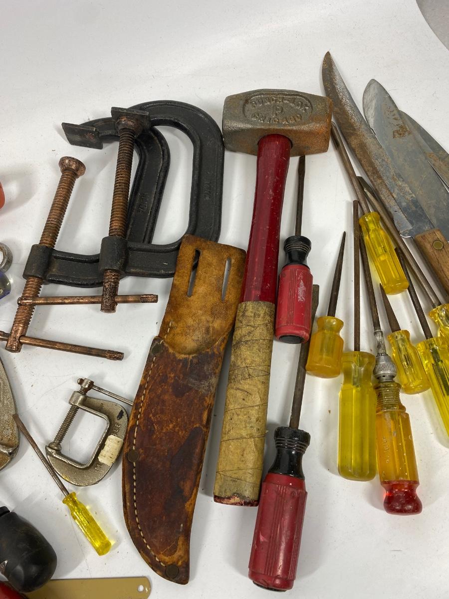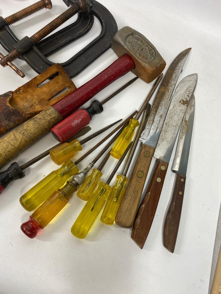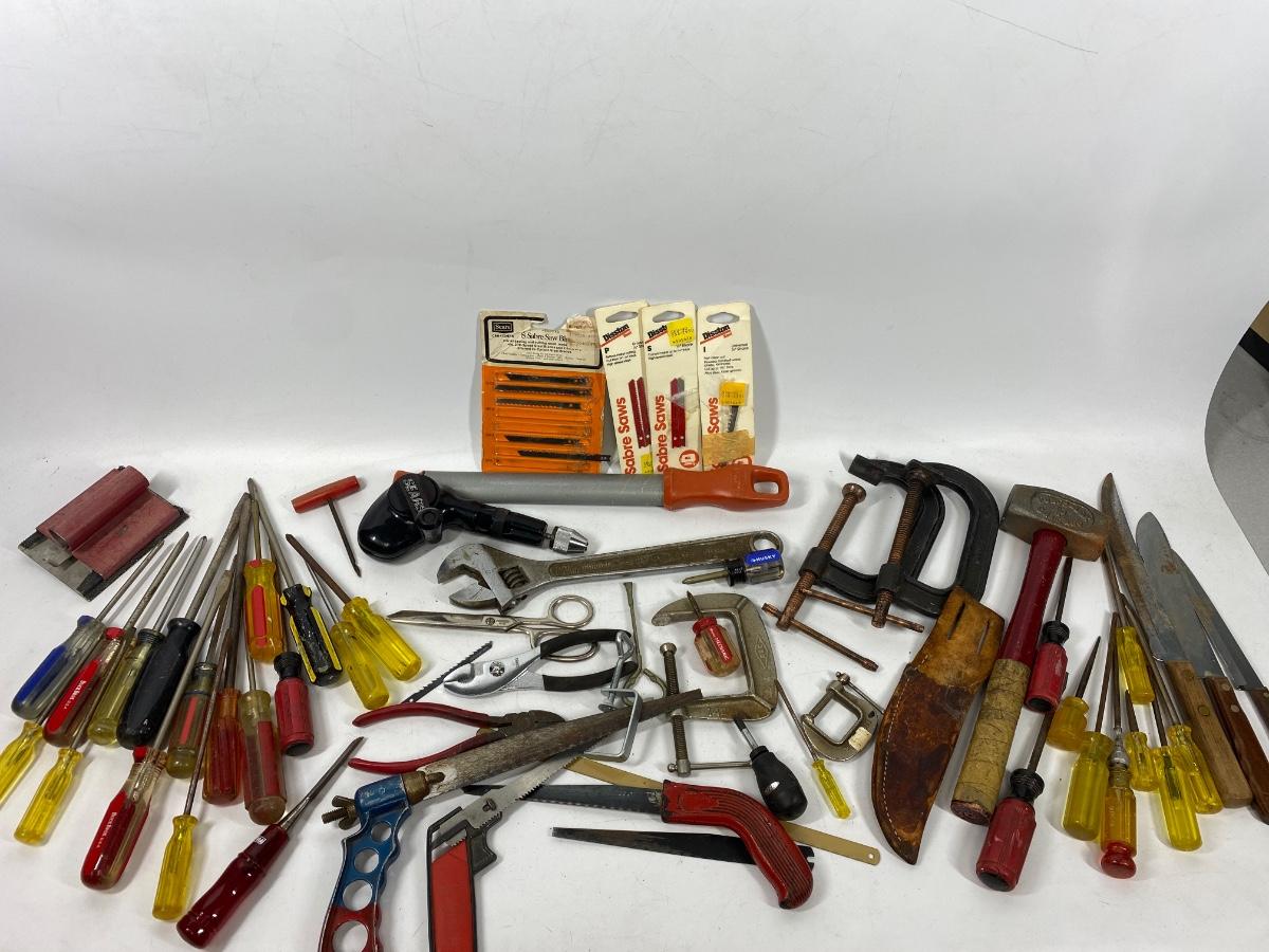 Mixed Lot of Vintage Used Hand Tools Screwdrivers Pliers Clamps Saws Punch Lok Forge Hammer