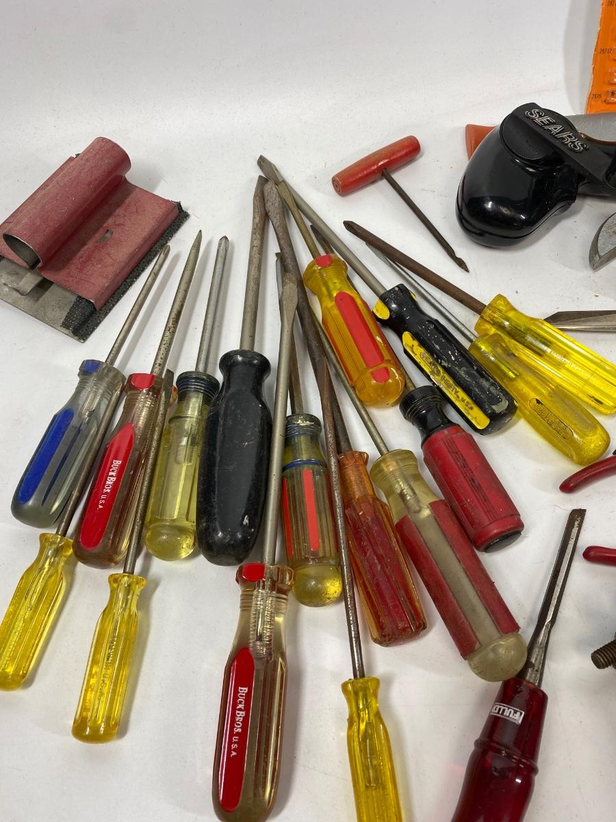 Mixed Lot of Vintage Used Hand Tools Screwdrivers Pliers Clamps Saws. In good used condition. Includes everything photo'd. Punch Lok hammer has a taped handle, may just be for grip, does not look damaged.