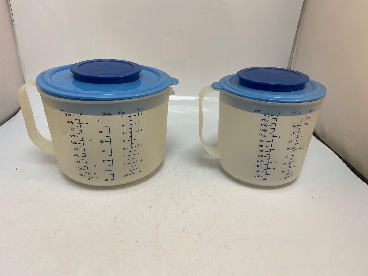 Pair of Large Plastic Measuring Cups with Lids 9c & 5c
