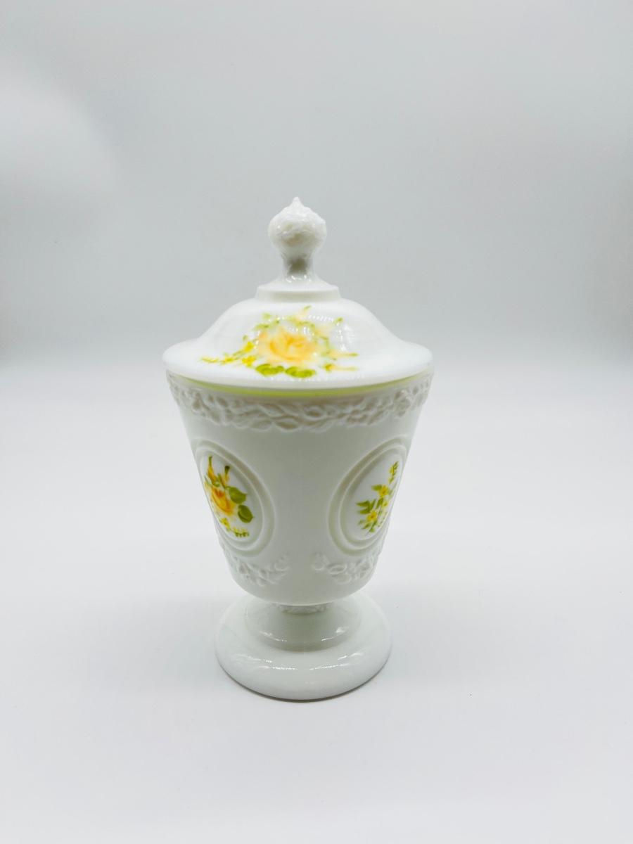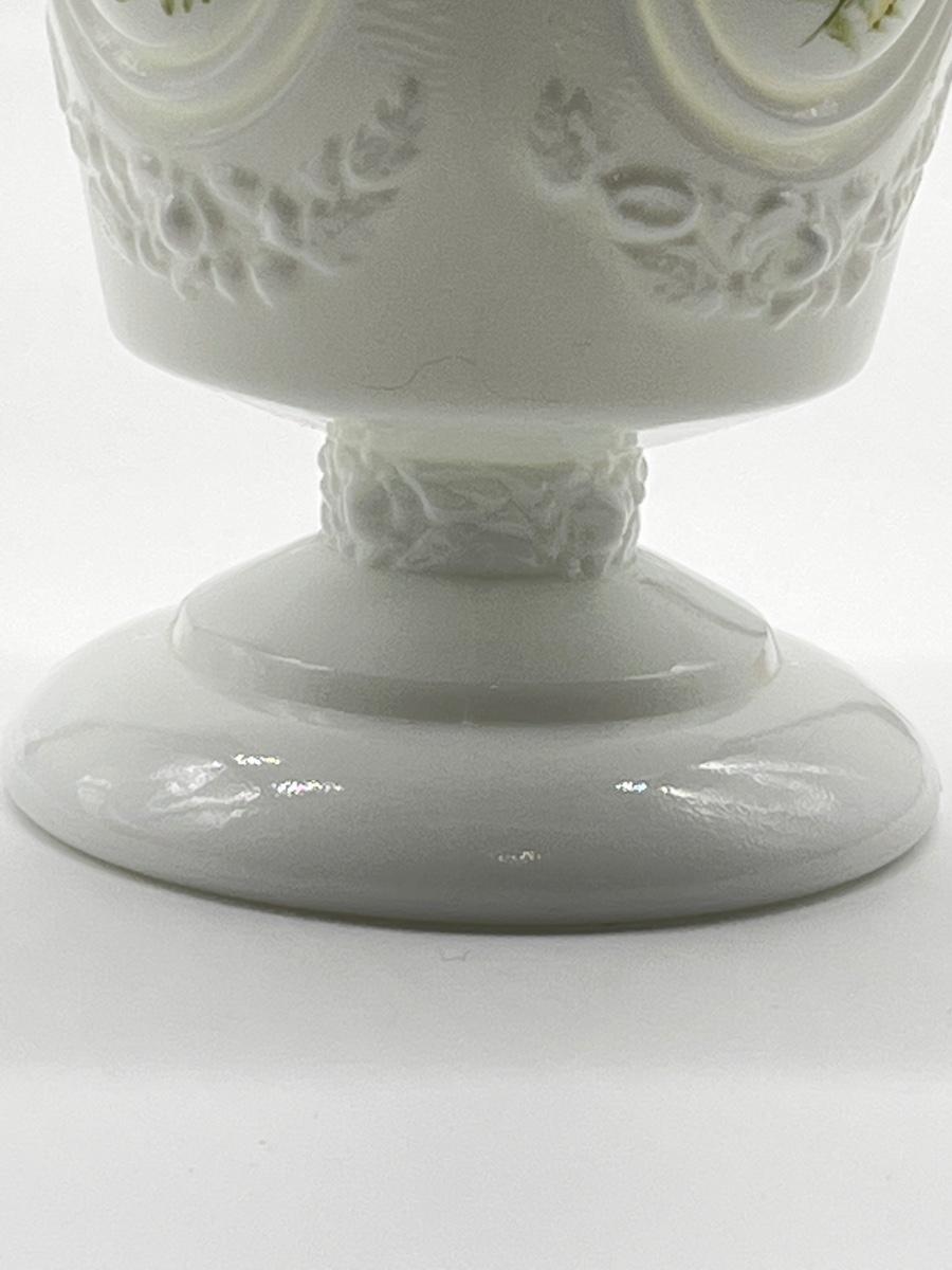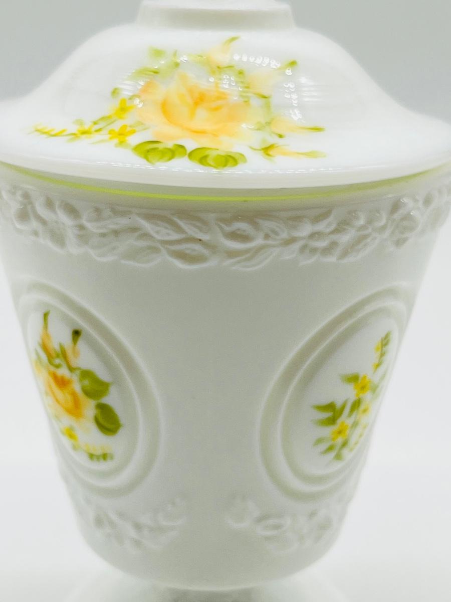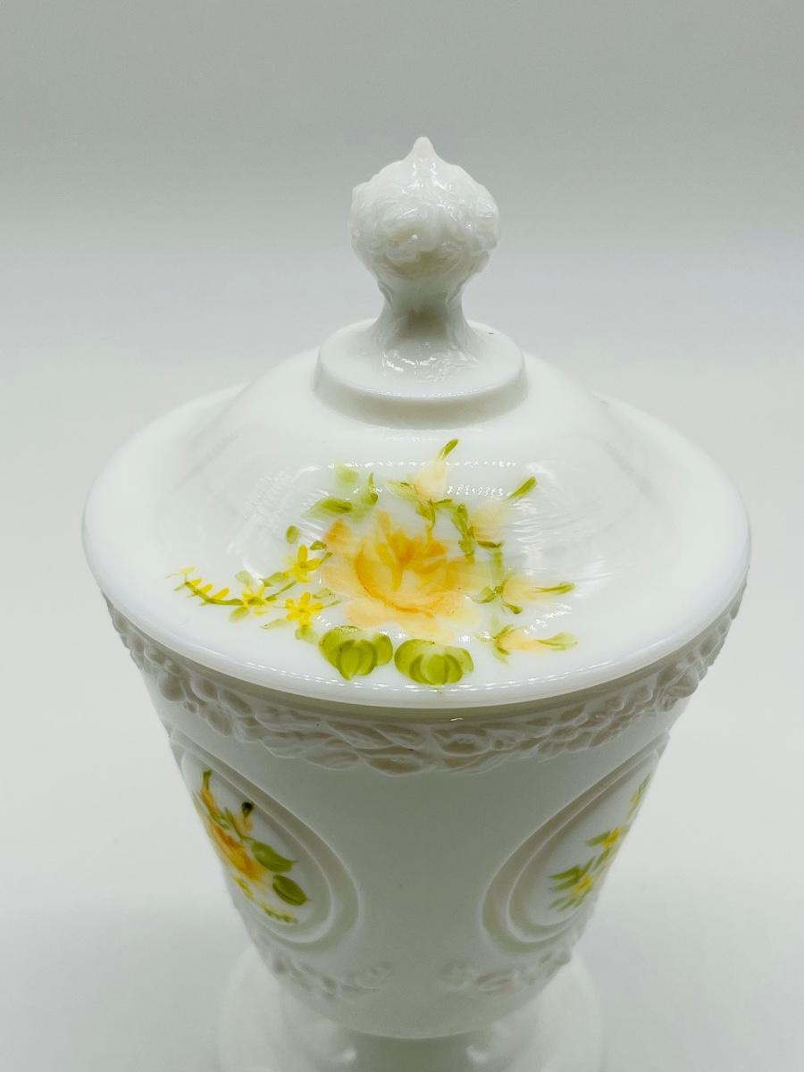 FENTON ~ Milk Glass ~ Footed Hand Painted Lidded Jar