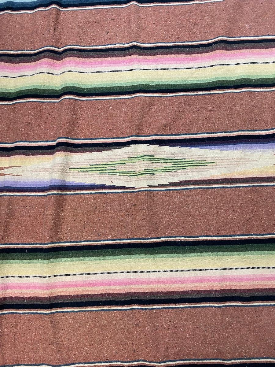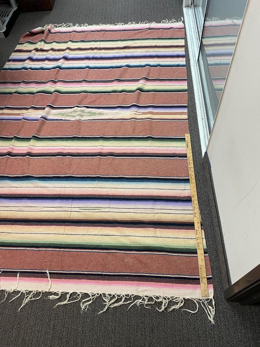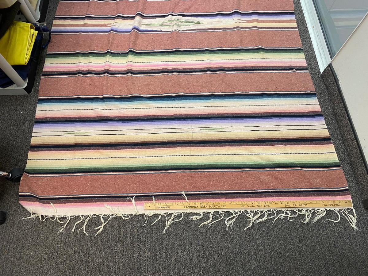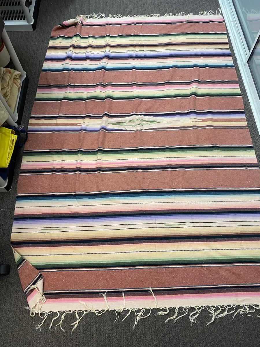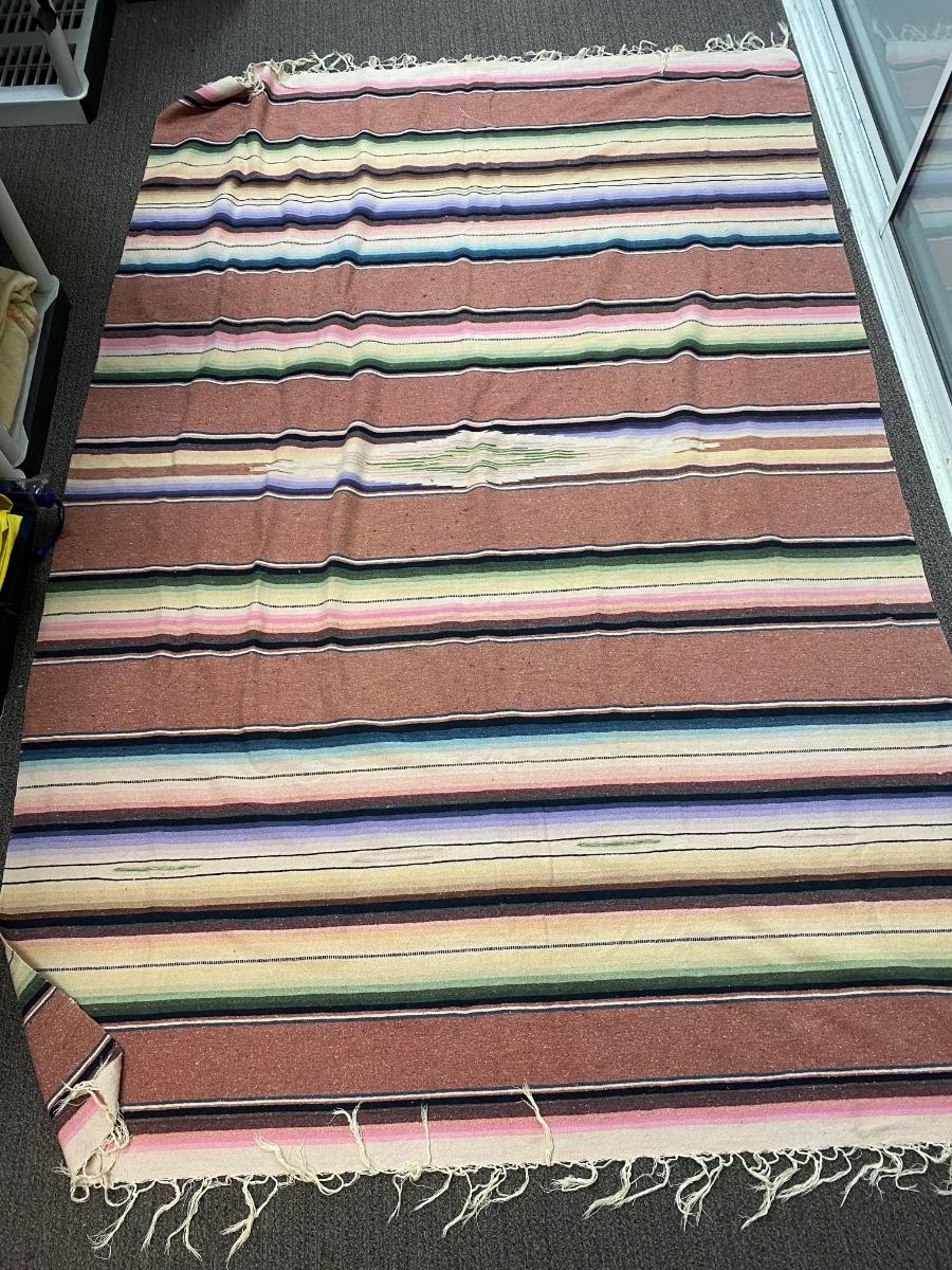 Large Soft Lightweight Southwestern Design Fringed Edge Blanket. Pastel colors. Lightweight, soft feel. In good condition, no stains. About 8'x5'.