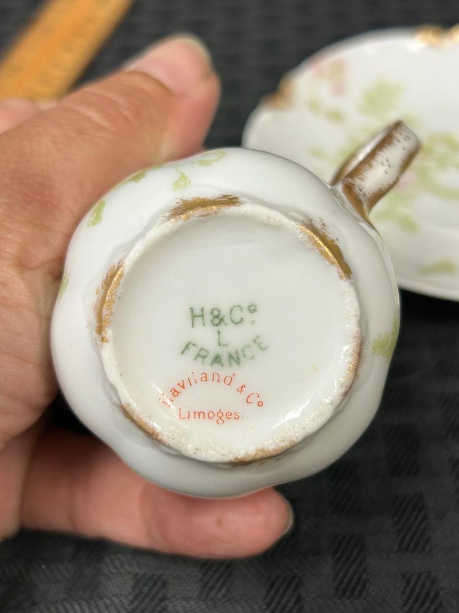 Vintage Haviland & Co Limoges Dainty Pink Rose Demitasse Teacup and Saucer. Some crazing on the bottom, but in great vintage condition.