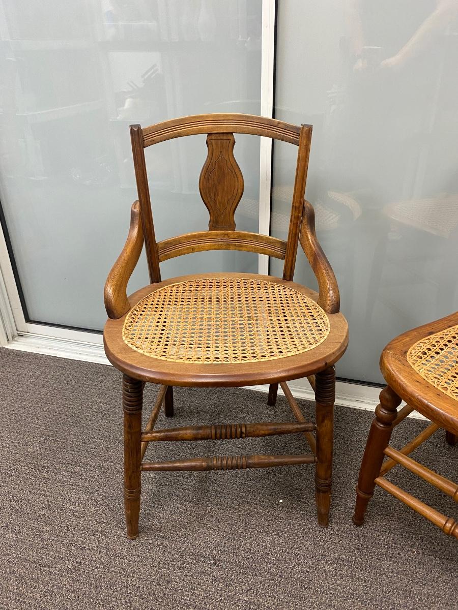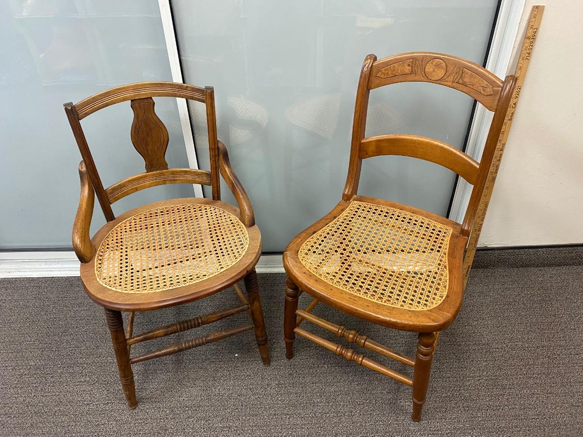 Pair of Small Side Chairs Mismatched with Cane Rattan Seats