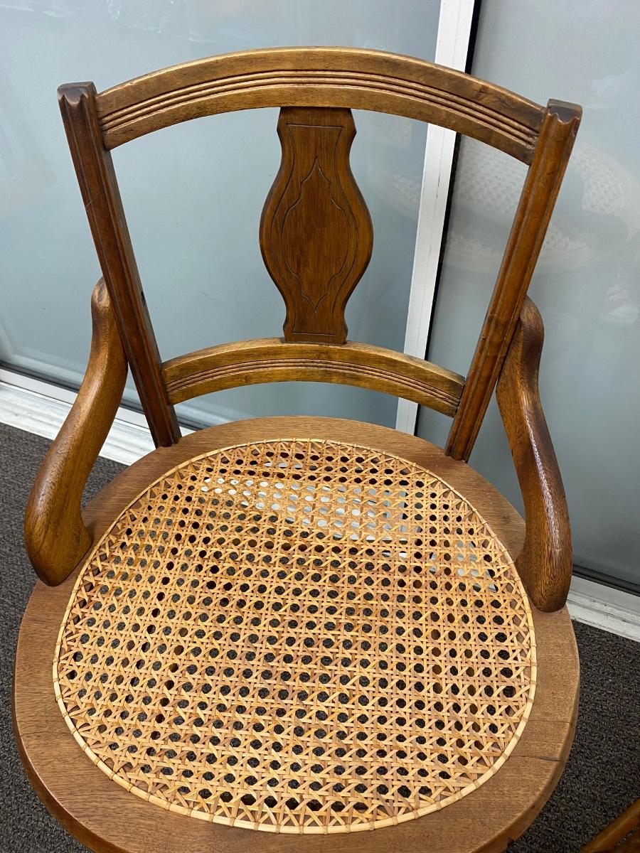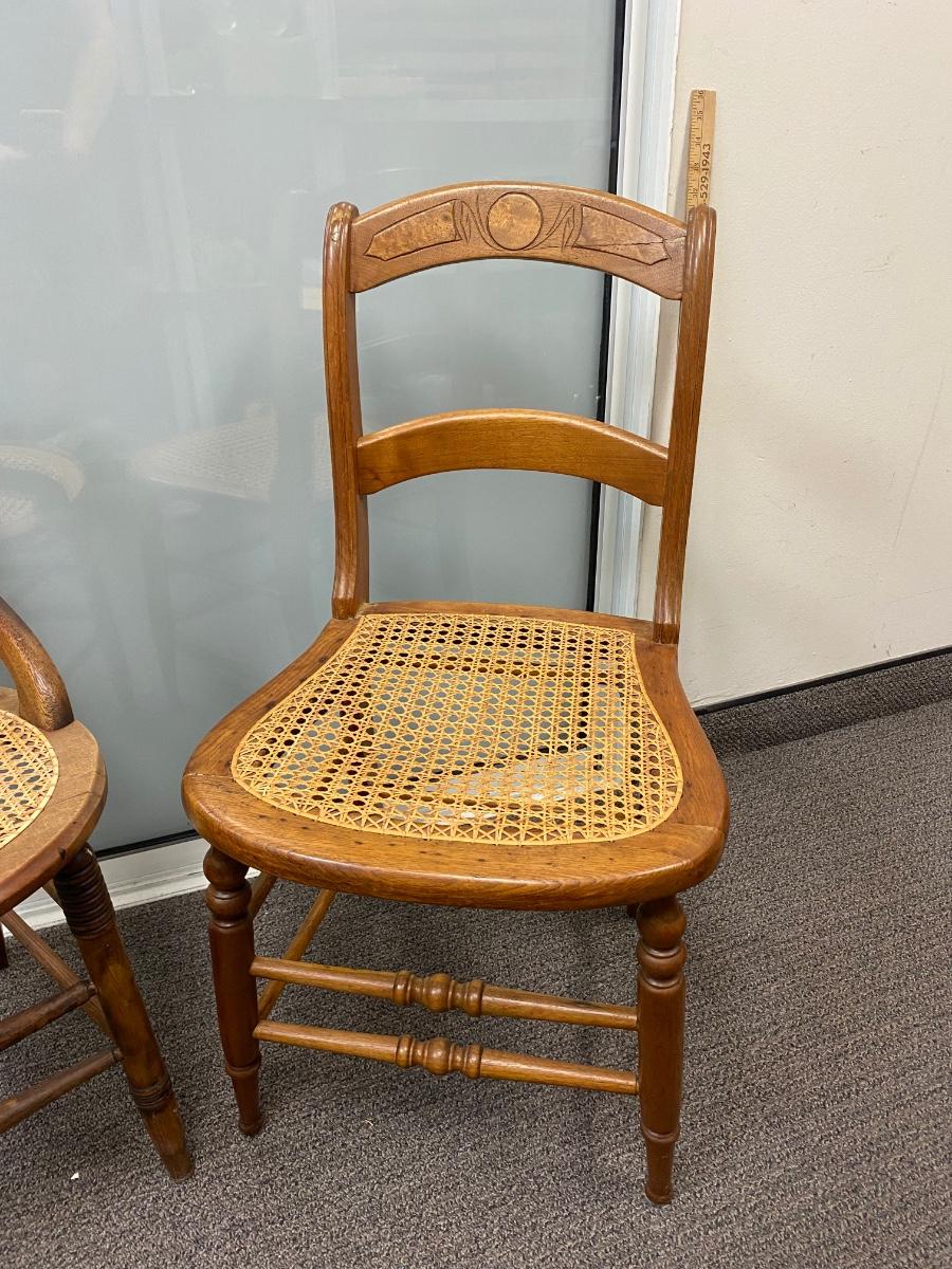 Pair of Small Side Chairs Mismatched with Cane Rattan Seats. In good used condition. Light signs of use.