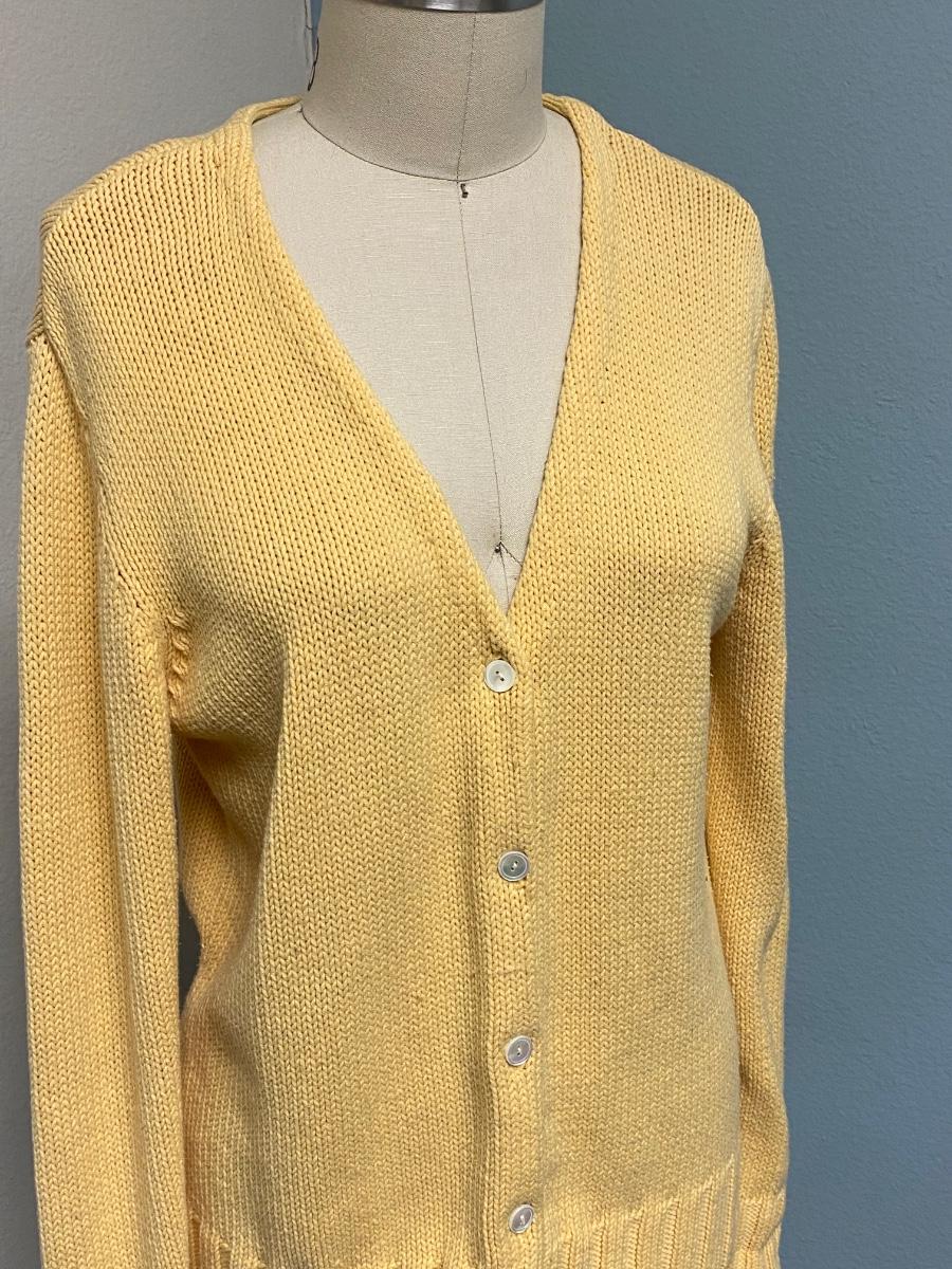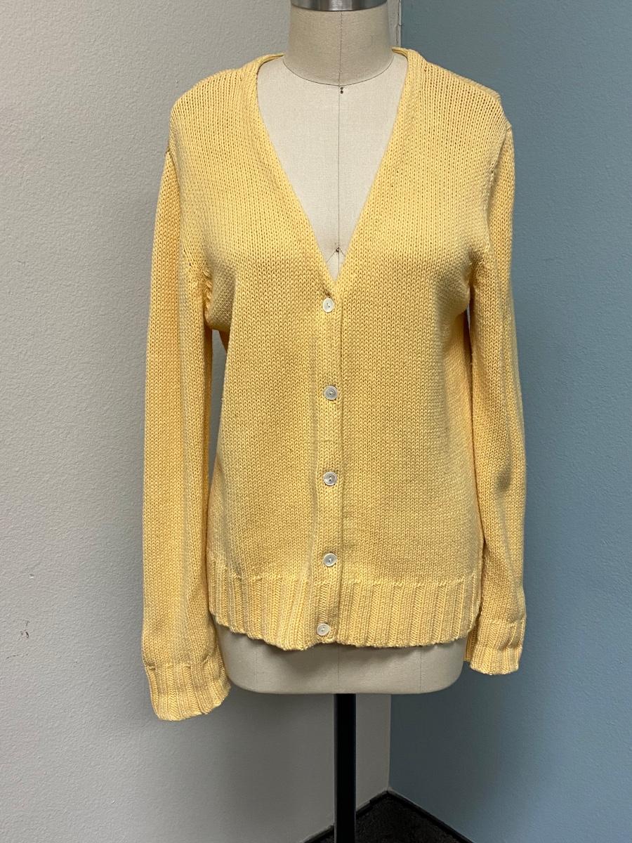 Pale Banana Yellow Chunky Button Front Sweater Cardigan Caslon Size Large. Light wear but overall good condition.