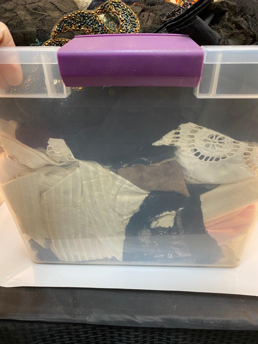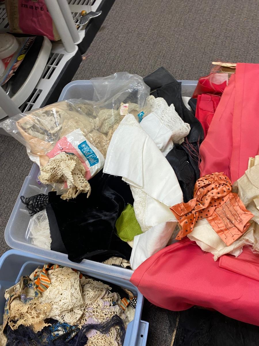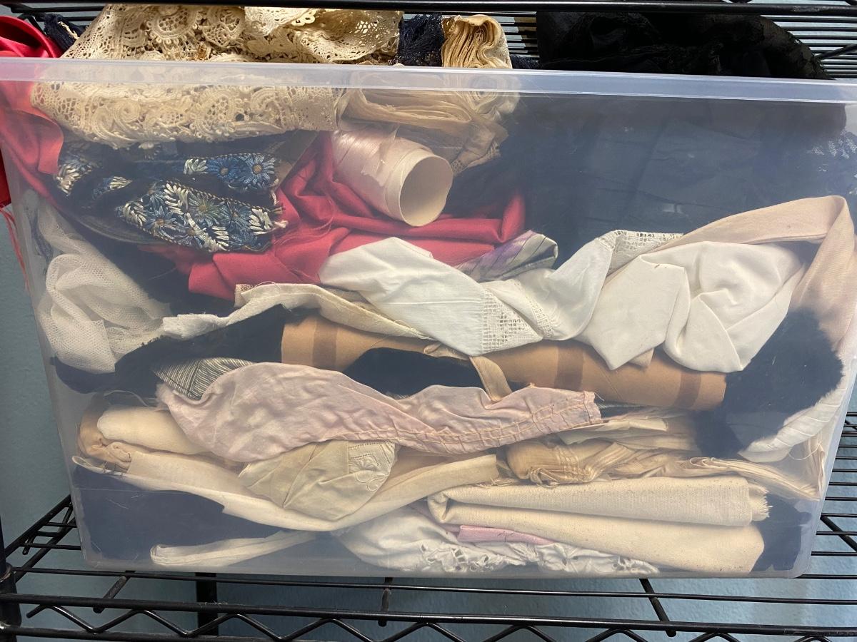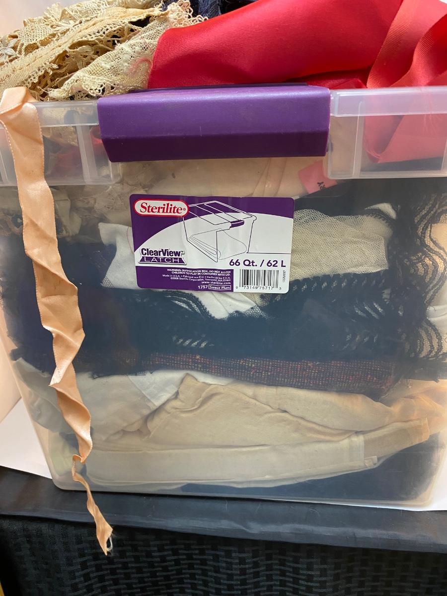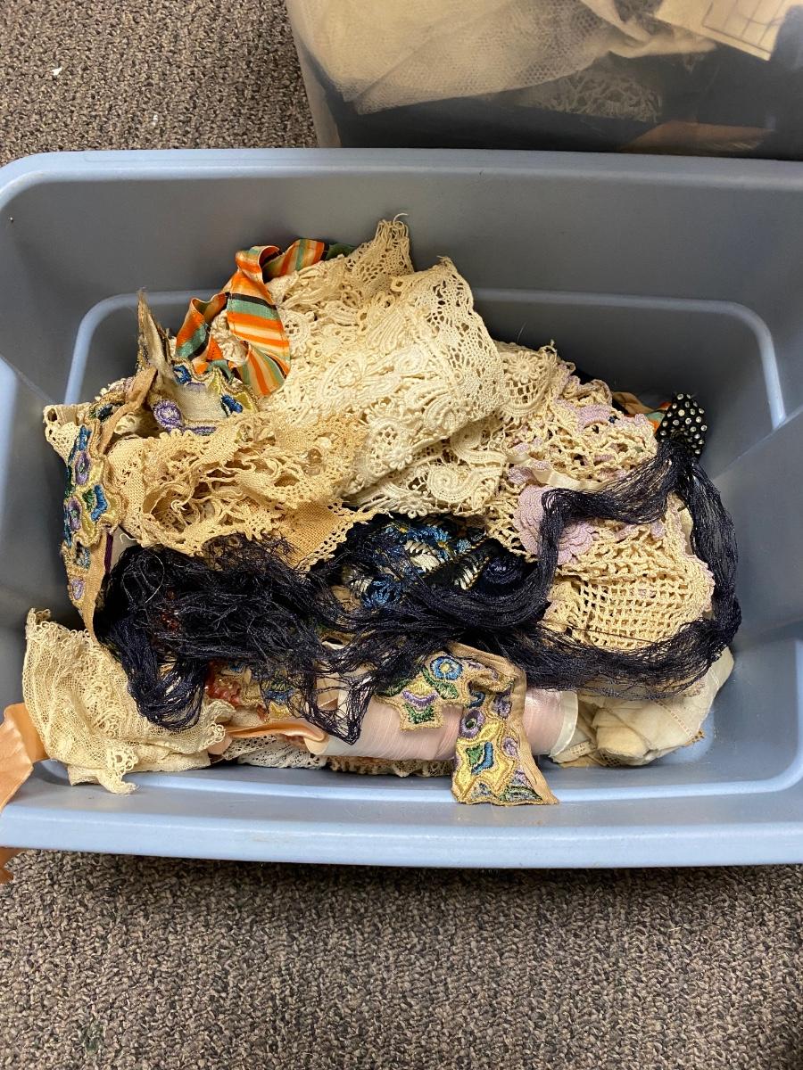 Huge Lot of Vintage Antique Fabric Remnants Pieces Lace Trims. Mixed variety, great for sewing and crafting. Various sizes, lengths, colors, styles. Will ship without plastic containers. Condition of material varies also, some discoloration may be present, actual age unknown.