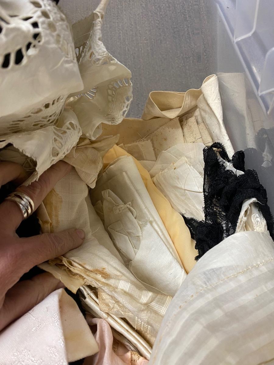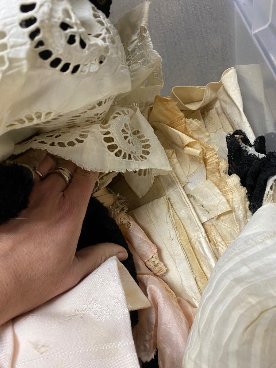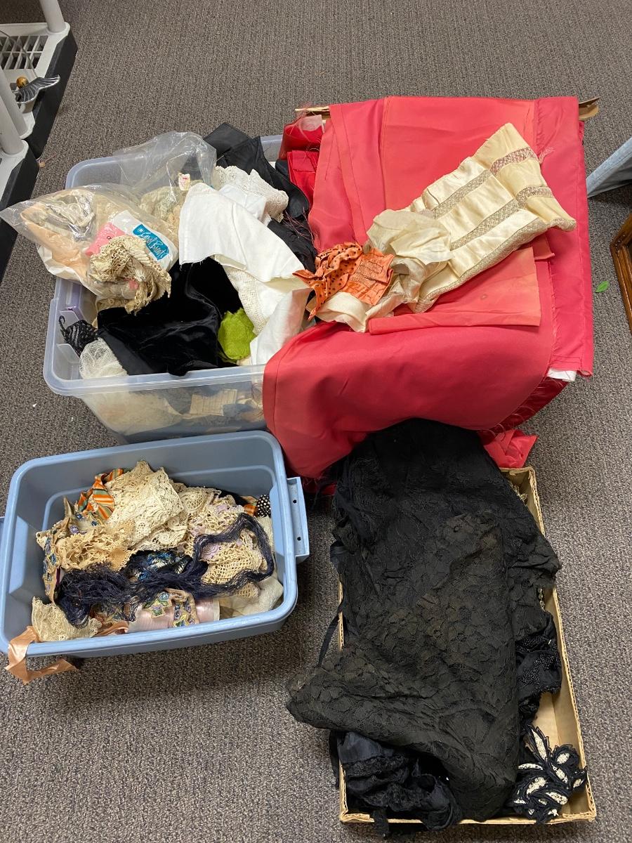 Huge Lot of Vintage Antique Fabric Remnants Pieces Lace Trims