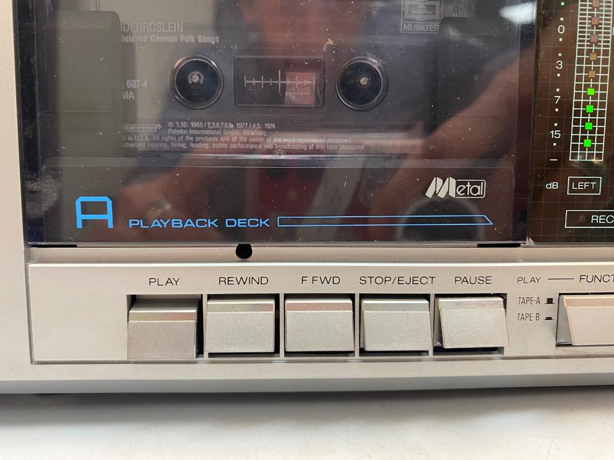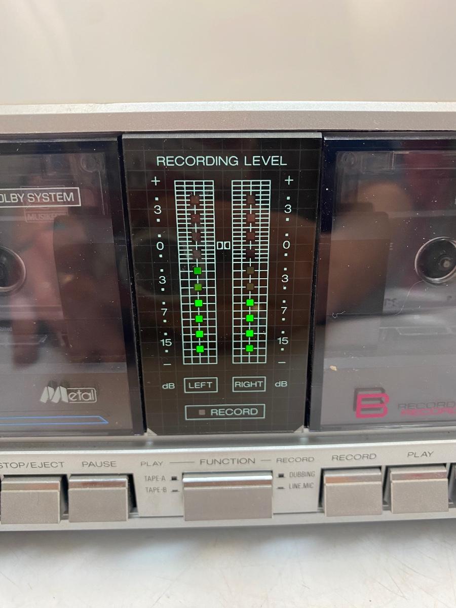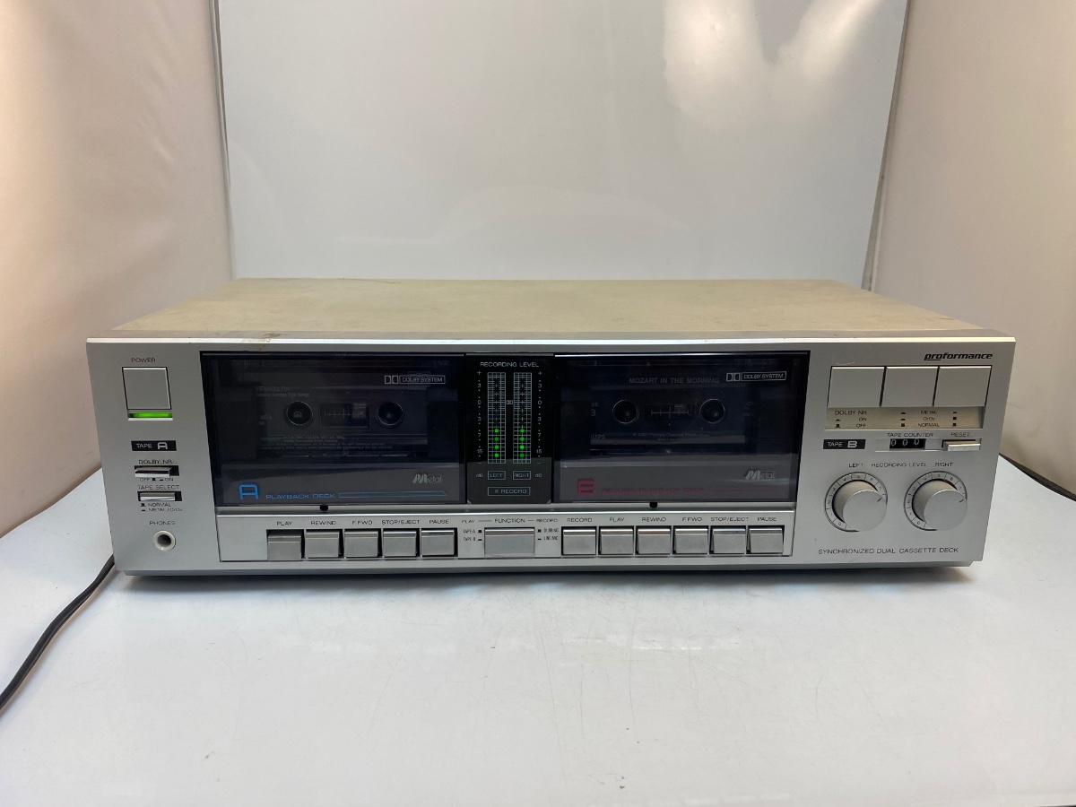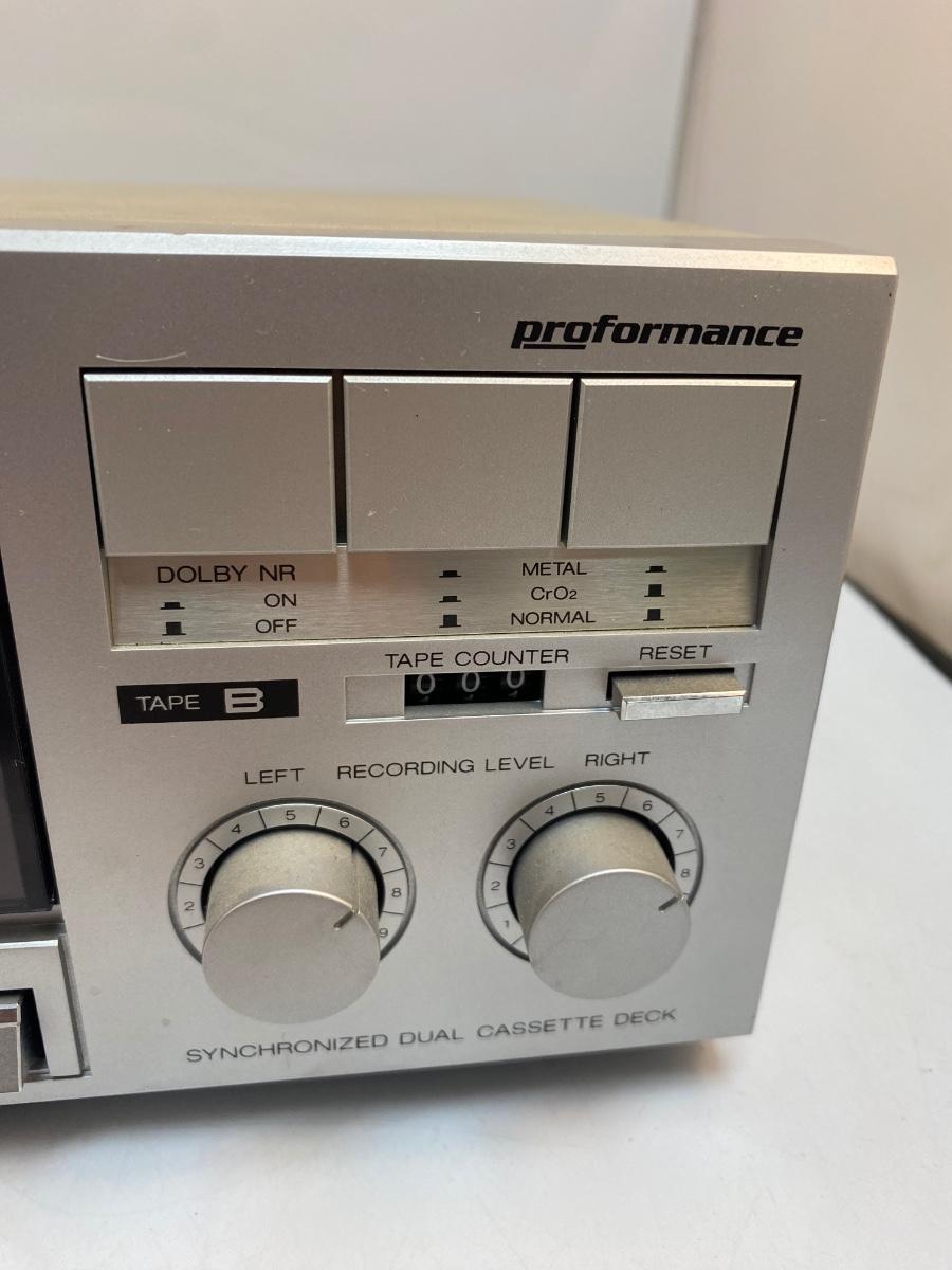 Vintage Retro Proformance Synchronized Dual Cassette Deck. In good condition. Tested, powers on and it works. Not sure of play quality as it was not tested with speakers.