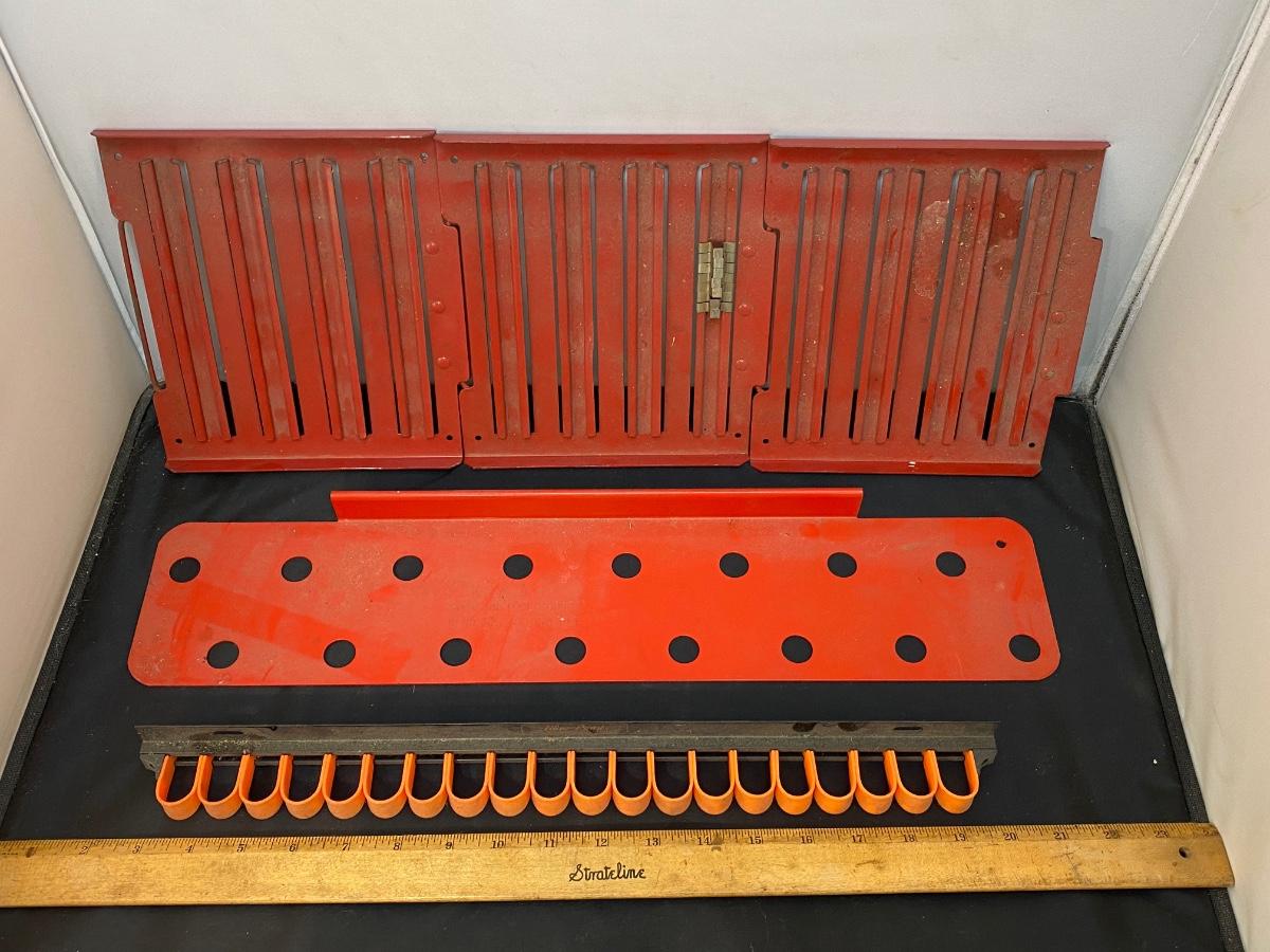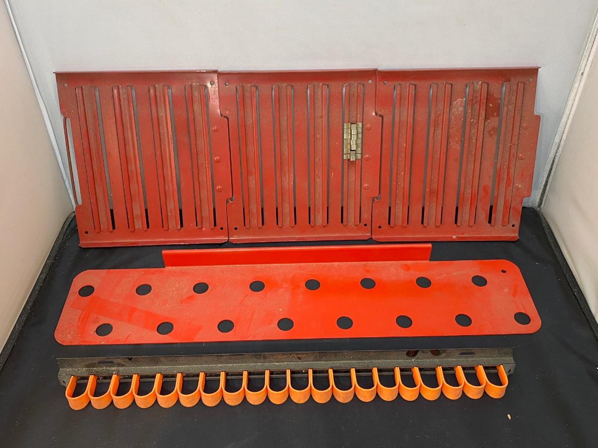 Tool Wall Hanging Storage Organizer Lot. Various wall hanging storage pieces for tools and tool accessories.