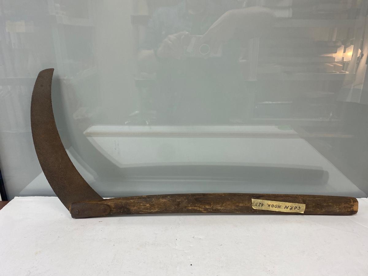 Lightweight Antique Corn Knife Hand Sickle Primitive Farm Tool. In antique condition. About 24" size.