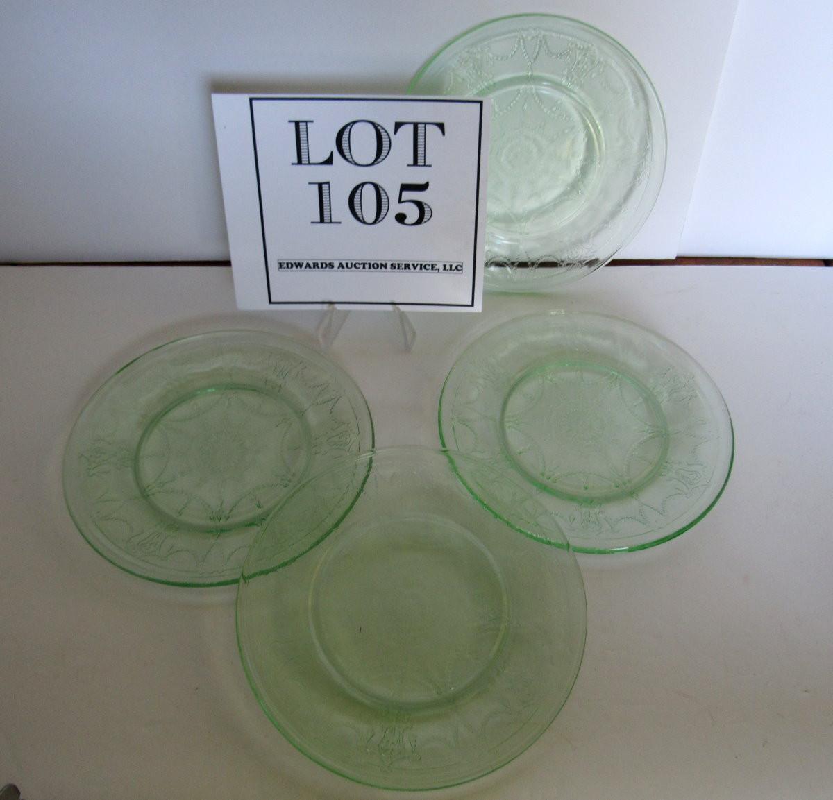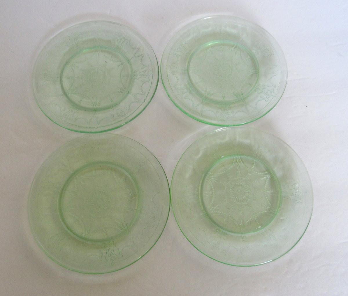 Older Mosser Glass Childs Dishes, Green Jennifer, 4 Dinner Plates
