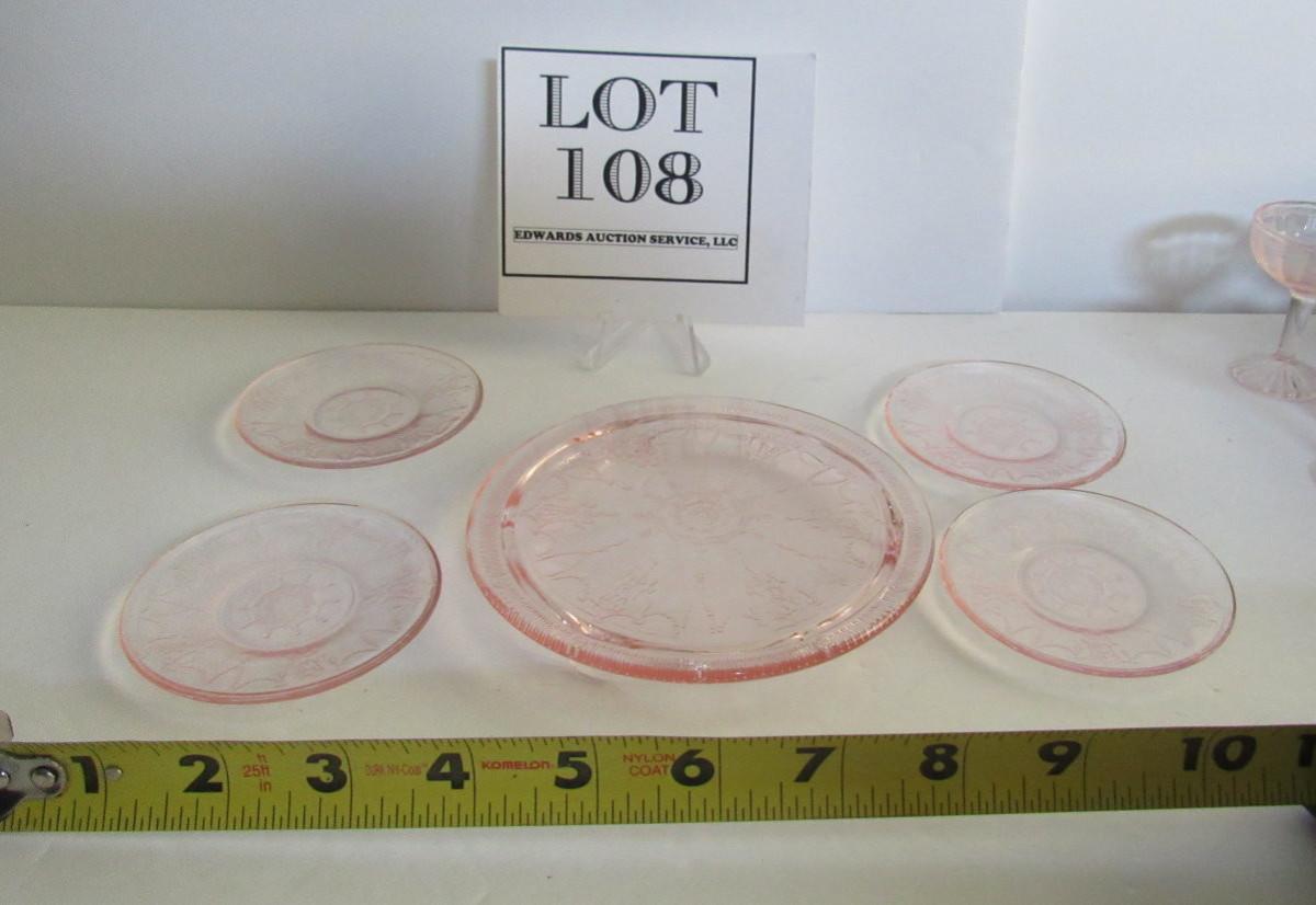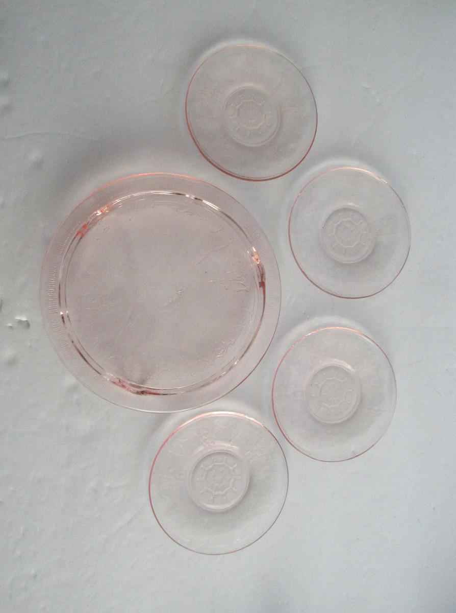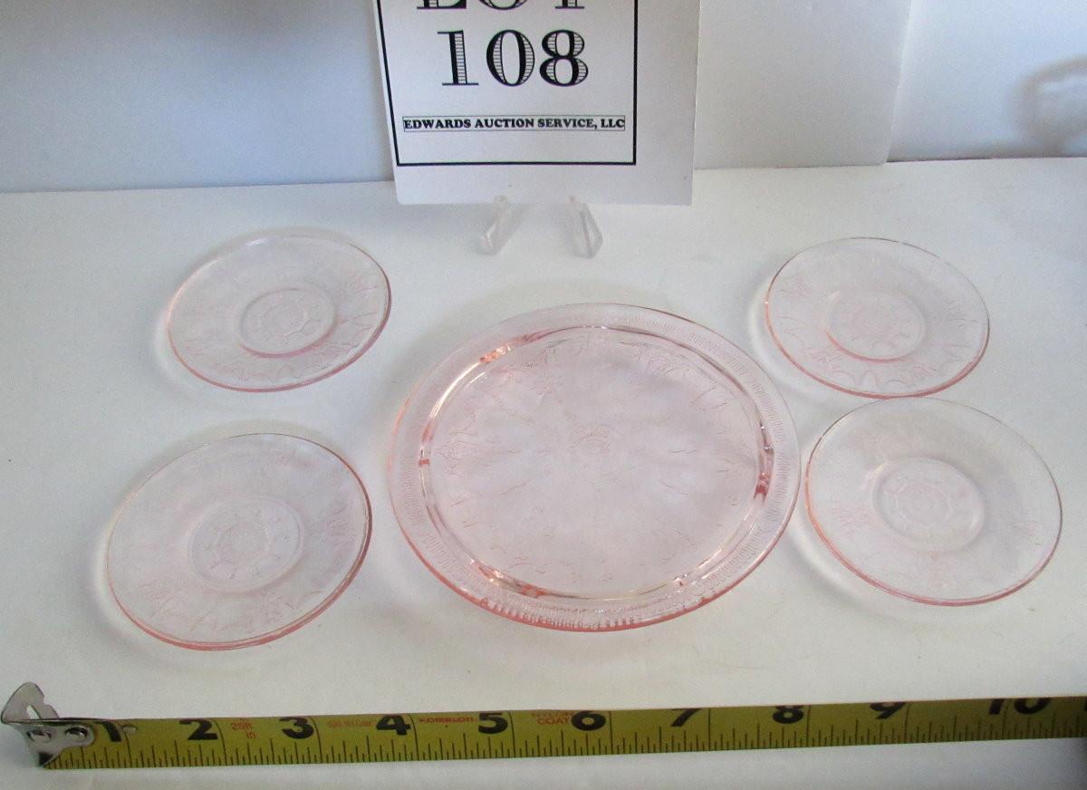 Mosser Glass Pink Child's Jennifer Dishes, Cake Plate and 4 Plates