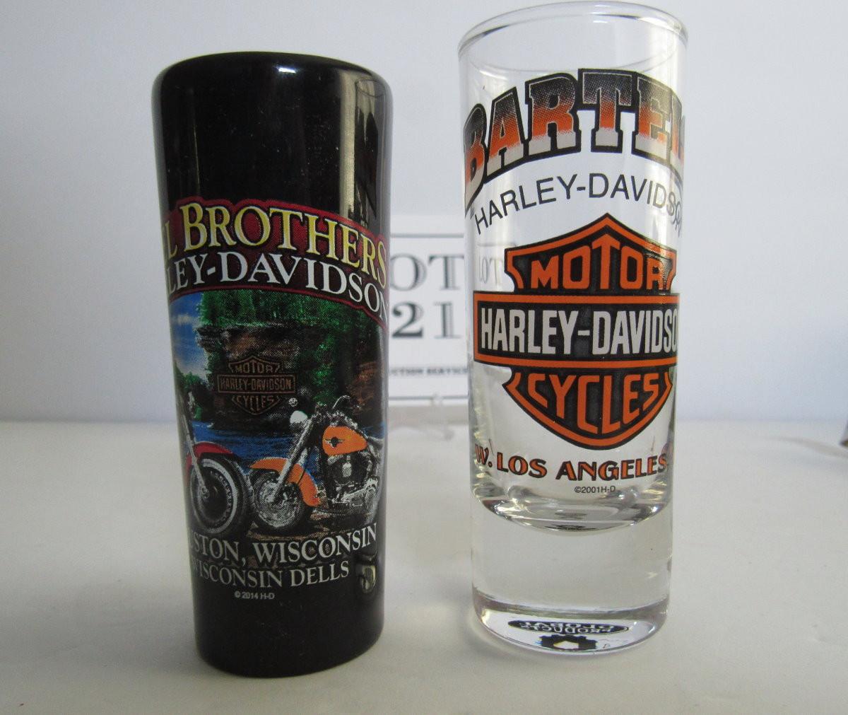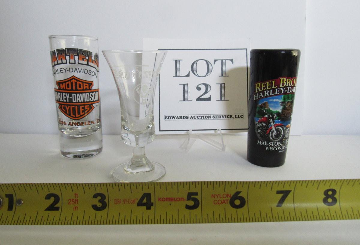 Lot of 3 Shot Glasses, Harley Davidson and Jagermeister