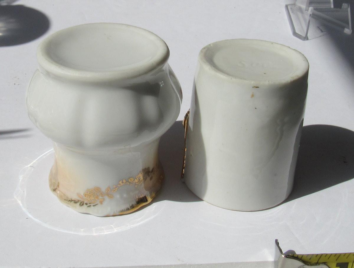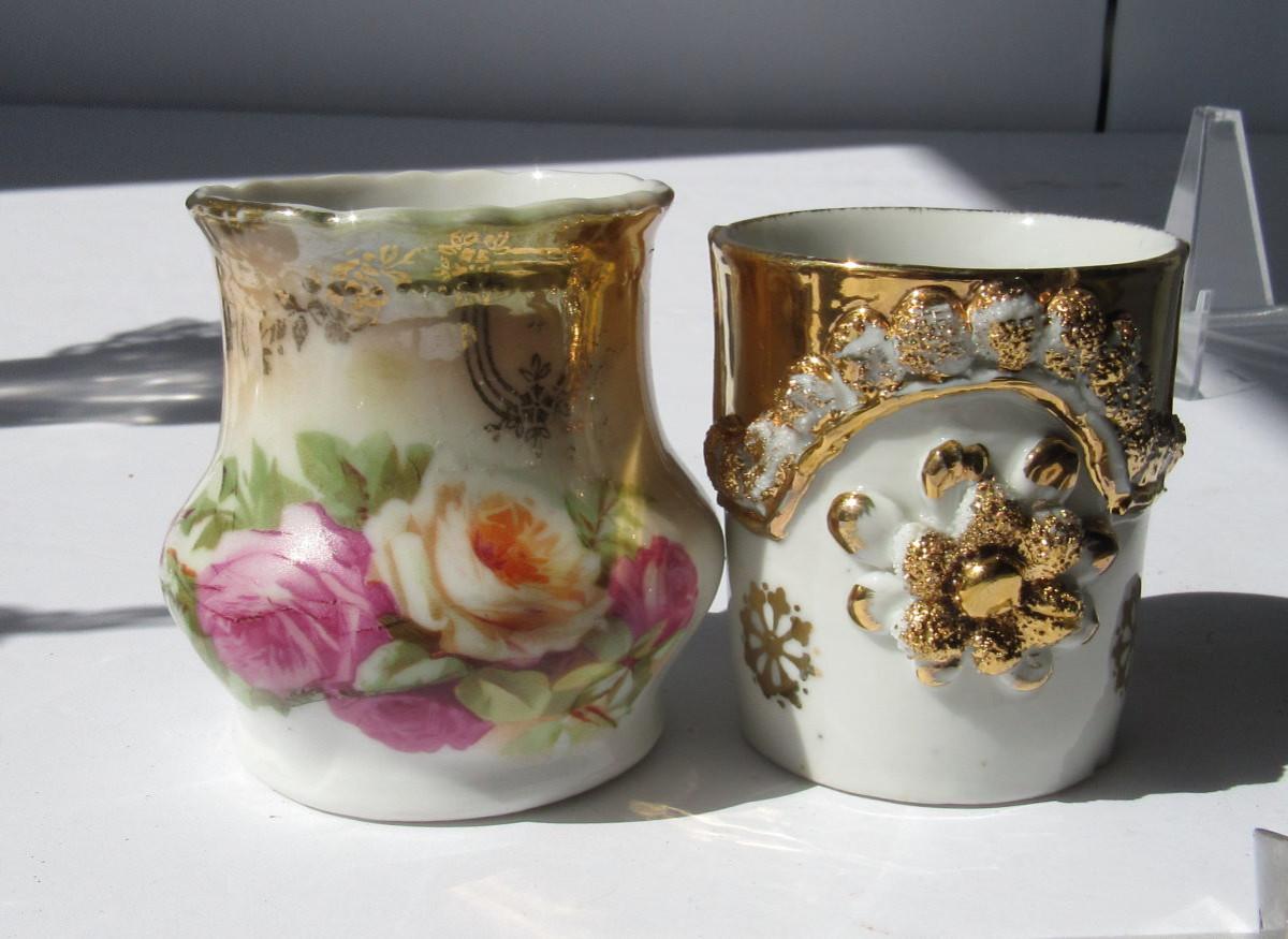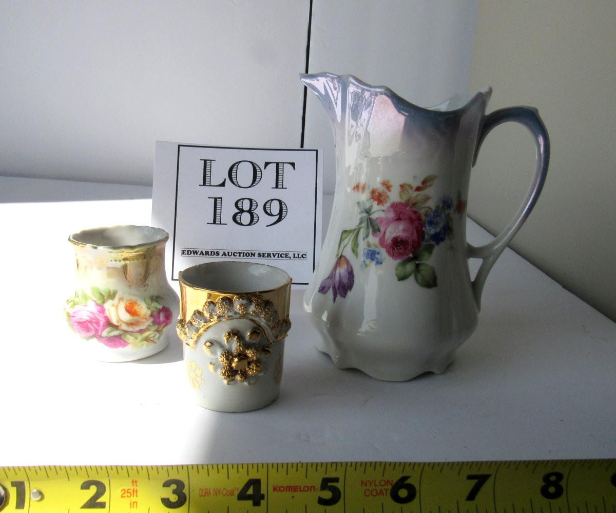 Vintage Hand Painted China Pitcher and Two Old Hand Painted Toothpick Holders